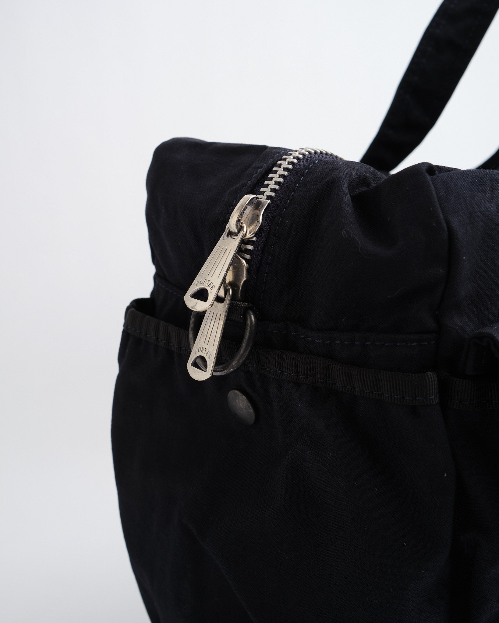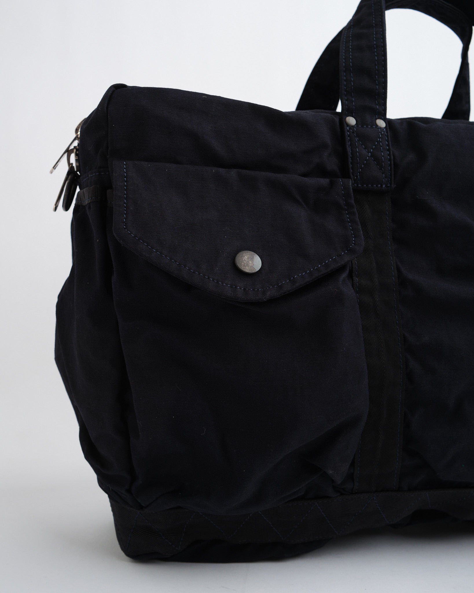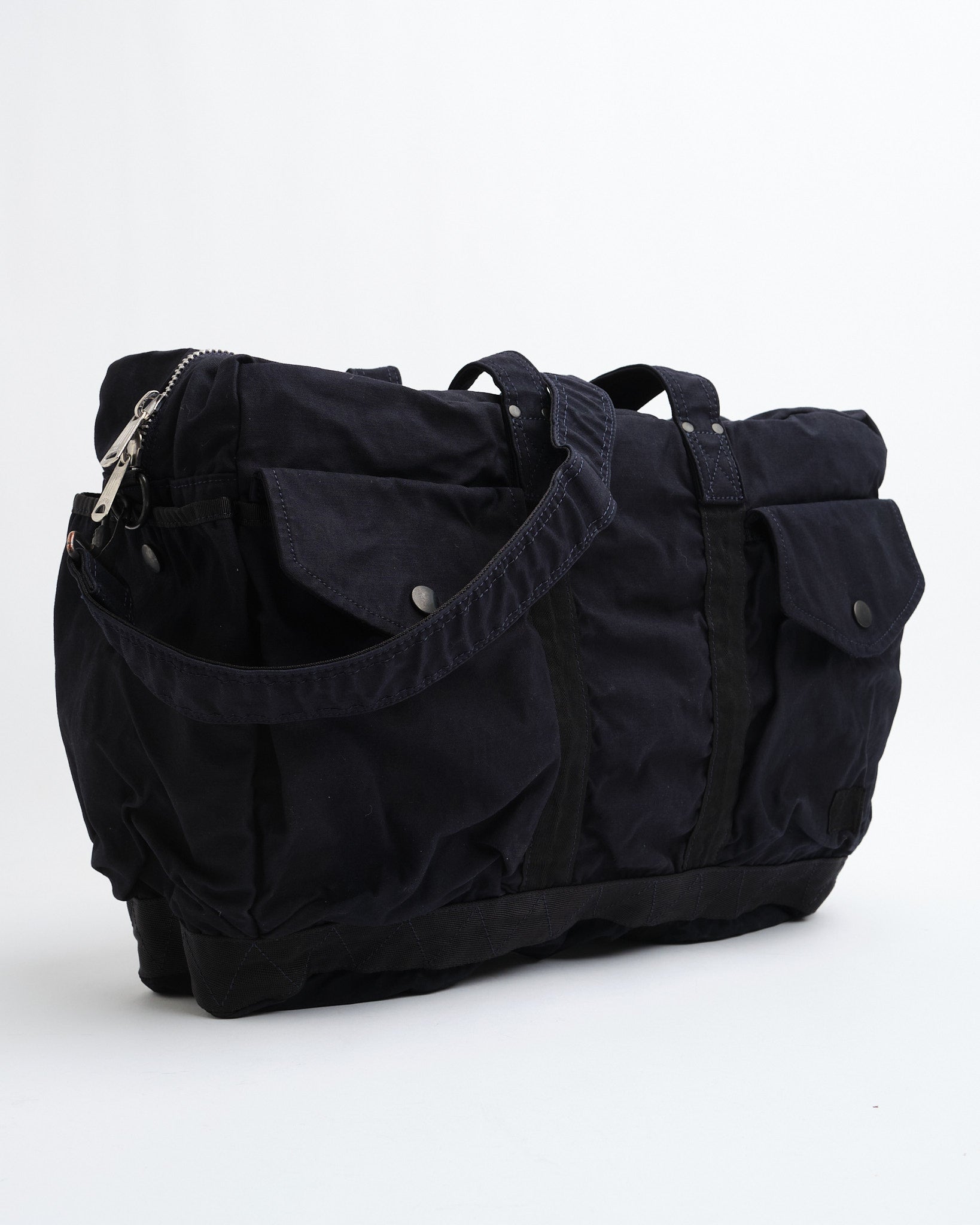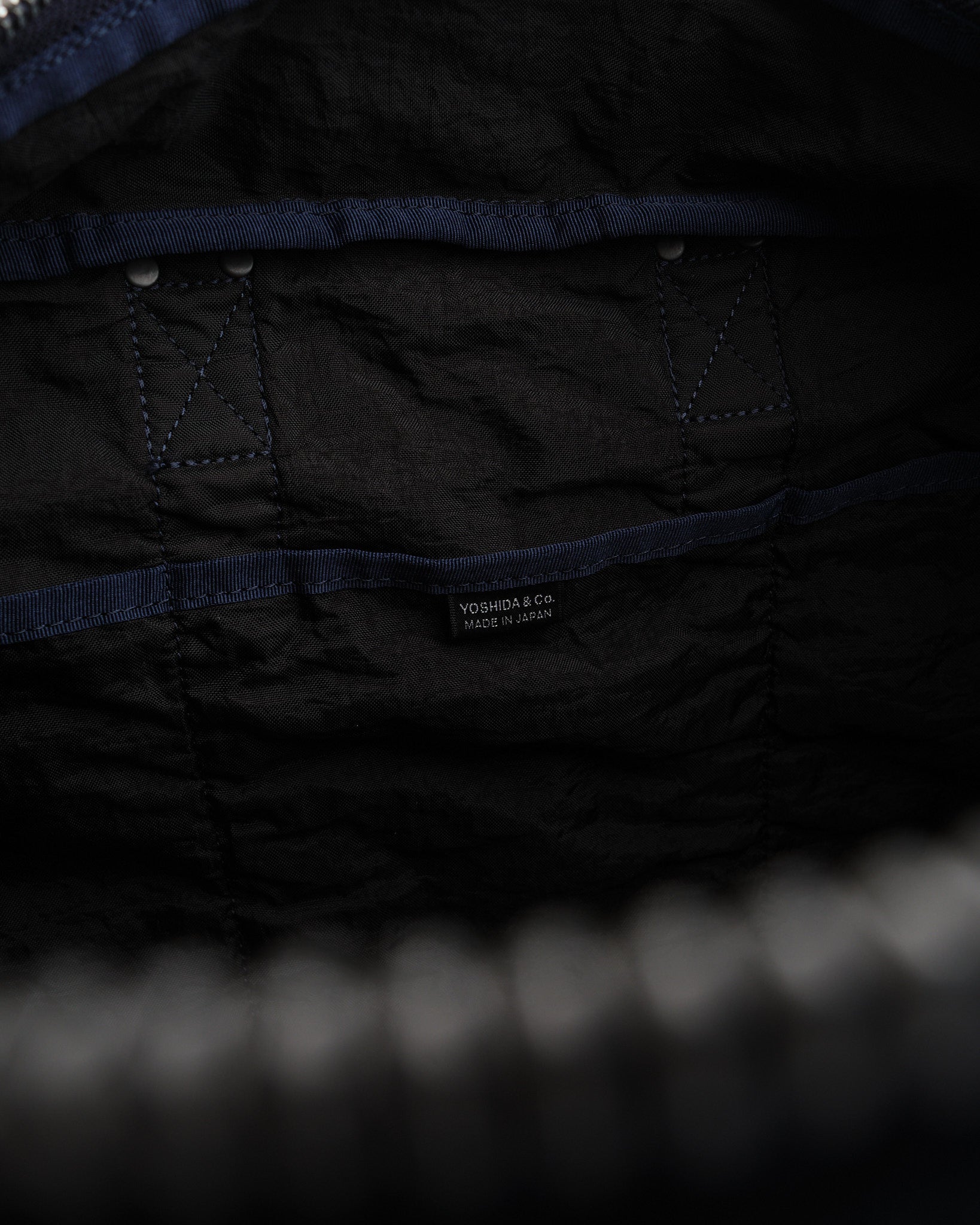 La borsa PORTER-YOSHIDA CRAG 2Way Boston (S) in Navy è una borsa compatta ma versatile, realizzata ispirandosi all'estetica militare vintage. Fatta in una resistente miscela di raso di cotone ad alta densità del 50% cotone e 50% nylon, questa borsa presenta una finitura tinta in capo, offrendo un colore ricco e una texture. Perfetta per l'uso quotidiano, dispone di molteplici opzioni di trasporto, inclusi manici superiori e una tracolla rimovibile, oltre a ampio spazio di stoccaggio con tasche esterne chiuse a scatto e un interno spazioso. Realizzata in Giappone, essa esemplifica un'eccellente artigianalità e un design senza tempo.