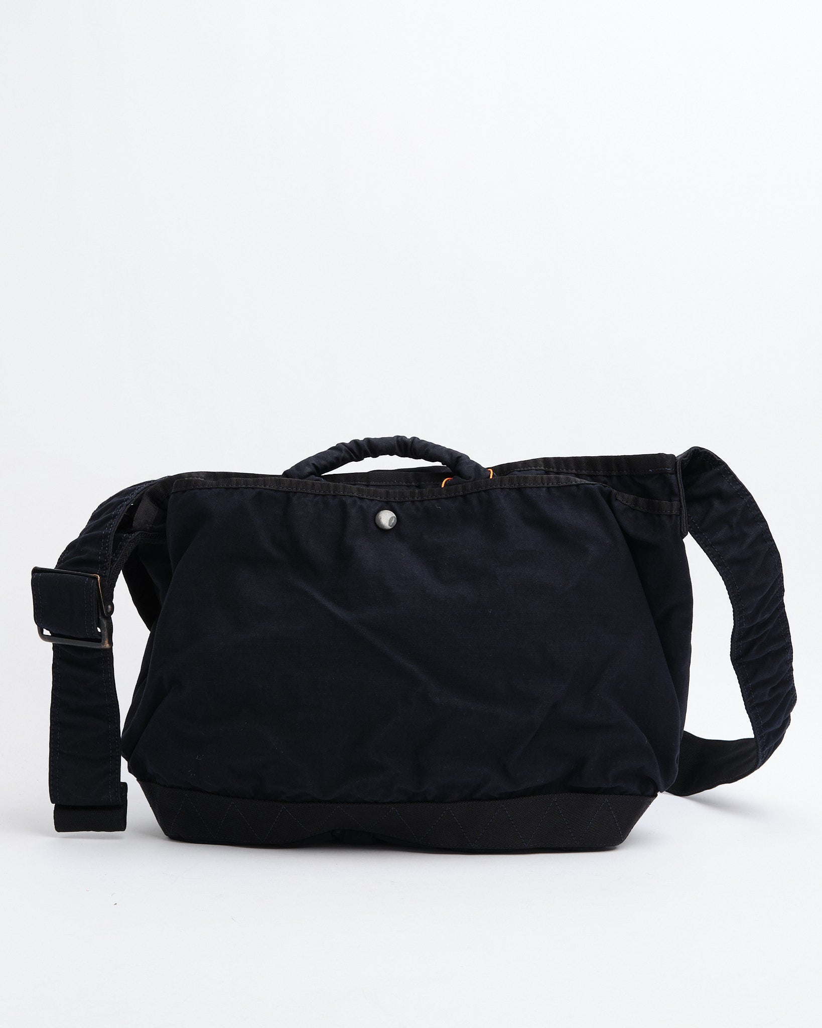La Borsa Messenger Crag di PORTER BY YOSHIDA (M) in Blu Navy fa parte della serie PORTER CRAG, nota per il suo distintivo processo di tintura del prodotto che crea colori e texture ricchi e profondi. Realizzata in tessuto in raso di cotone, un misto ad alta densità di nylon e cotone, questa borsa vanta sia durabilità che una texture morbida e compatta. La tecnica di tintura a due bagni produce tonalità ricche e multidimensionali con variazioni naturali, assicurando che ogni borsa sia unica.