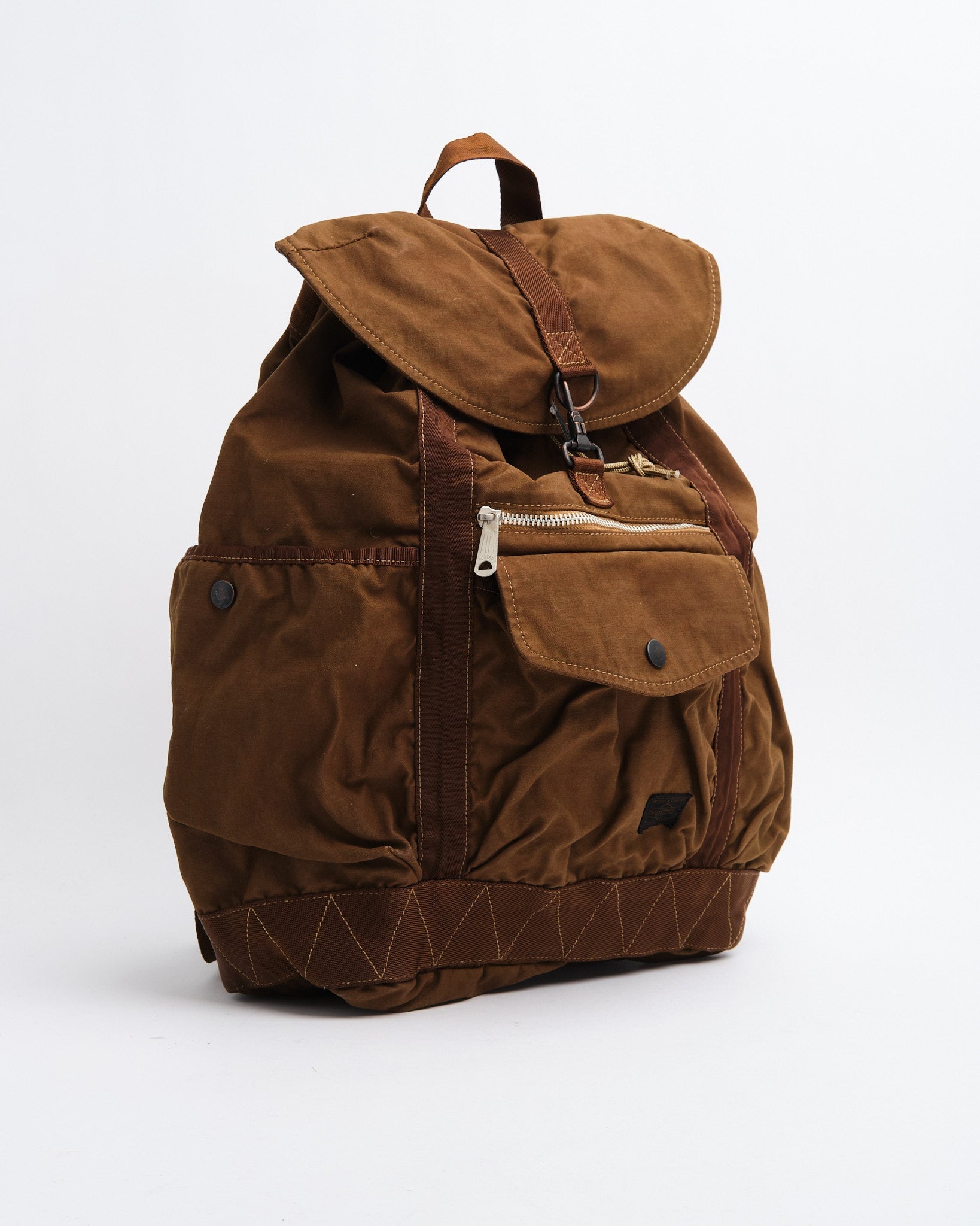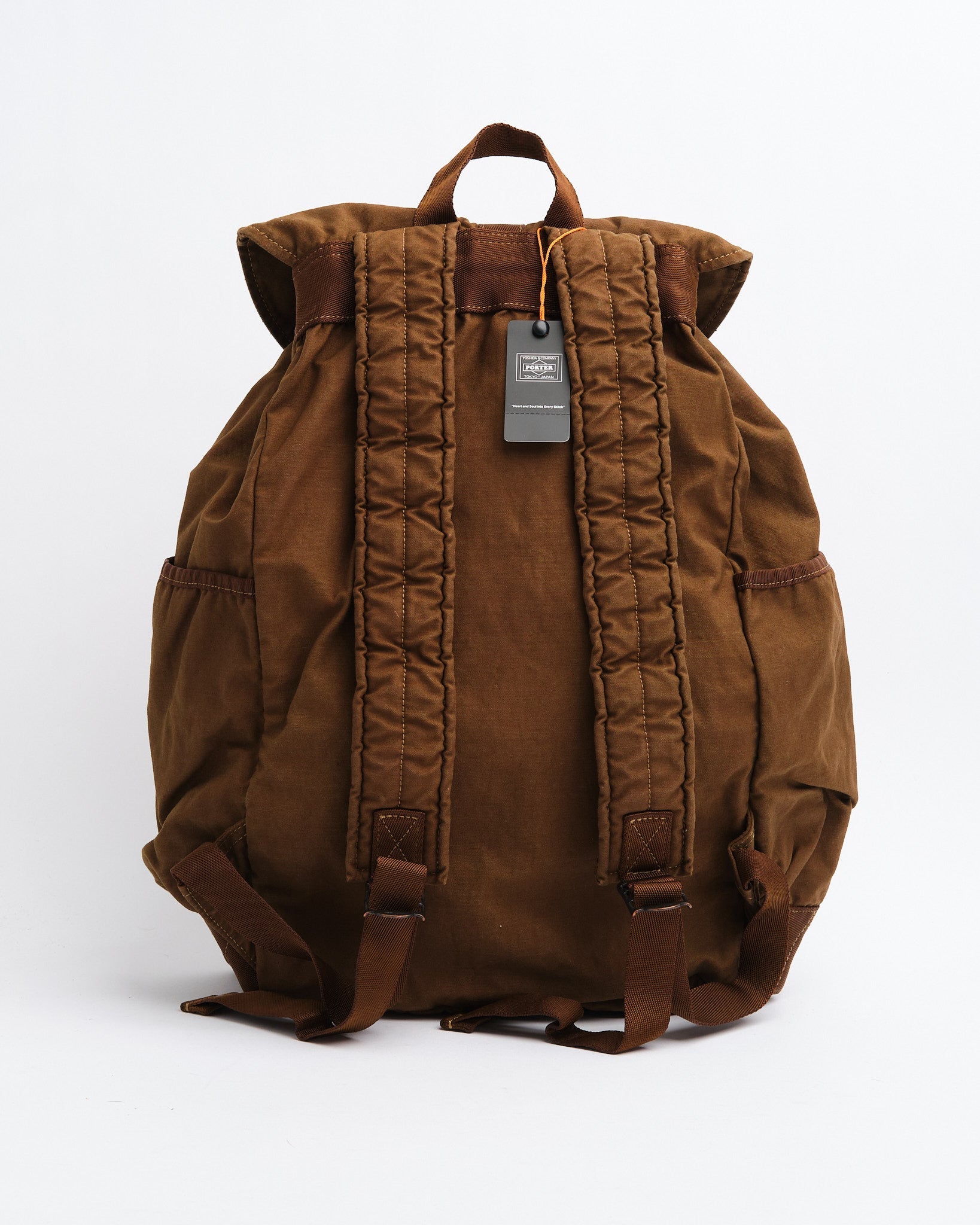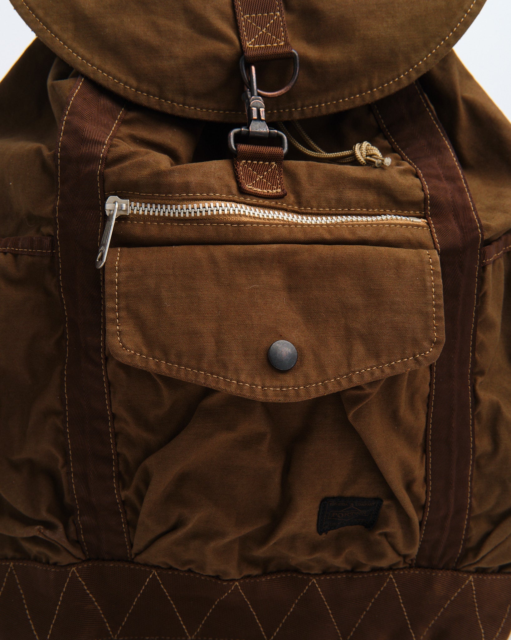 Lo Zaino Crag PORTER BY YOSHIDA (540-19646-40) in Coyote fa parte della serie PORTER CRAG, caratterizzato da un unico processo di tintura in due bagni che crea un colore ricco e profondo e una texture distintiva. Realizzato in tessuto di raso di nylon-cotone ad alta densità, questo zaino offre sia durabilità che stile.