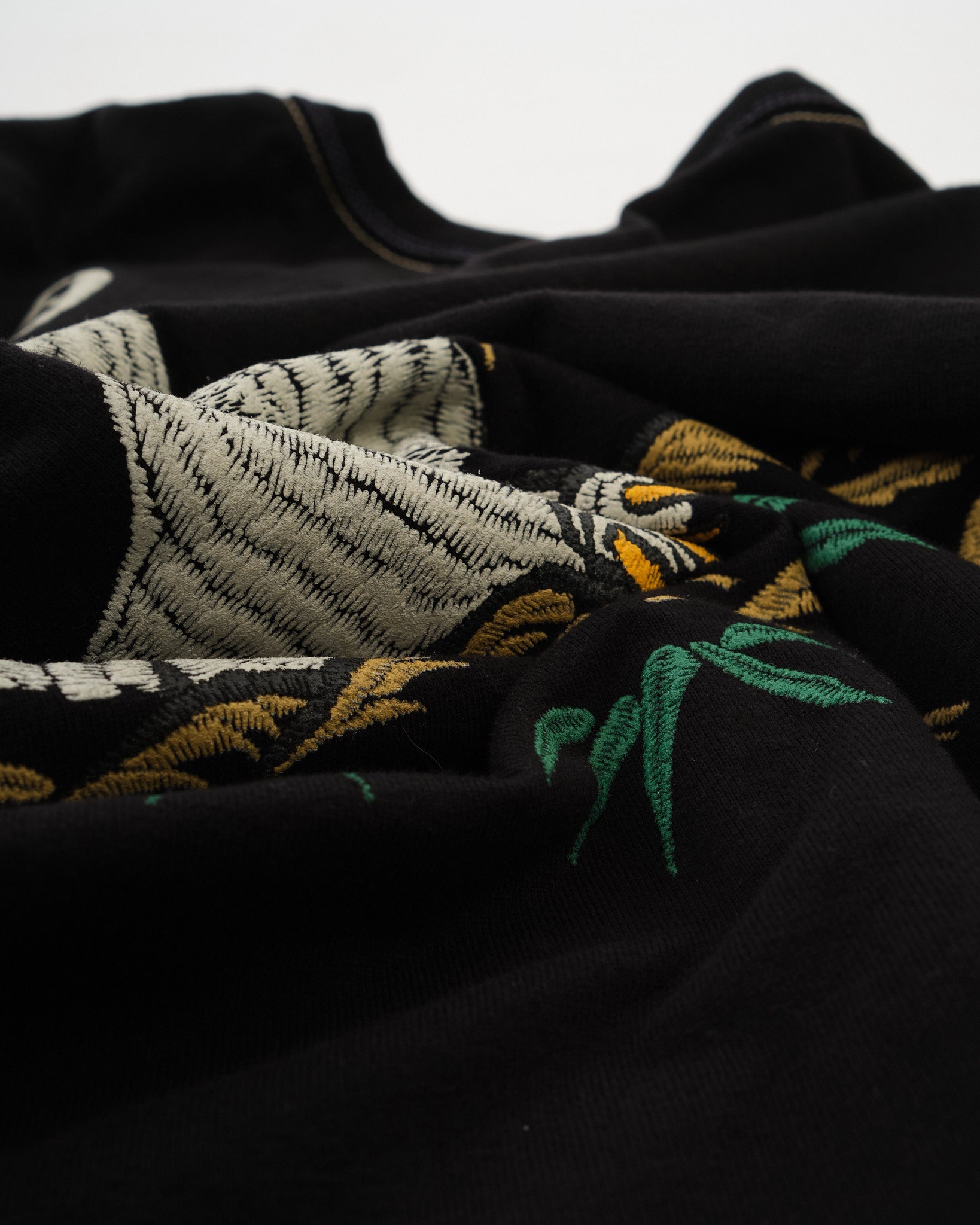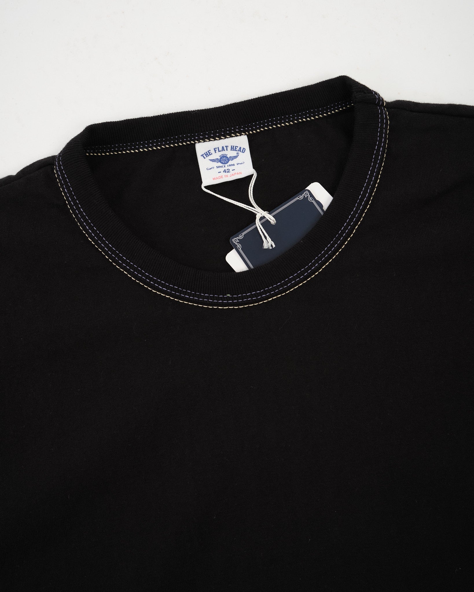 Ogni pezzo è lavato una volta, dandogli una sensazione morbida dal primo utilizzo pur preservando il suo ricco colore nero. Prodotto in Giappone, questa maglietta esemplifica l'impegno di Flat Head nei materiali di alta qualità e nelle tecniche di stampa esperte, offrendo un design audace con una superiore artigianalità.