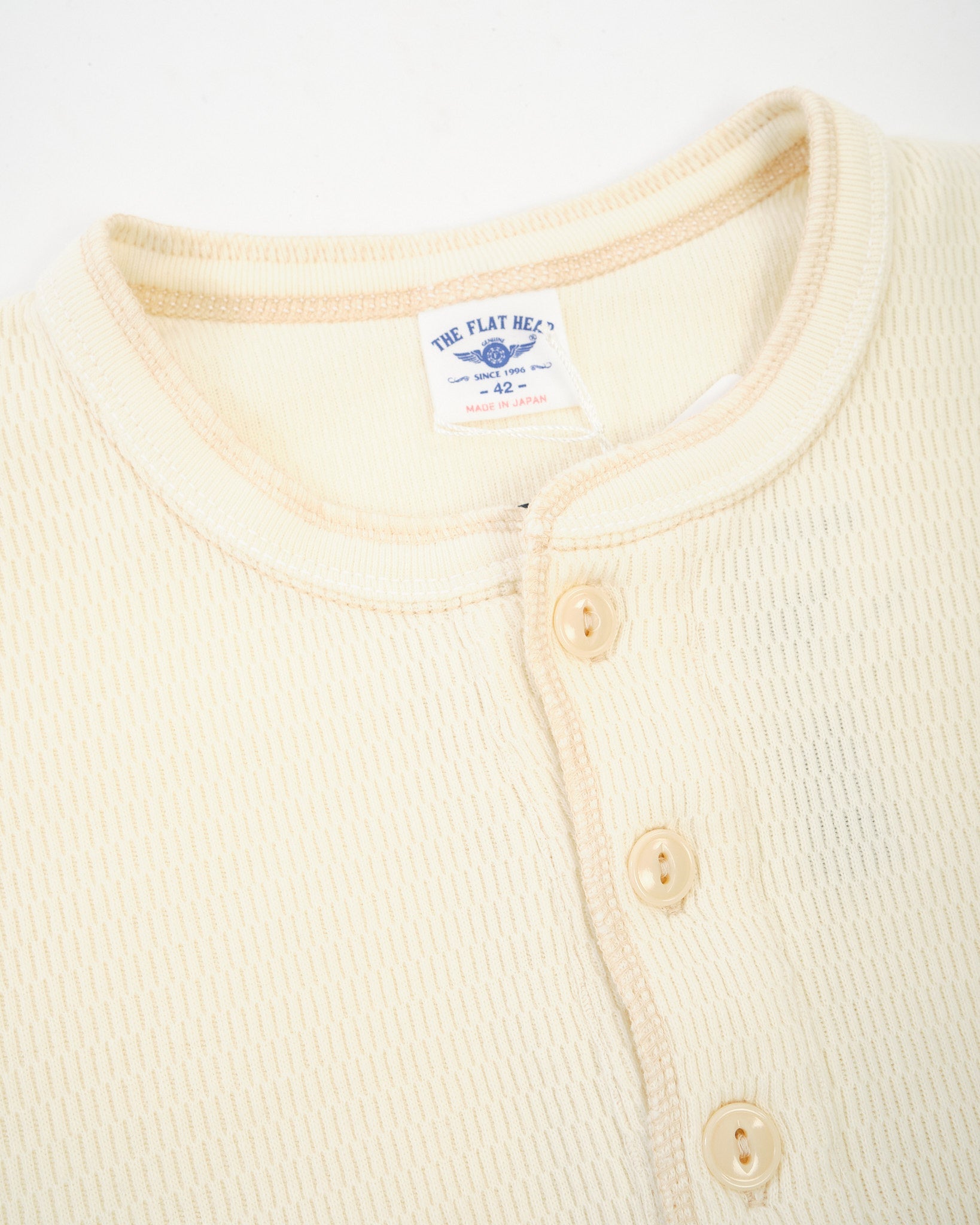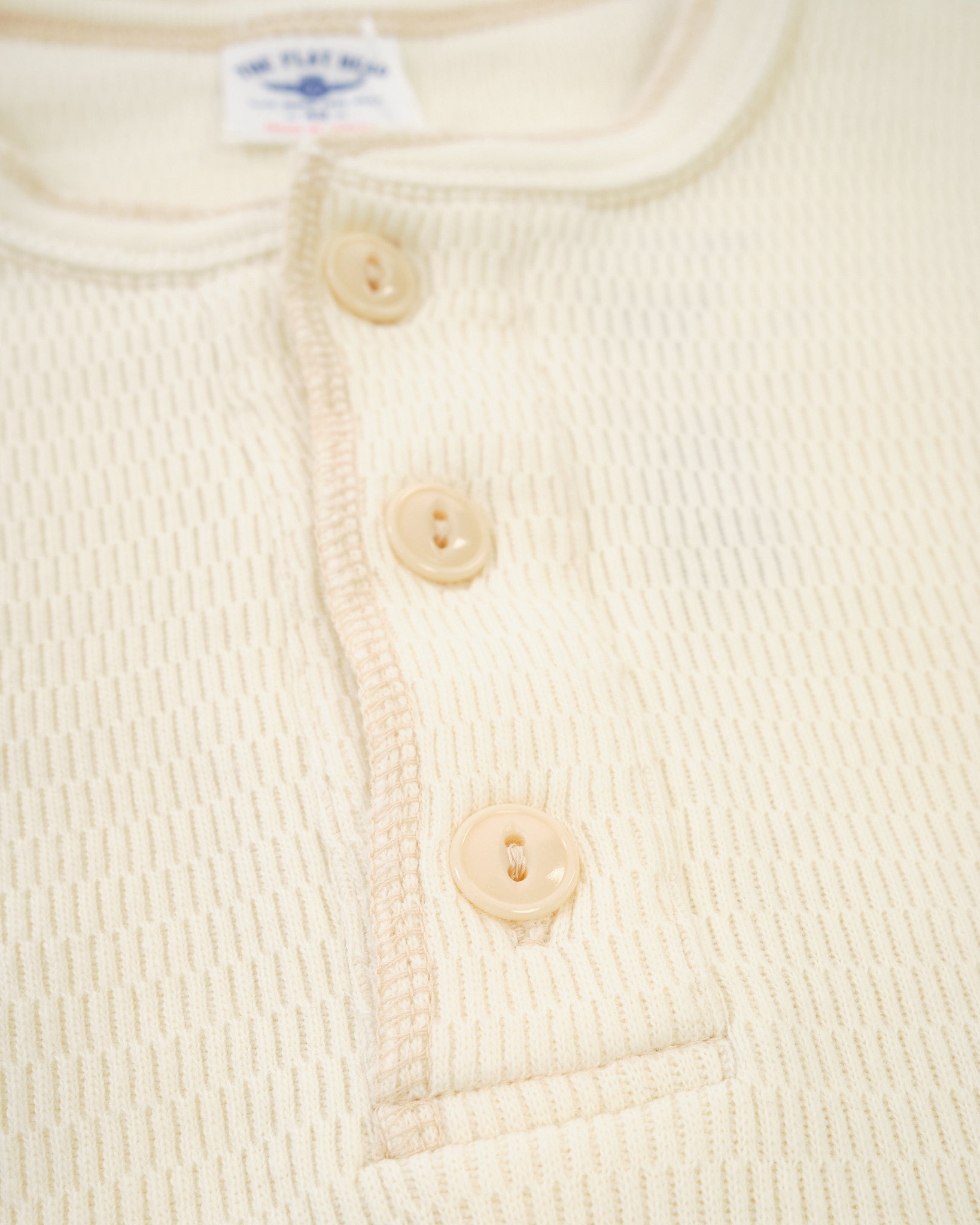 • Style number FN-THLH-004 – Henley neck thermal in Ivory