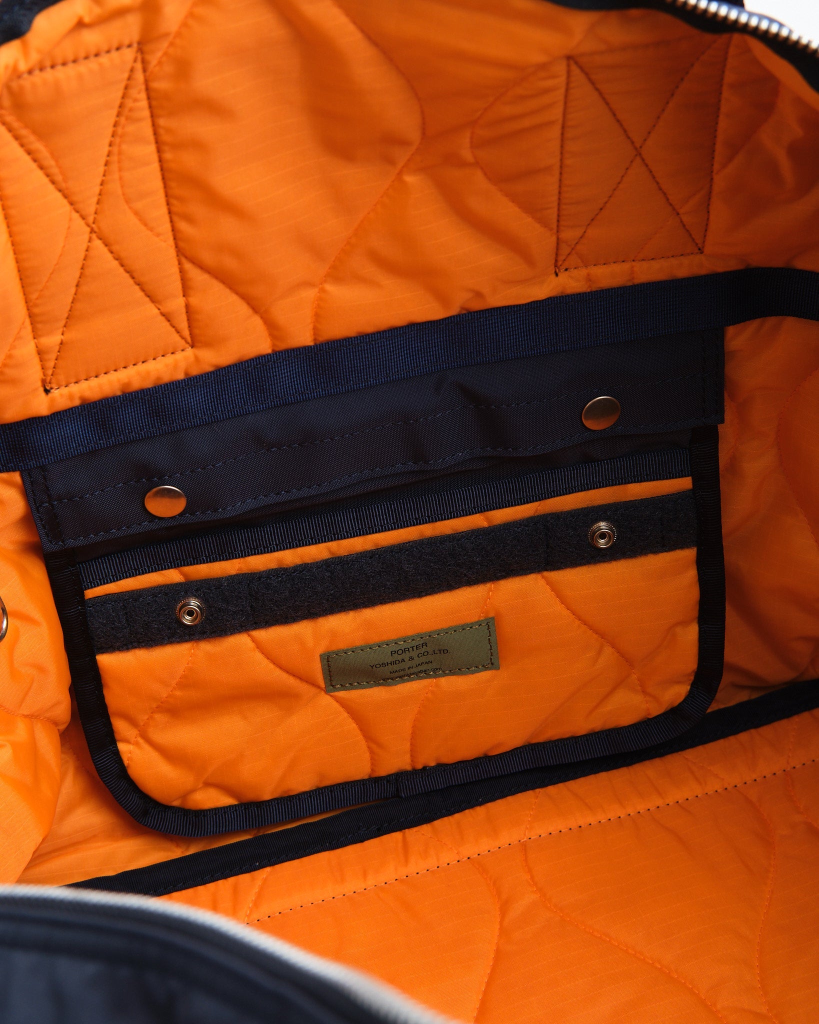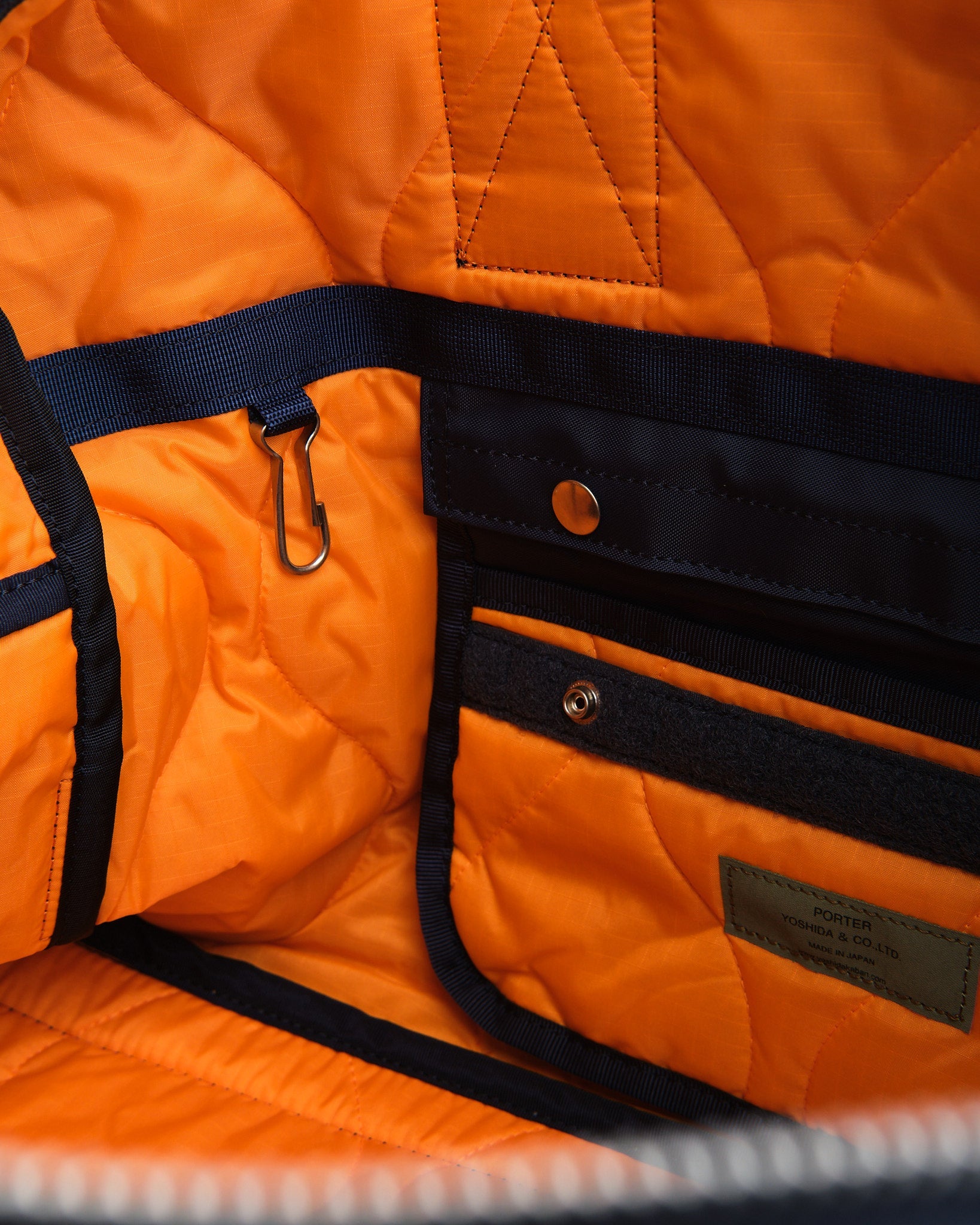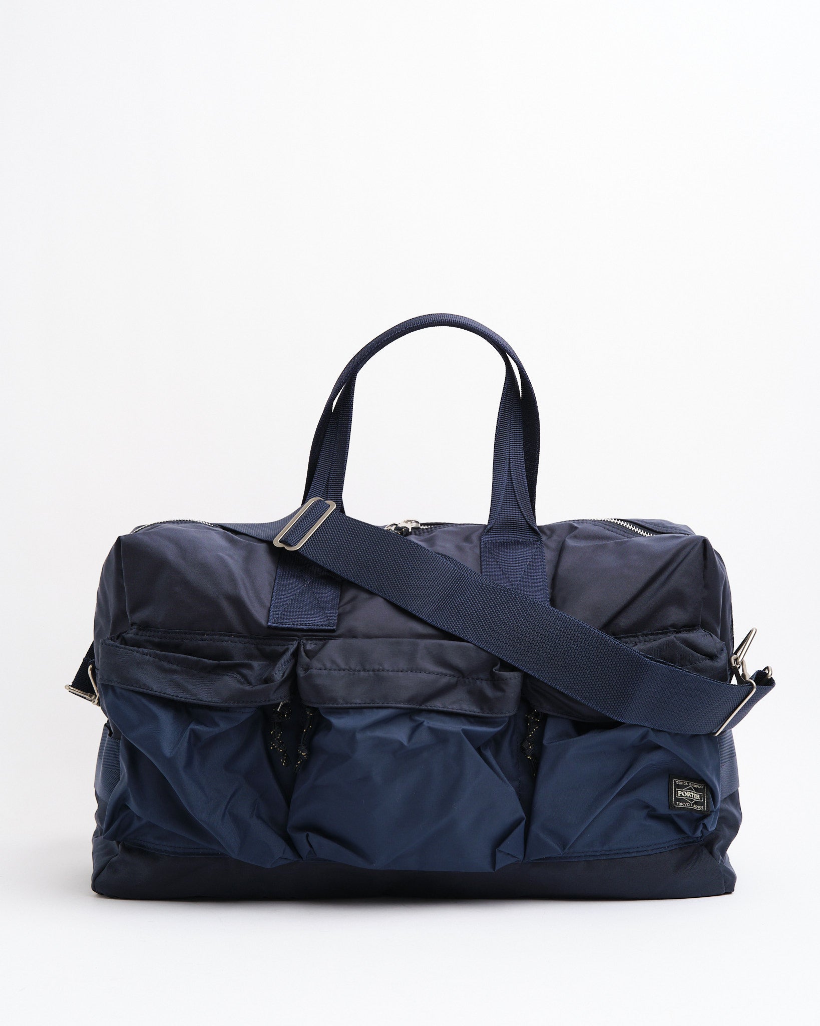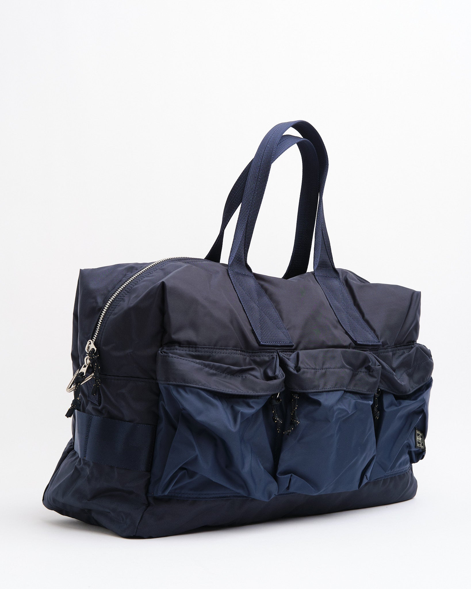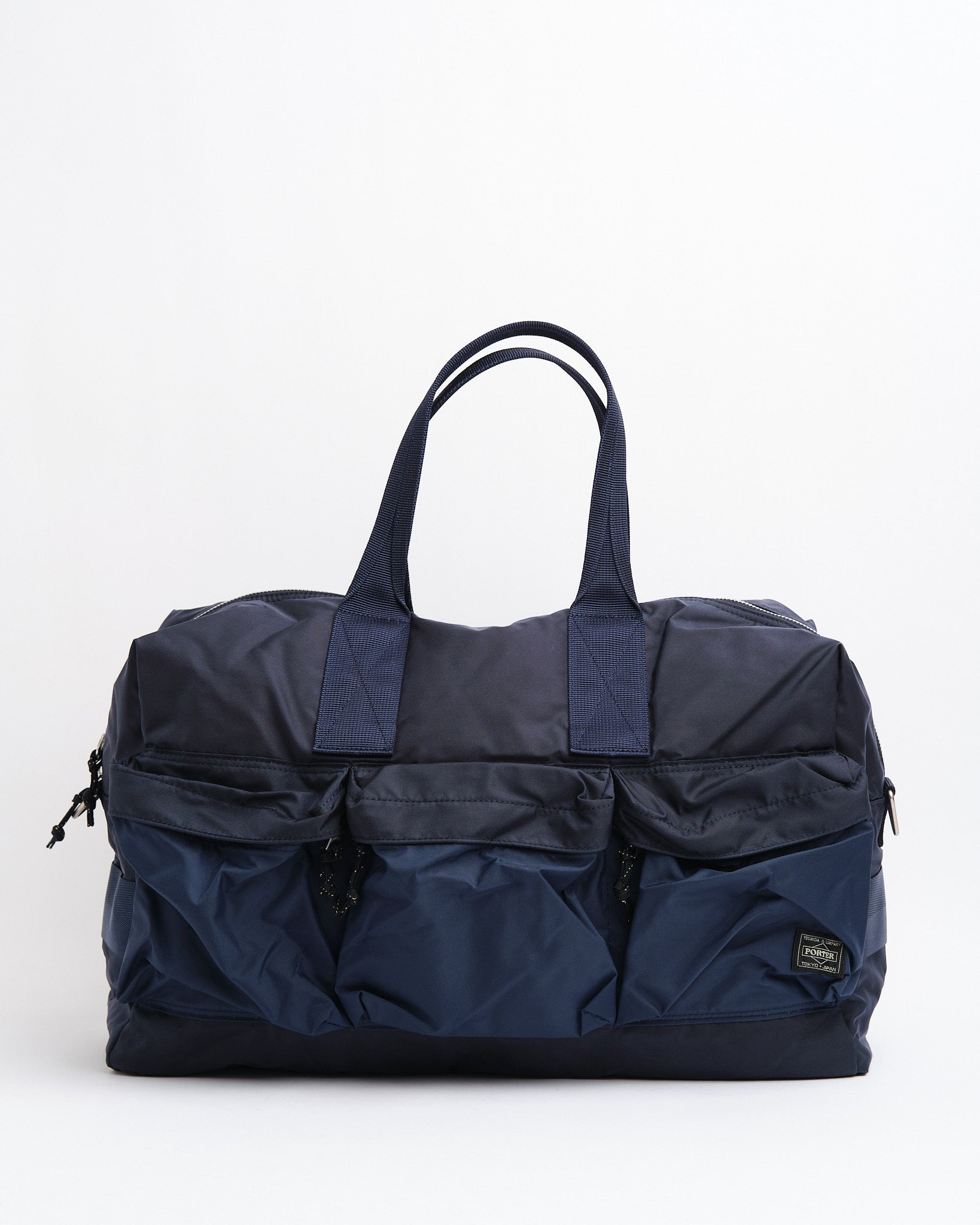 La Borsa Duffle 2-Vie PORTER BY YOSHIDA fa parte della serie PORTER FORCE, ispirata all'estetica militare e alle differenze di colore accidentali trovate nei beni militari. Una caratteristica notevole di questo design è la sottile variazione di colore tra il tessuto della tasca frontale e il corpo principale della borsa, creando l'aspetto di utilizzo di lotti di tessuto differenti. Questa serie celebra gli schemi di colore irregolari trovati nell'abbigliamento e negli accessori militari.