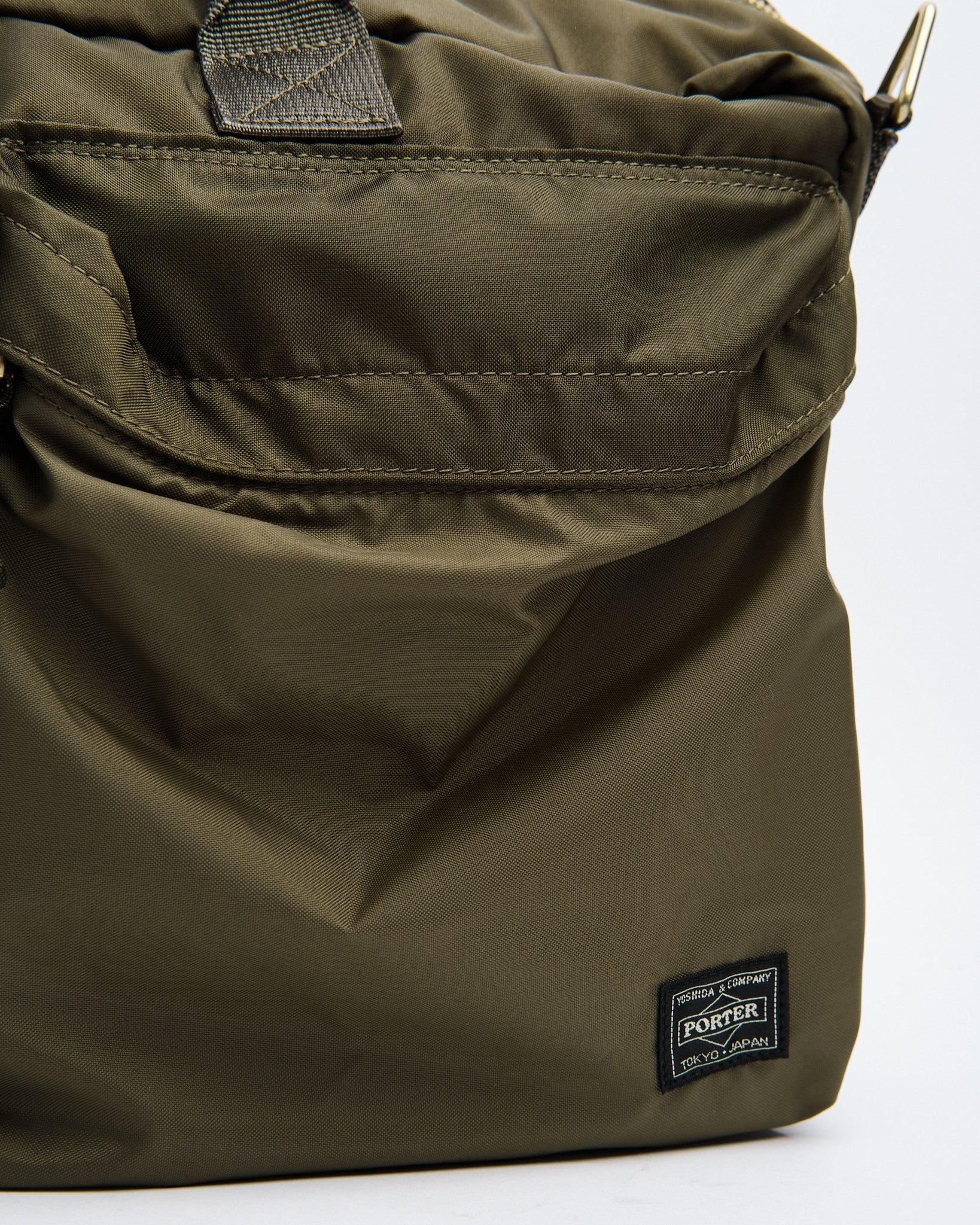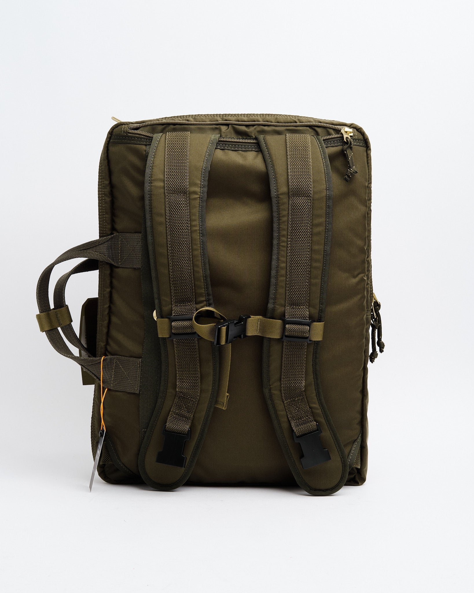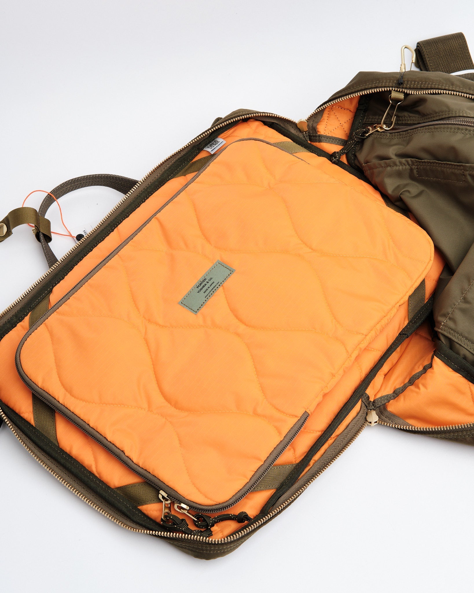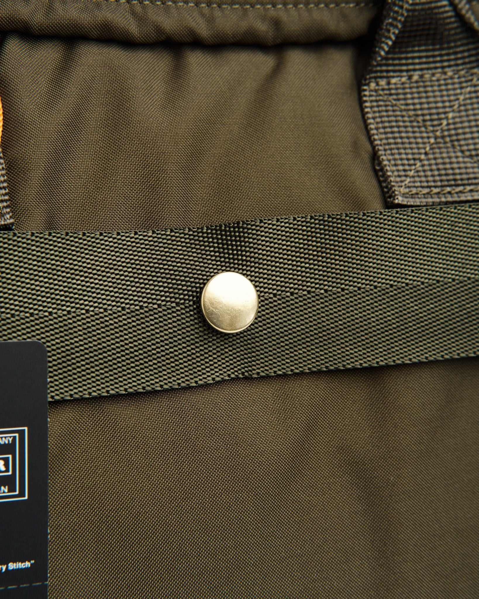 La PORTER BY YOSHIDA Force 3-Way Briefcase fa parte della serie PORTER FORCE, ispirata all'estetica militare e alle differenze di colore accidentali trovate nei beni militari. Una caratteristica notevole di questo design è la variazione di colore sottile tra il tessuto della tasca frontale e il corpo principale della borsa, creando l'aspetto di utilizzo di lotti di tessuto differenti. Questa serie celebra gli schemi di colore irregolari trovati nell'abbigliamento e negli accessori militari.