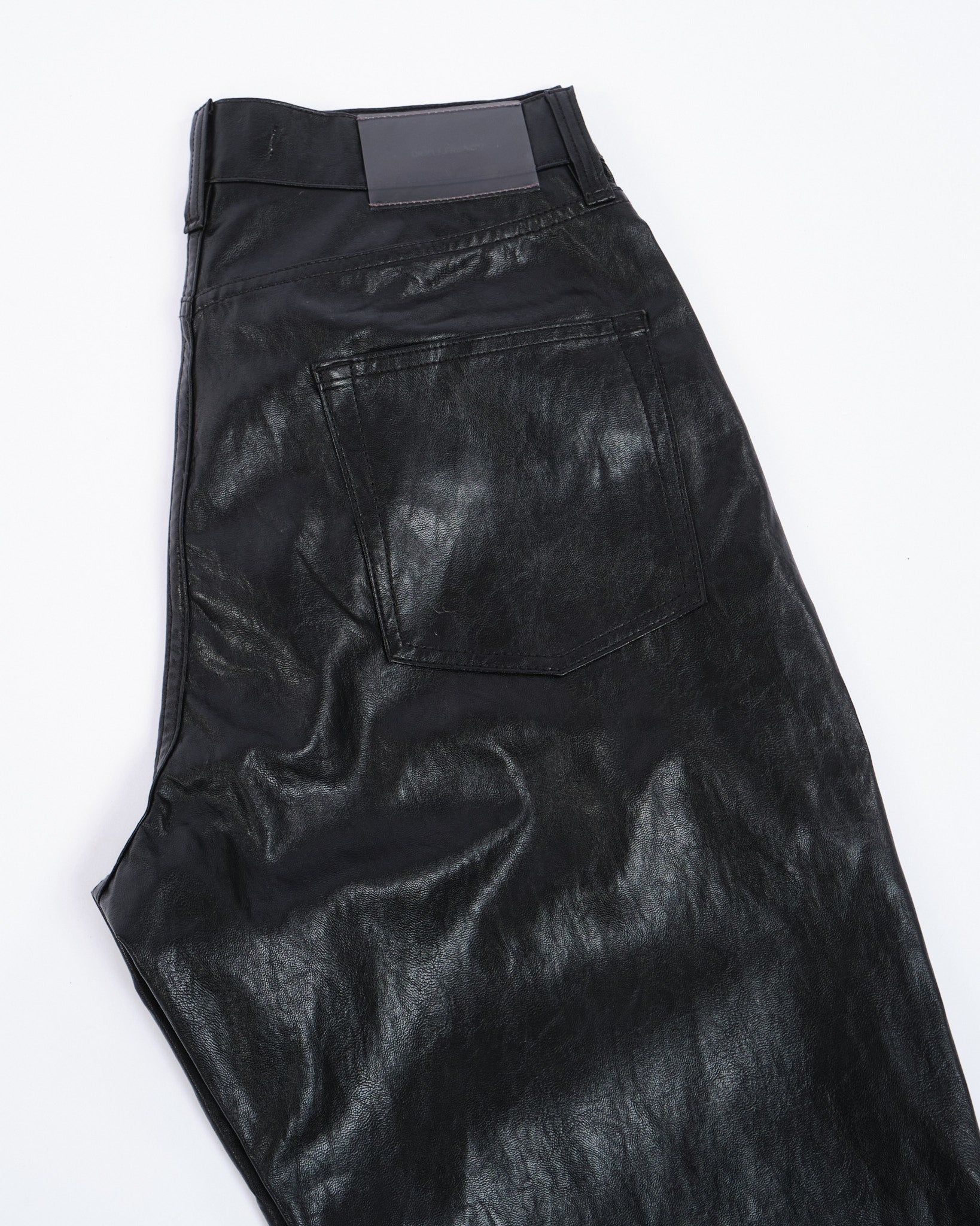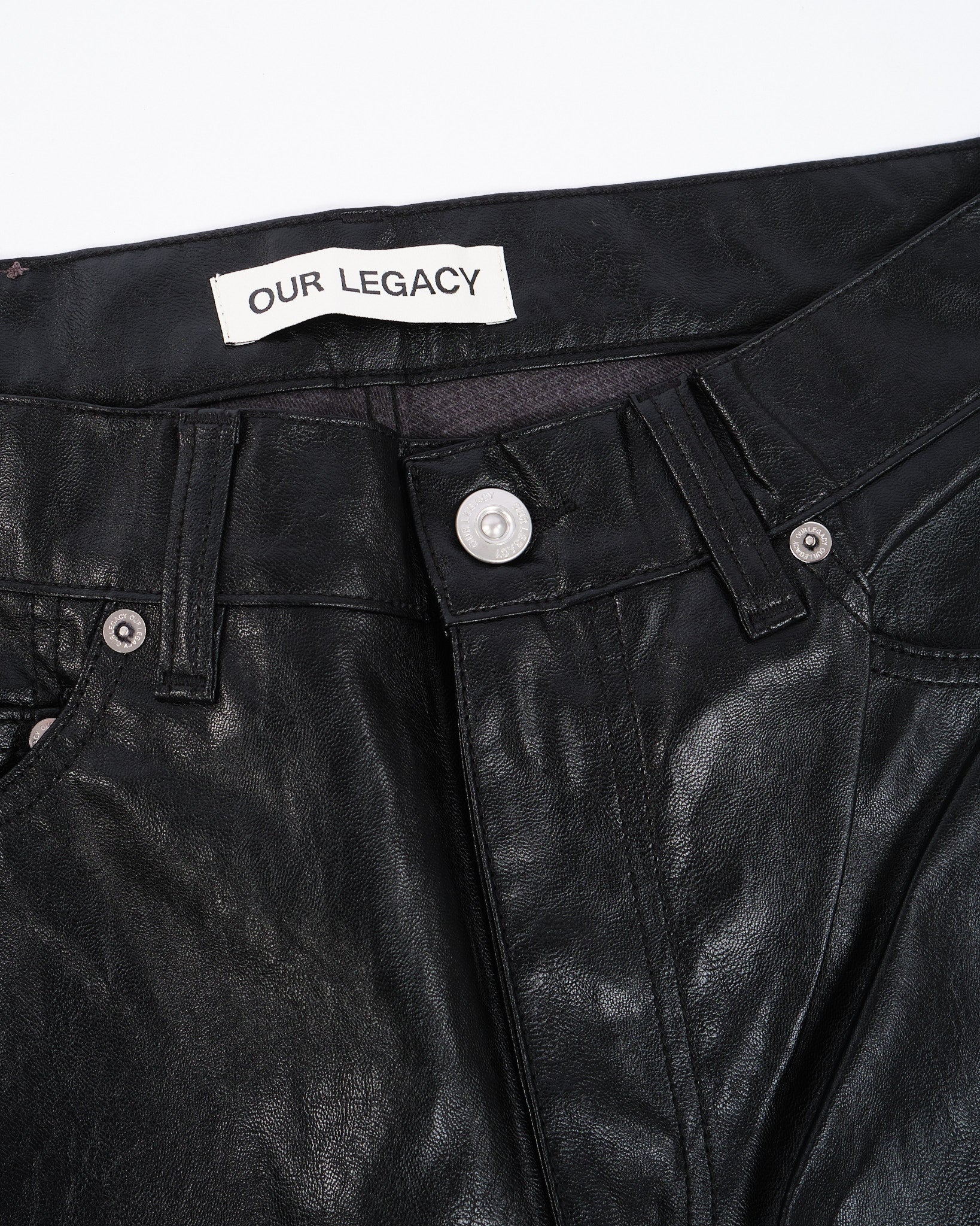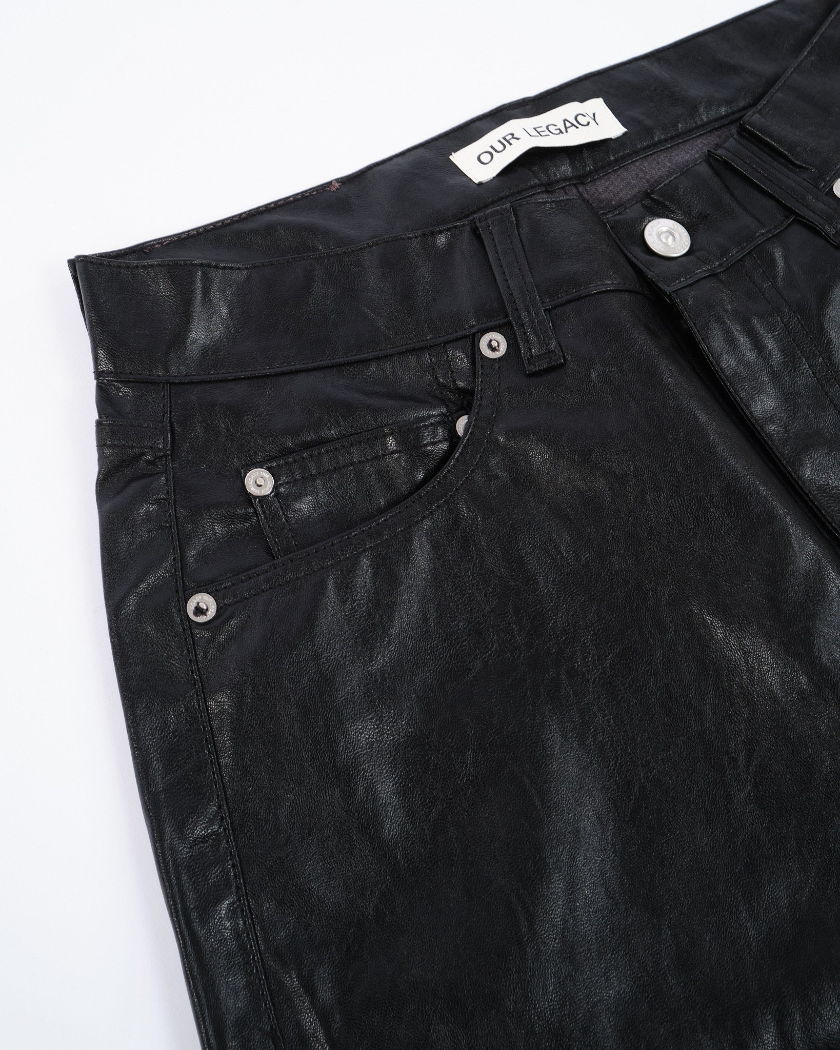 Una finta pelle morbida e leggera, in gamba dritta e vita media-alta, rende il pantalone autunnale perfetto. Cinque tasche e una patch trasparente di Our Legacy. Prodotto in Portogallo.