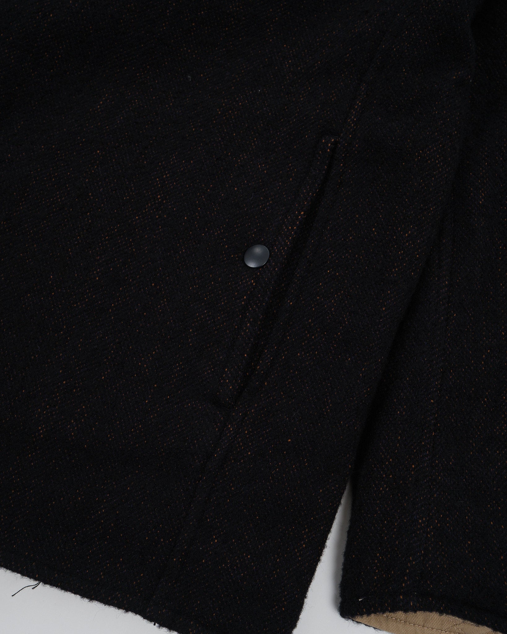 L'esterno è avvolto in tweed tinto in filo, arricchito da un motivo a spina di pesce in misto lana intrecciato con filo loop e grandrelle slab. All'interno, tutto è incentrato su comfort e sostenibilità. La fodera in cotone biologico è potenziata dall'isolamento PRIMALOFT, derivato interamente da materiali riciclati. Goditi la flessibilità di due look distinti con la sua caratteristica reversibile.