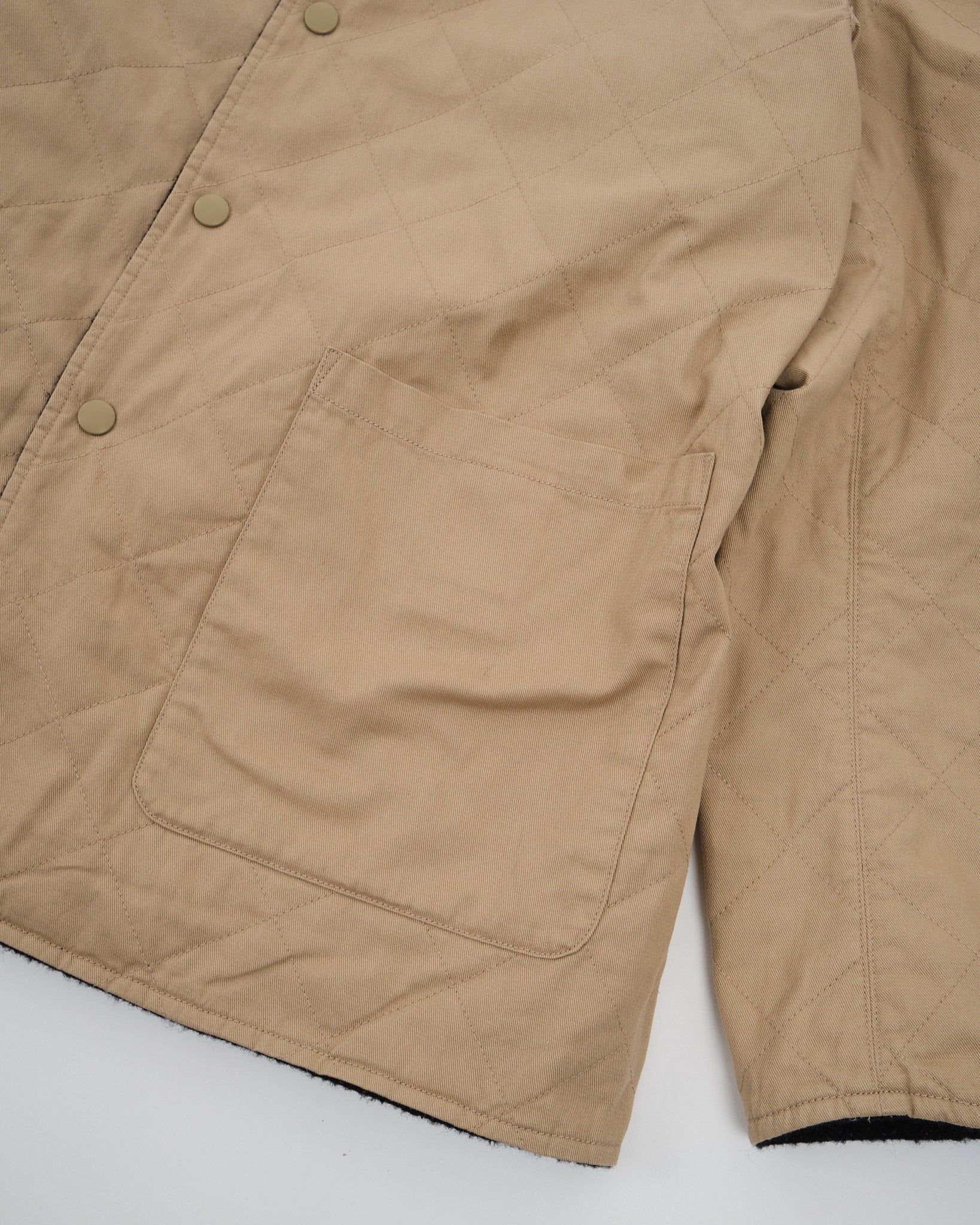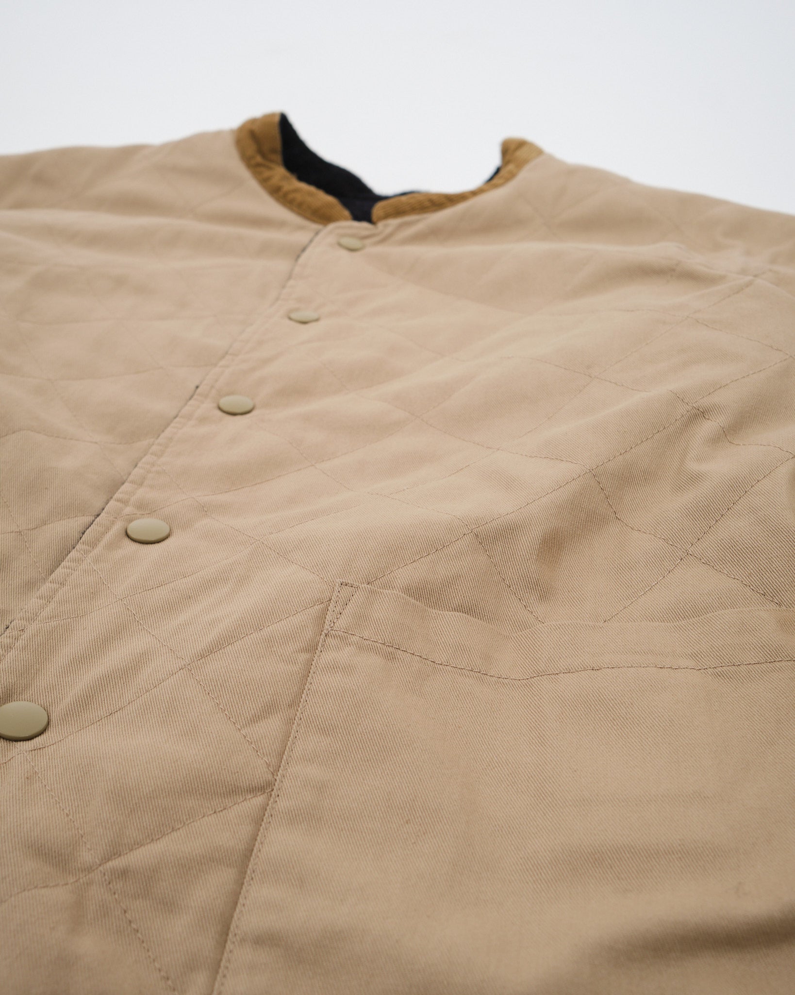 Arricchisci il tuo guardaroba con la Giacca Reversibile Nanamica in Navy, un perfetto equilibrio tra classico e contemporaneo. Ispirata al design equilibrato del tradizionale abbigliamento da lavoro americano, questa giacca con colletto alla coreana presenta una silhouette rilassata che emana un'eleganza sobria.