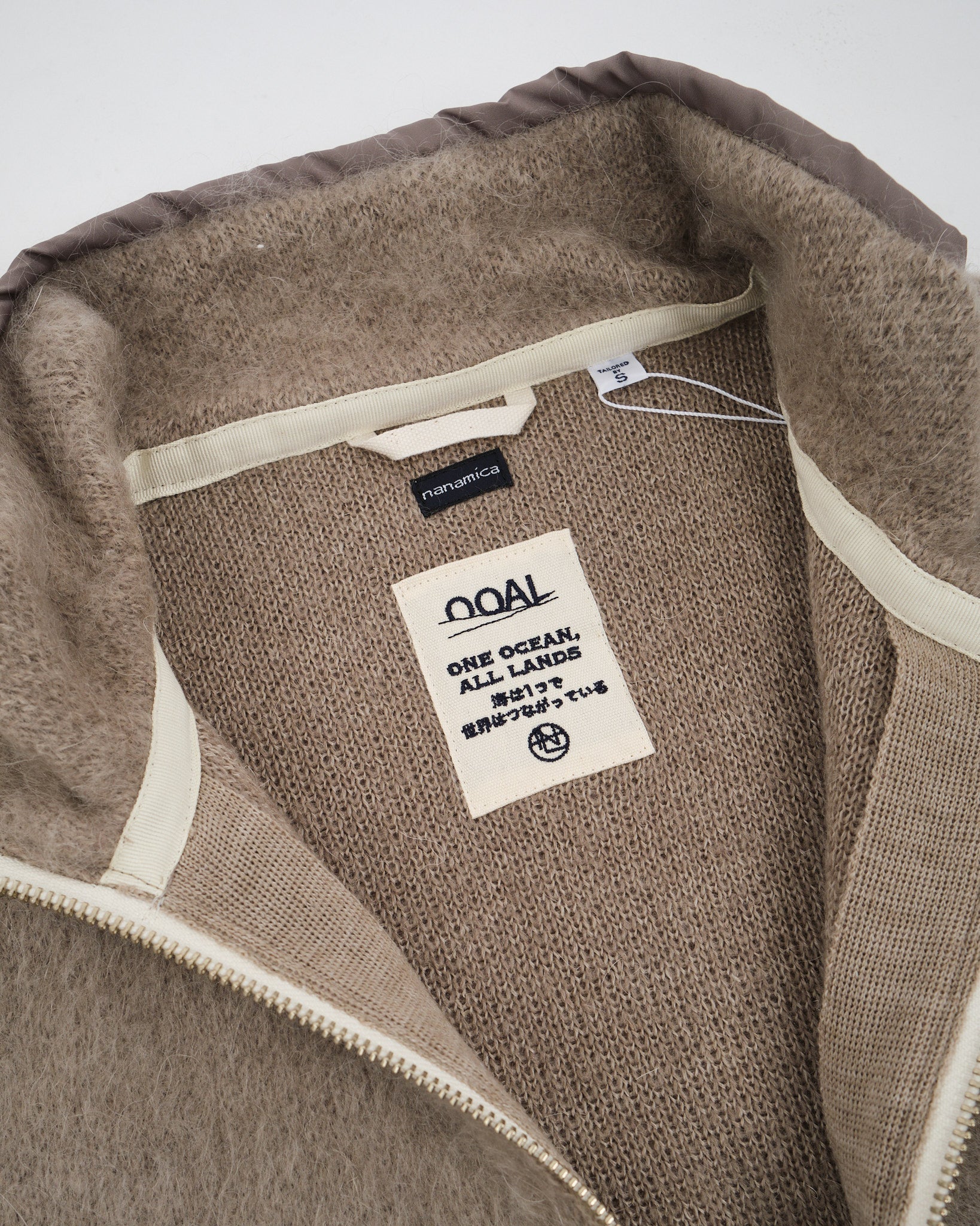 Immergiti nel calore e nel comfort senza paragoni del Gilet in Mohair con Zip Nanamica in Beige. Questo pezzo è realizzato con filato derivato da mohair grezzo, proveniente da fattorie rigorosamente dedicate a pratiche di produzione sostenibile, e meticolosamente lavorato in Giappone. La finitura della fibra sollevata dona al gilet un volume che ricorda il pile da esterno. Ispirandosi al mitico gilet in pile degli anni '90, questo gilet subisce una trasformazione moderna per abbracciare un design minimalista. Con la sua silhouette oversize, promette una vestibilità rilassata e fluida per ogni occasione.