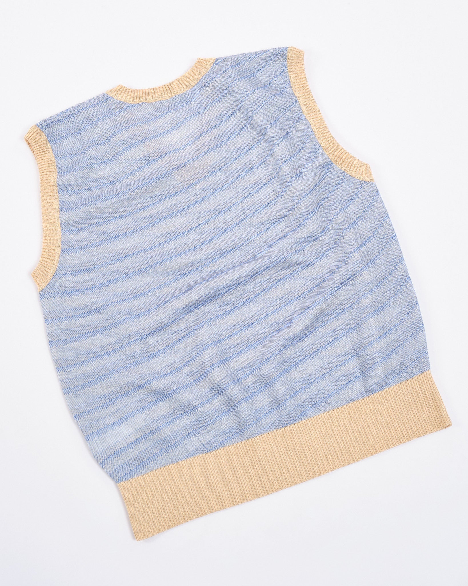 Il gilet è progettato con un collo a V, polsini e orlo a costine, rendendolo perfetto per essere sovrapposto.
