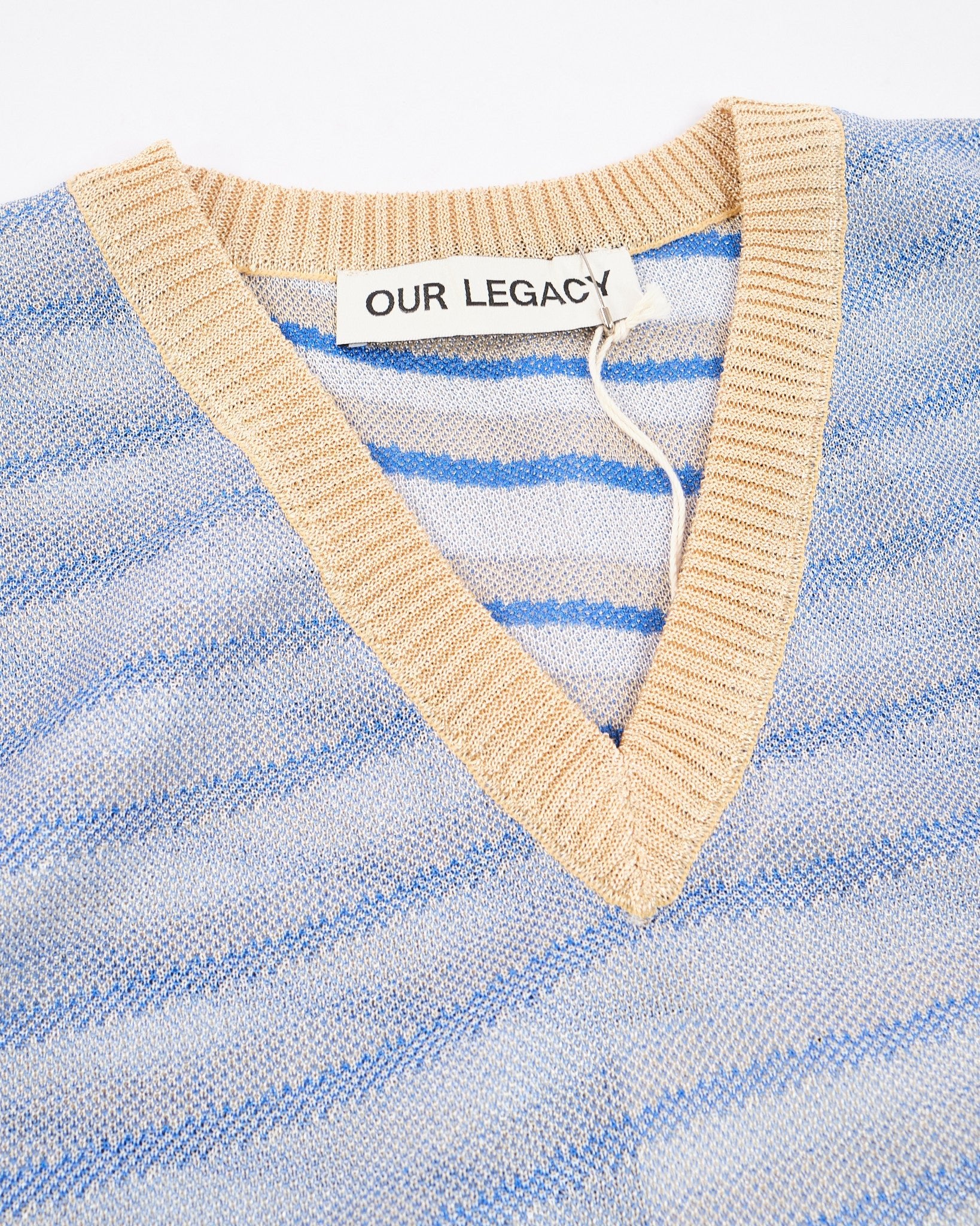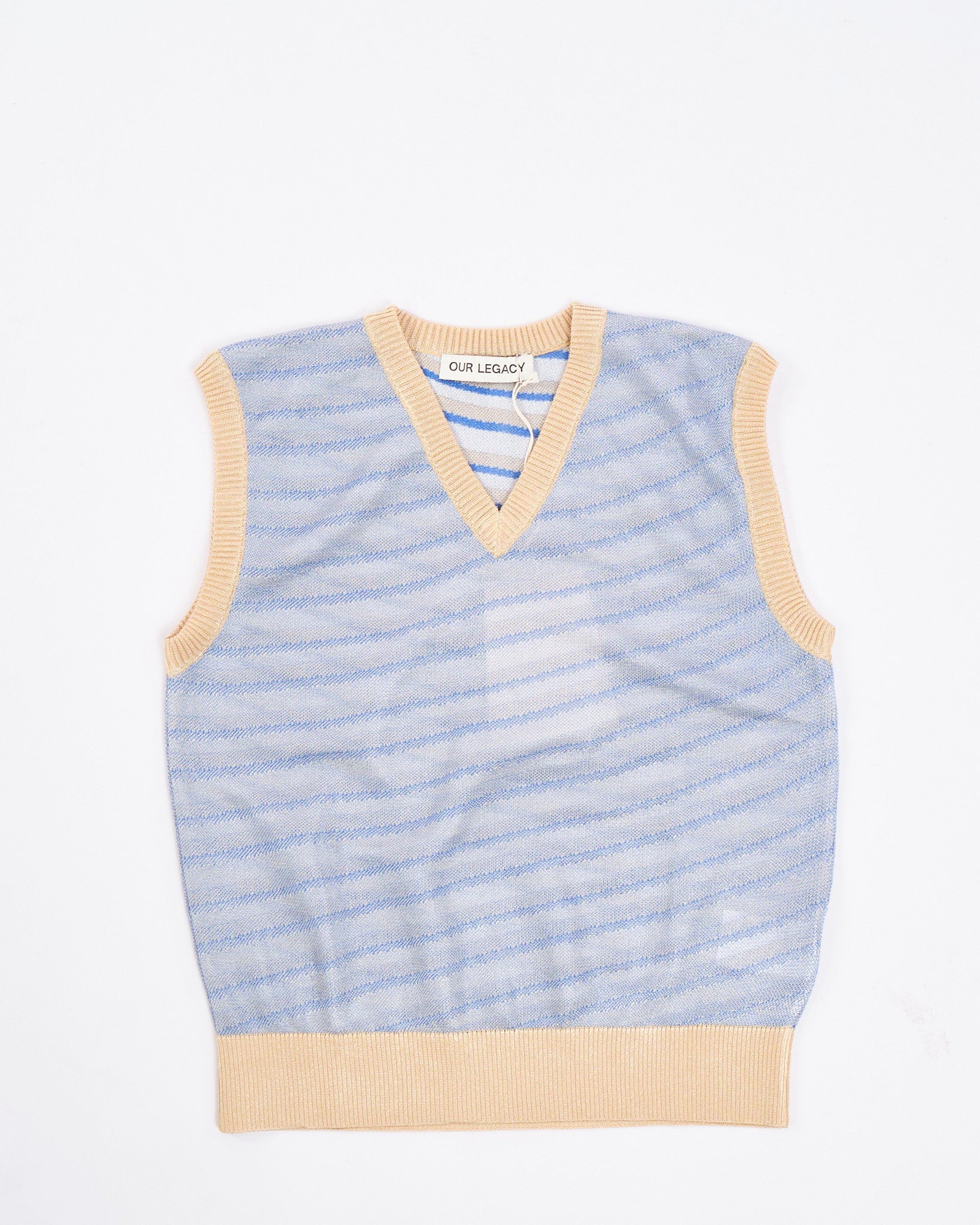 Entra in un regno di moda elegante e sostenibile con il Gilet a Maglia in Striscia Statica Cartoon di Our Legacy. Questo gilet è abilmente realizzato con un filato italiano riciclato in poliestere e un blend di poliestere, testimoniando il nostro impegno per la moda eco-compatibile. Il gilet presenta un tessuto a righe lucido e una vestibilità rilassata, offrendo sia stile che comfort. Il gilet include un collo a V, polsini e orlo a costine, ed è senza maniche, perfetto per essere sovrapposto o indossato da solo. Come ogni pezzo unico di Our Legacy, questo capo si consumerà naturalmente nel tempo, migliorando il suo carattere e completando il suo processo di design.