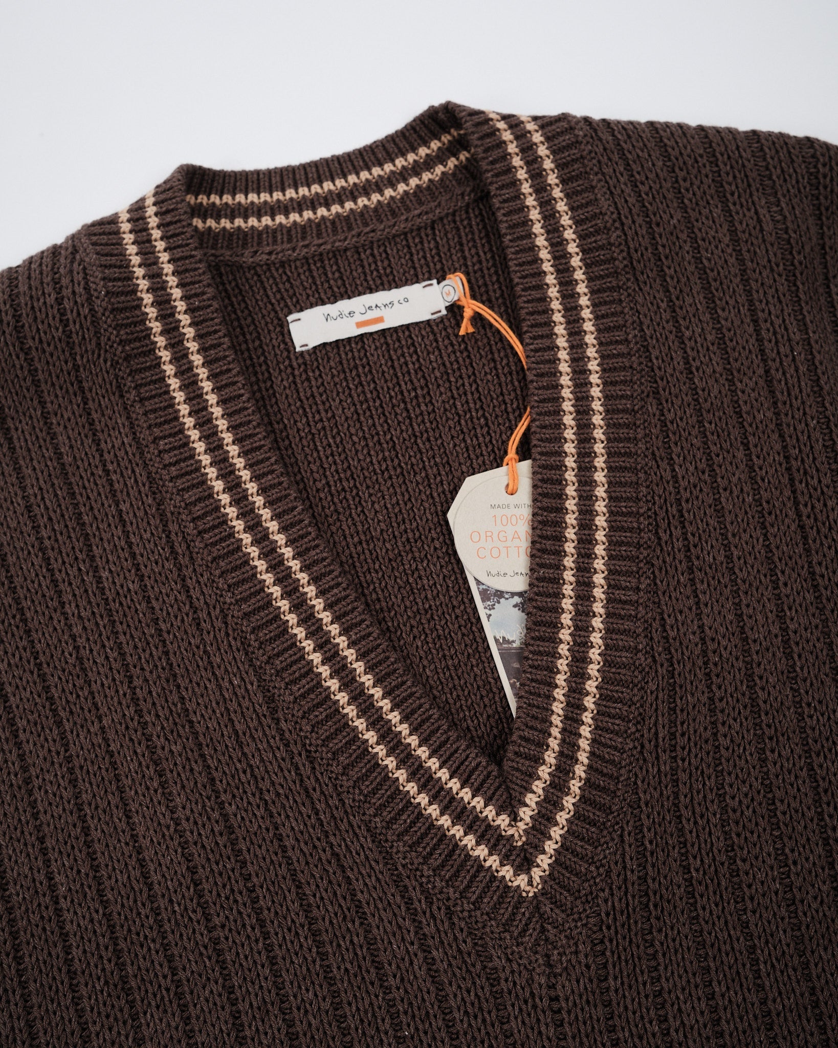 Lasciati coccolare dalla comodità senza tempo del Gilet Maglia Sverre, di Nudie Jeans Co., pensato per un aspetto ancora raffinato. Questo gilet con scollo a V è realizzato in cotone biologico di peso, mostrando una maglia a coste larghe che offre un mix di texture e comfort. Il tocco finale include eleganti polsini a coste 1x1 a righe che mescolano charme con eco-sostenibilità contemporanea.