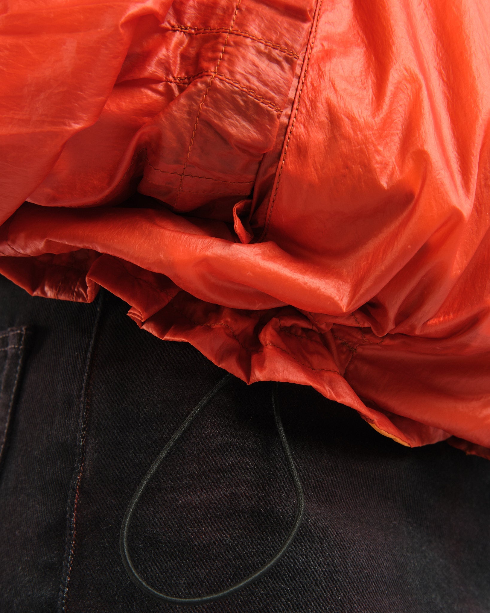 Presentiamo la giacca Our Legacy Luft in Nylon Gommato Eld - la perfetta combinazione di moda e funzionalità. Questa giacca è prodotta in Italia utilizzando un tessuto tecnico premium con una copertura gommata, fornendo una finitura elegante e resistente. La vestibilità leggermente corta e squadrata e il collo a imbuto le conferiscono un taglio moderno, mentre la chiusura con zip RiRi a contrasto e la tasca sulla manica da bomber aggiungono un tocco di stile in più.