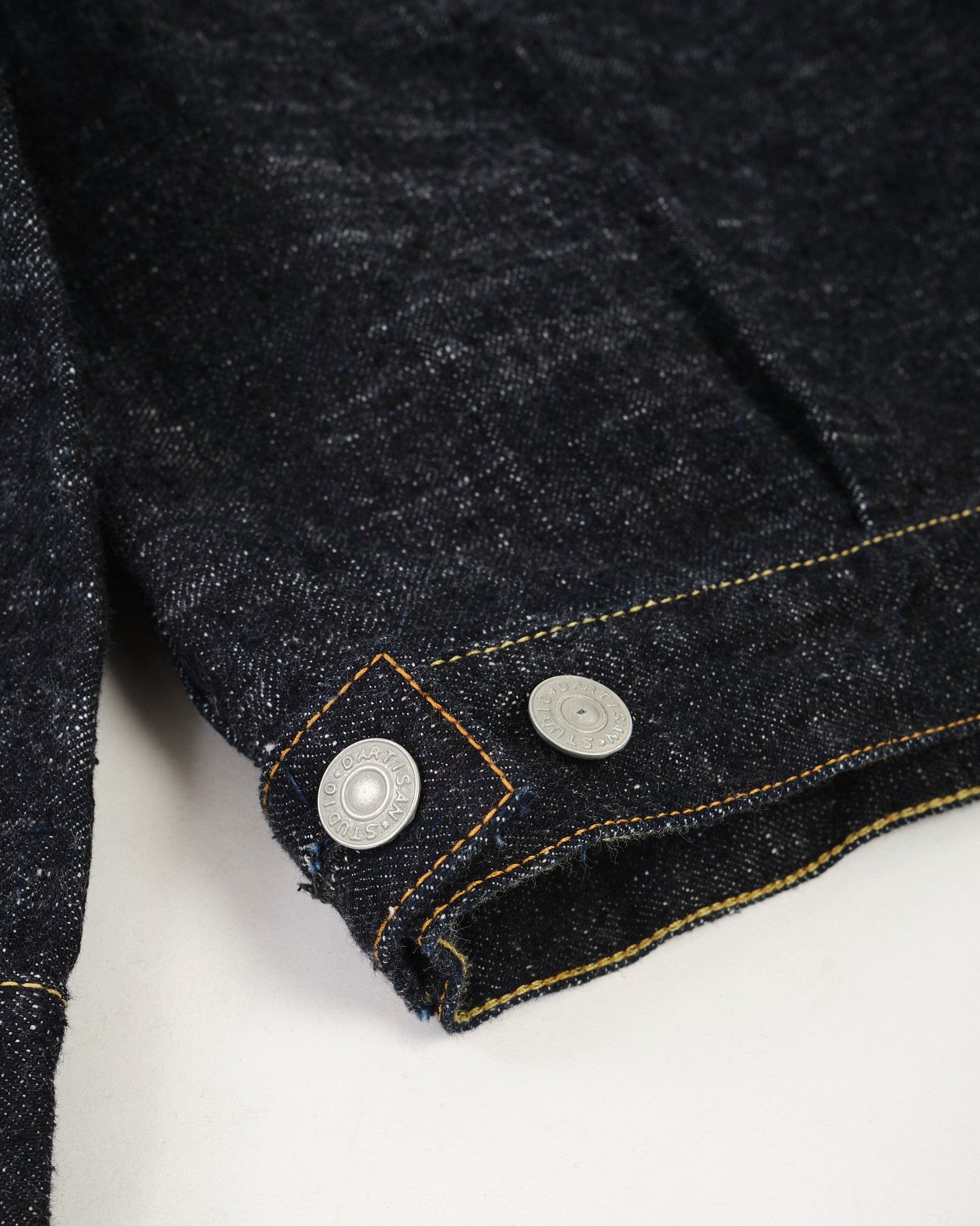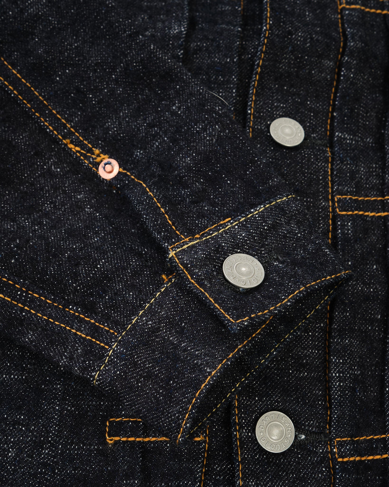 Il STUDIO D'ARTISAN GL3 2nd Type Denim Jacket (SD-4102) è una rielaborazione magistrale di una giacca di denim classica di 2° tipo, realizzata utilizzando l'esclusivo denim selvedge GL3 da 15oz del marchio. Progettato per abbracciare le proprietà uniche del tessuto GL3, ogni aspetto della composizione del denim—spessore del filo, forma irregolare, processo di tintura a corda e densità di tessitura—è stato attentamente perfezionato.