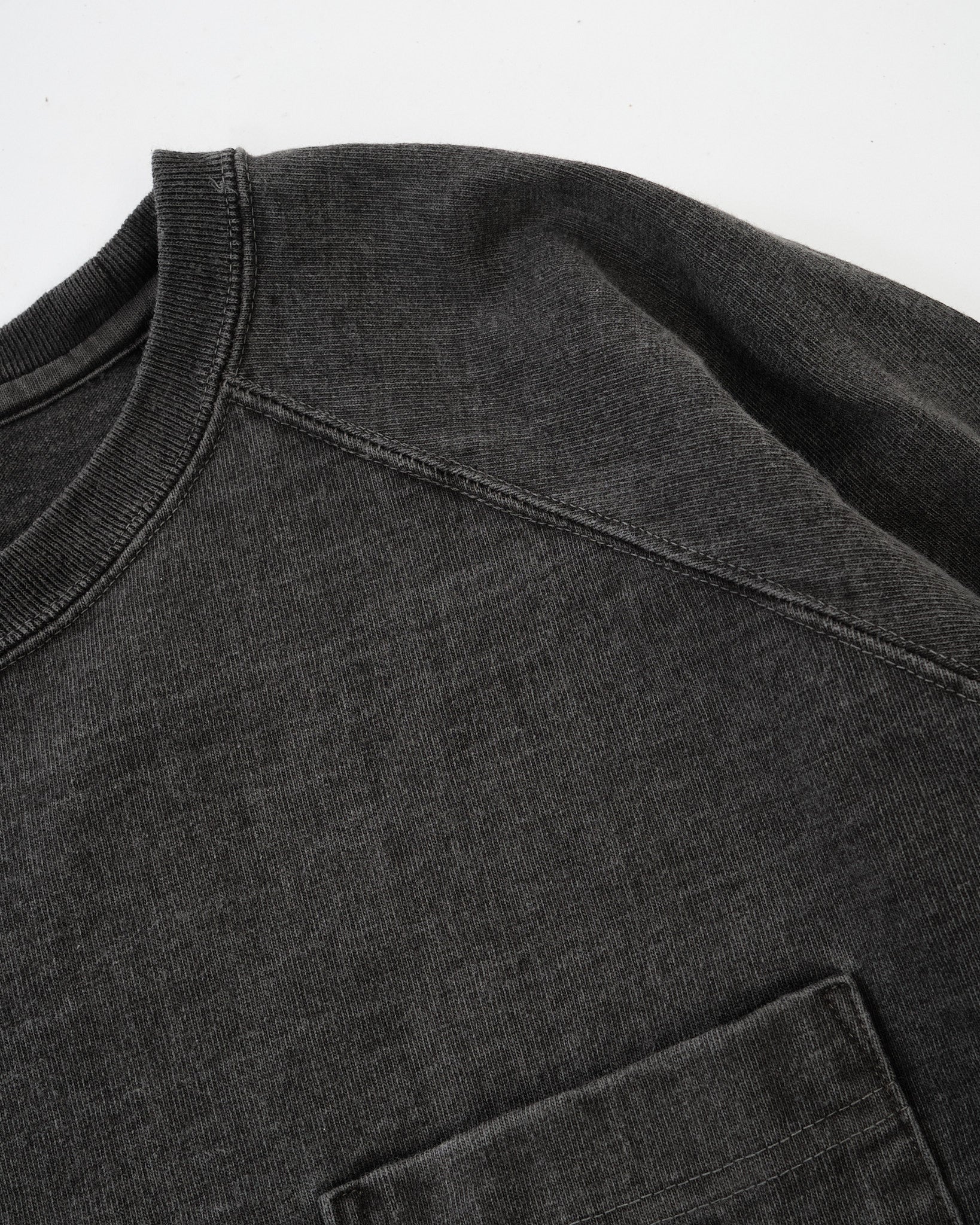 Good On prende la sua maglietta tascabile pesante Raglan più venduta e la trasforma in una versione a maniche lunghe. Realizzata in robusto jersey di cotone americano da 9oz, il tessuto sembra più una felpa leggera che una maglietta standard — spesso, resistente e costruito per durare. Il design delle maniche raglan aggiunge comfort e facilità di movimento, mentre la tasca sul petto mantiene le cose pratiche. Con gli anni di utilizzo, il tessuto sviluppa un carattere unico, diventando più personale ad ogni lavaggio. Prodotto in Giappone, questo è un essenziale pesante che continuerai a scegliere, stagione dopo stagione.
