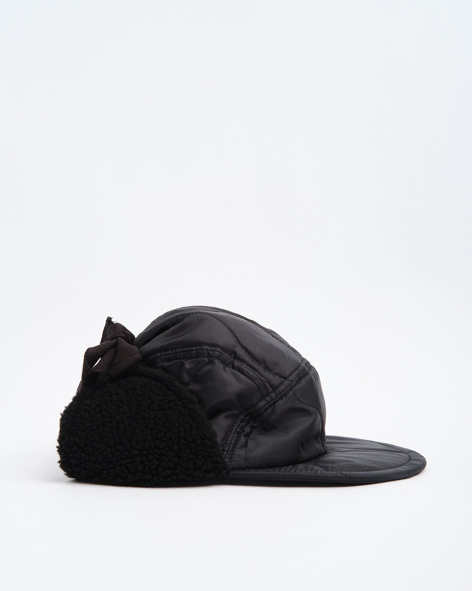 Il Cappello a Mezzaluna Con Orecchie in Nero di Found Feather è un essenziale per il freddo radicato nell'ispirazione militare e raffinato nell'esecuzione. Realizzato in Giappone da un esterno in nylon trapuntato con imbottitura in poliestere, presenta pannelli per le orecchie in pile boa per un'isolamento aggiuntivo. La costruzione a 4 pannelli, la visiera semi-larga in schiuma EVA e l'elastico completo sul retro si combinano per offrire una vestibilità strutturata ma flessibile. Sottili lacci in cotone, dettagli timbrati a mano e un'etichetta di cura con codice QR completano questo cappello unisex progettato sia per l'utilità che per il cool urbano.