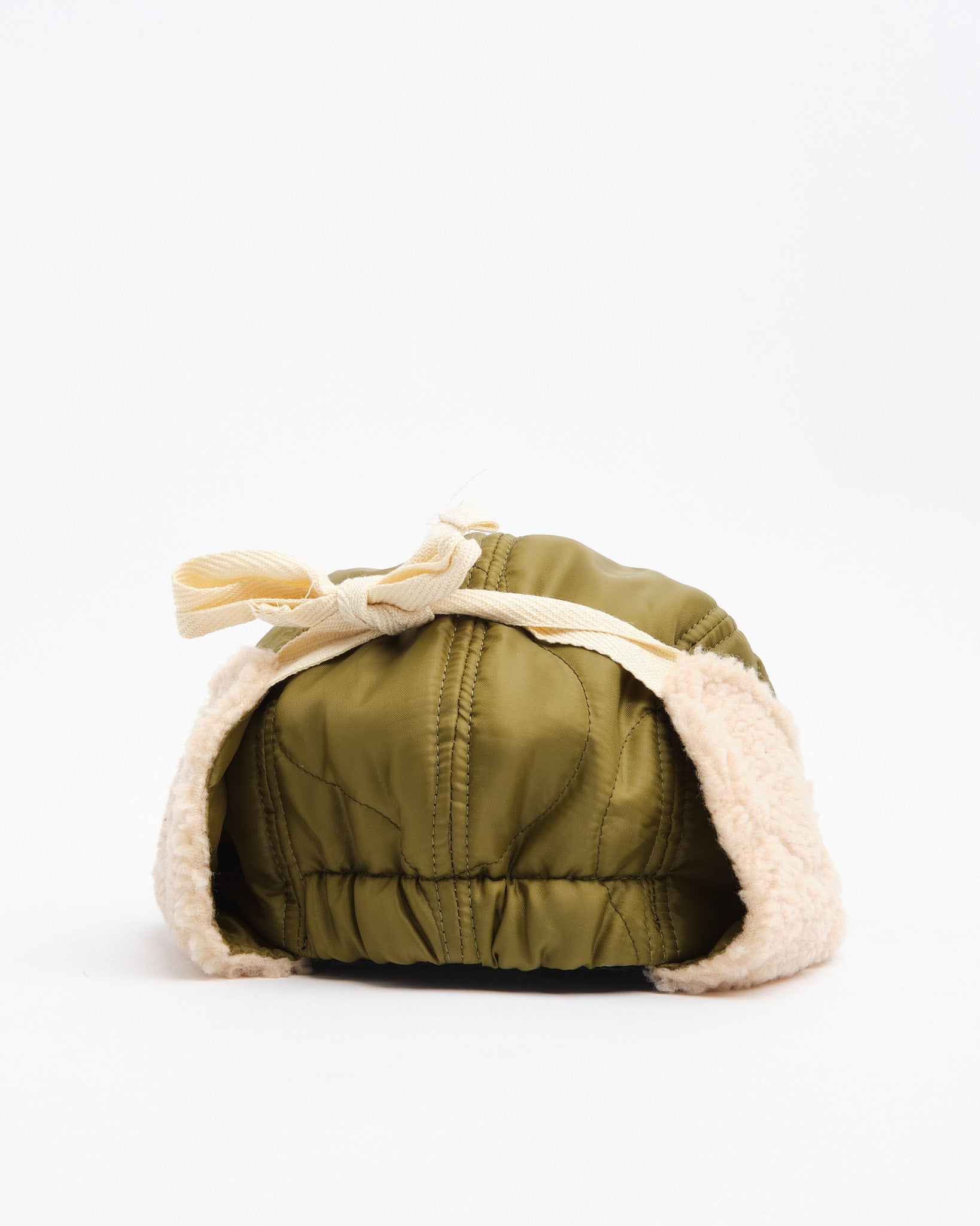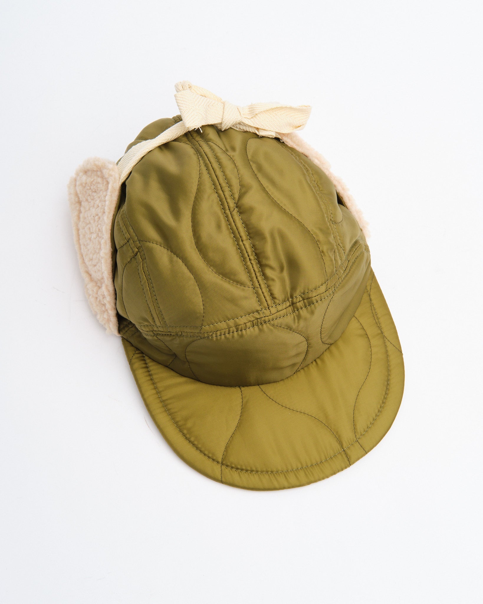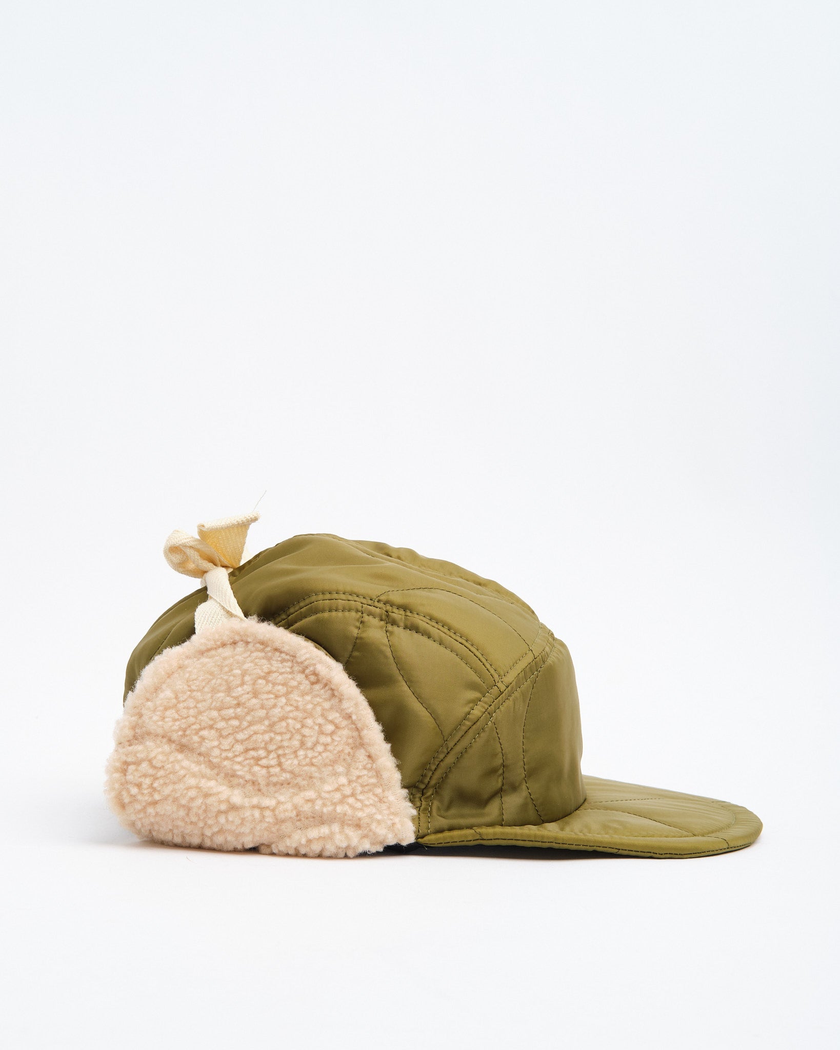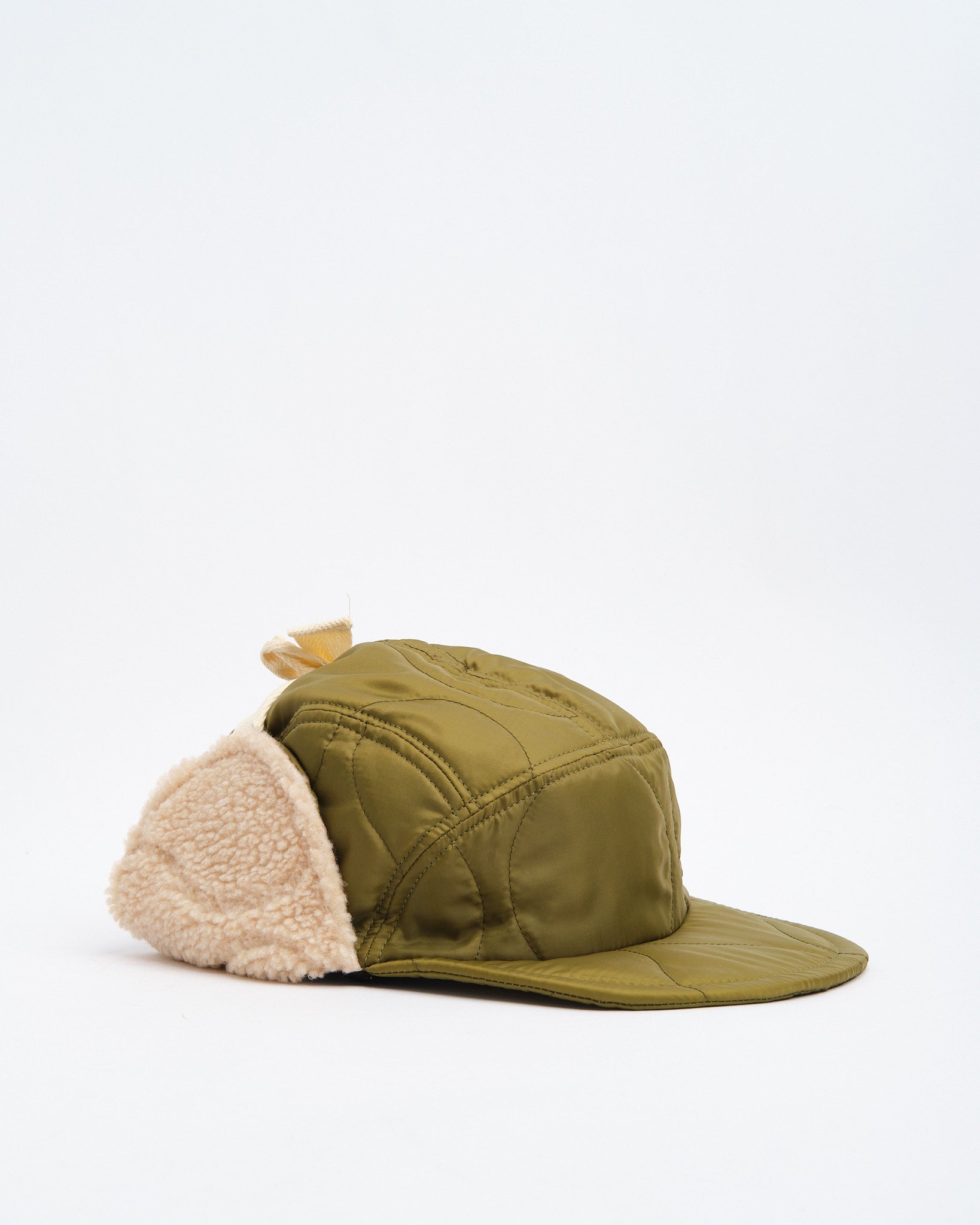 Il Cappellino Mezzaluna con Orecchie di colore Verde di Found Feather è un pezzo ispirato al militare per l'inverno, creato per calore e comfort. Realizzato in Giappone da un guscio di nylon trapuntato con imbottitura in poliestere e pannelli auricolari in morbido pile boa, questo cappello a 4 pannelli è funzionale, leggero e ricco di dettagli rifiniti con cura. Una visiera semi-larga in morbida schiuma EVA offre struttura senza ingombro, mentre i lacci piatti in cotone e l'elastico completo sul retro assicurano una vestibilità sicura e flessibile. Rifinito con dettagli timbrati a mano, fodera in twill di cotone e un'etichetta per la cura codificata QR, è un essenziale utilitario per le missioni in tempo freddo.