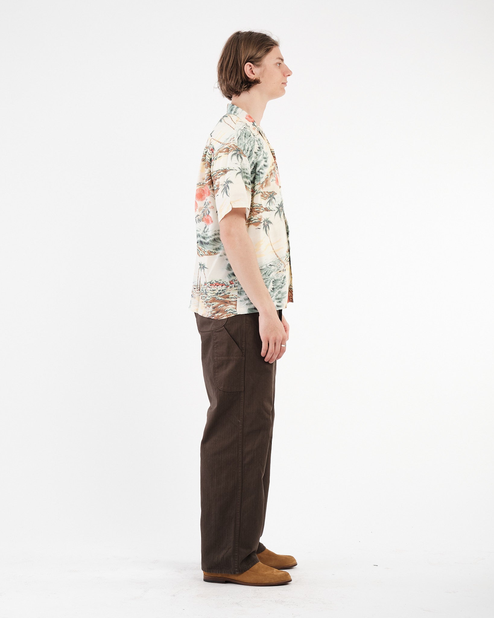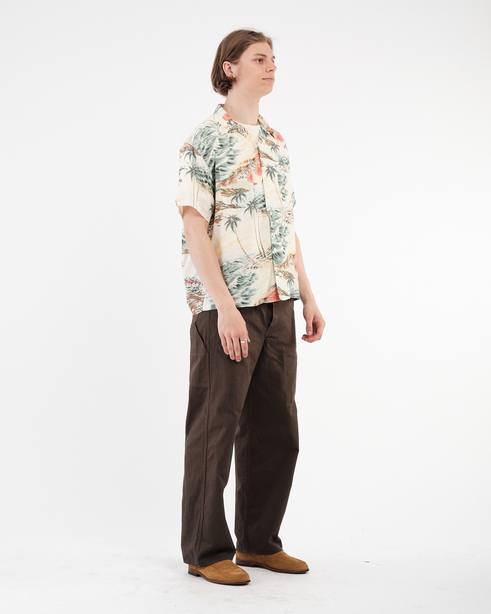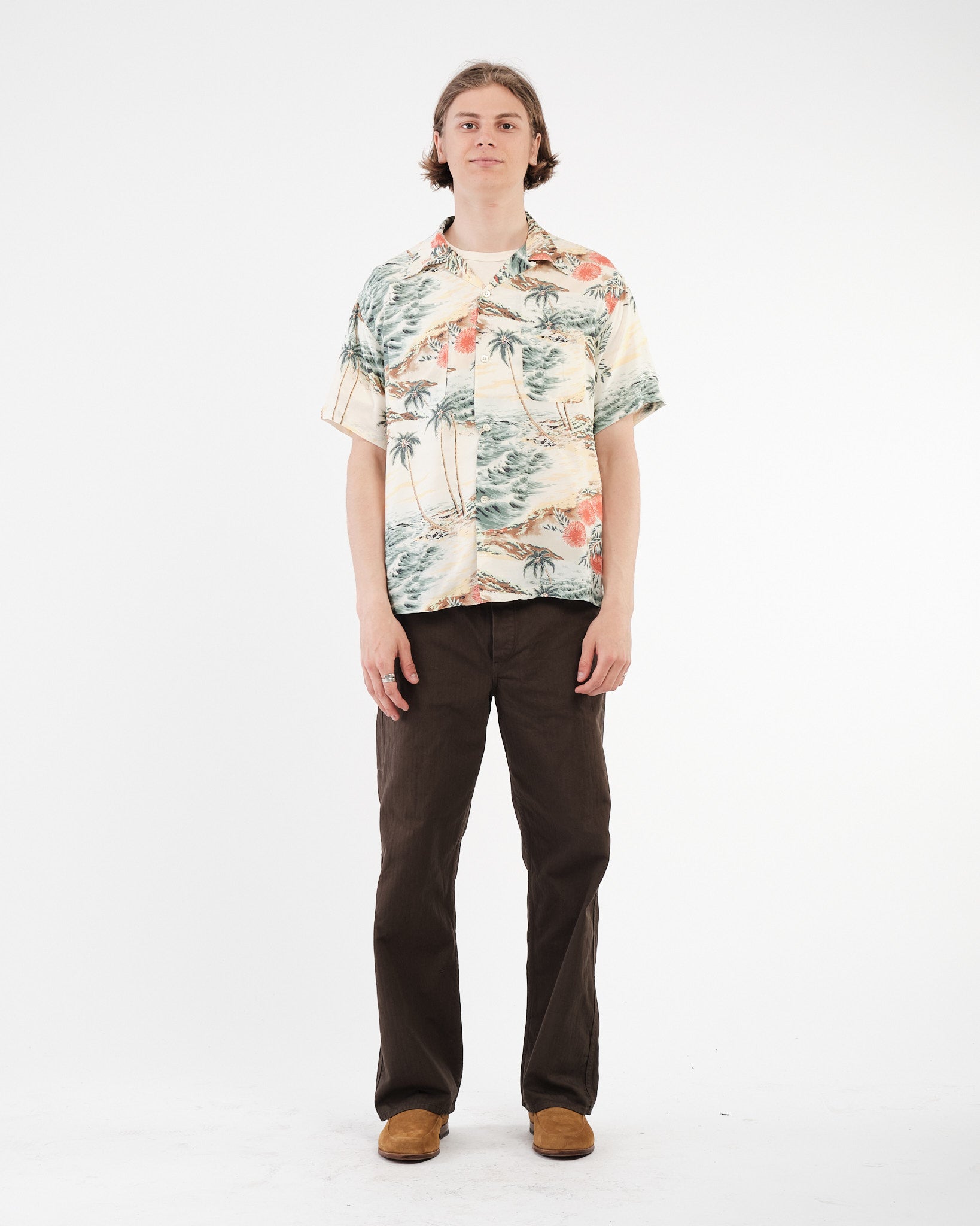 Abbraccia lo stile estivo senza sforzo con la camicia HAWAIIAN di orSlow in ECRU, un pezzo sorprendente che fonde l'estetica tradizionale hawaiana con l'artigianato giapponese. Progettata sia per il comfort che per la versatilità, questa camicia è realizzata in 100% rayon di prima qualità, offrendo una sensazione leggera e traspirante perfetta per le giornate calde.