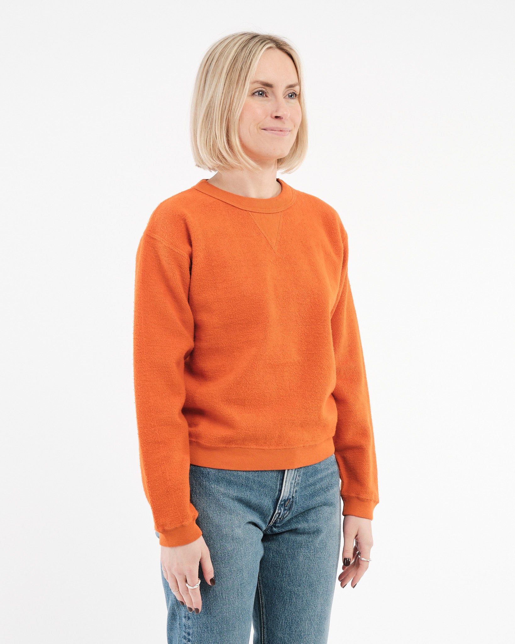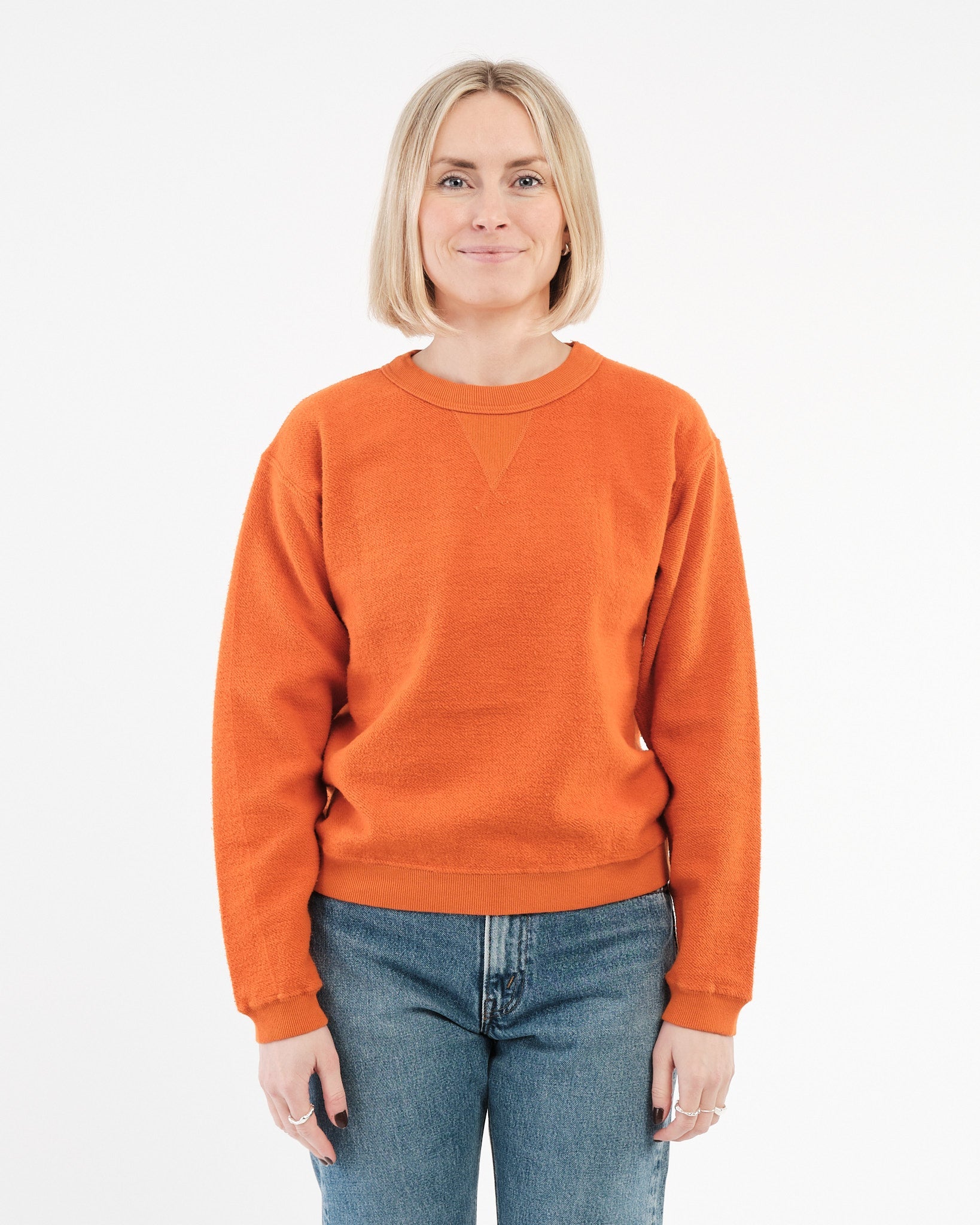 Felpa con Collo Rotondo Hina Reversed in Pile, Tramonto Hawaiano di Sunray Spirit. Le maglie Sunray hanno una vestibilità tradizionale ispirata alla sensazione degli anni '50. Rilassate, più ampie e leggermente corte. Il colletto, il design a costine e i tessuti sono anch'essi tradizionali. Il pile rovesciato testurizzato è il tocco finale di questo splendido collo rotondo. Realizzato in Giappone con un pile giapponese spazzolato da 450 g.