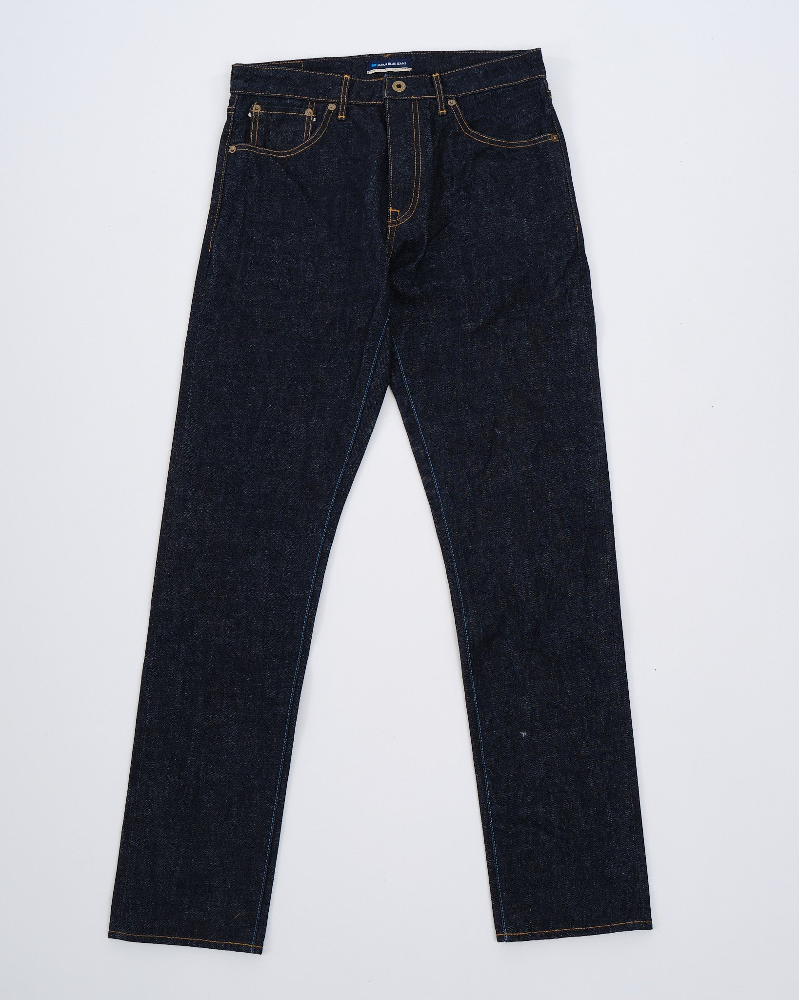 Presentiamo il Japan Blue J301 14.8oz Selvedge Denim Straight, un'opera d'arte nel regno dell'artigianato del denim dalla rinomata marca giapponese. Realizzati a mano con cura a Kojima, Okayama, Giappone, questi jeans incarnano qualità e una profonda apprezzamento per la cultura del denim. Costruiti con cotone premium da 14.8oz bilanciano durabilità e comfort rendendoli una scelta ideale per l'uso quotidiano. Con la loro vestibilità che presenta una vita media e una gamba affusolata, questi jeans esprimono sia un fascino contemporaneo che un'eleganza senza tempo. Un'aggiunta versatile a qualsiasi guardaroba. La toppa in pelle di vacchetta naturale sul denim aggiunge un tocco di fascino garantendo allo stesso tempo l'assenza di restringimento grazie al tessuto prelavato. Progettati per appassionati e individui attenti alla moda, questi jeans epitomizzano l'impegno costante di Japan Blues, per raggiungere la grandezza.
