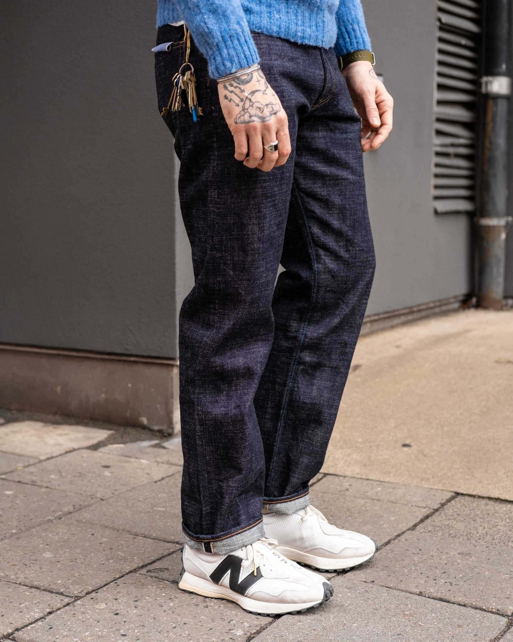 Classic 16.5 Oz da. Japan Blue Jeans. Jeans dritti classici con una forma ampia dalle cosce alle ginocchia. Con una silhouette relativamente ampia e una figura a vita alta. Made in Japan.