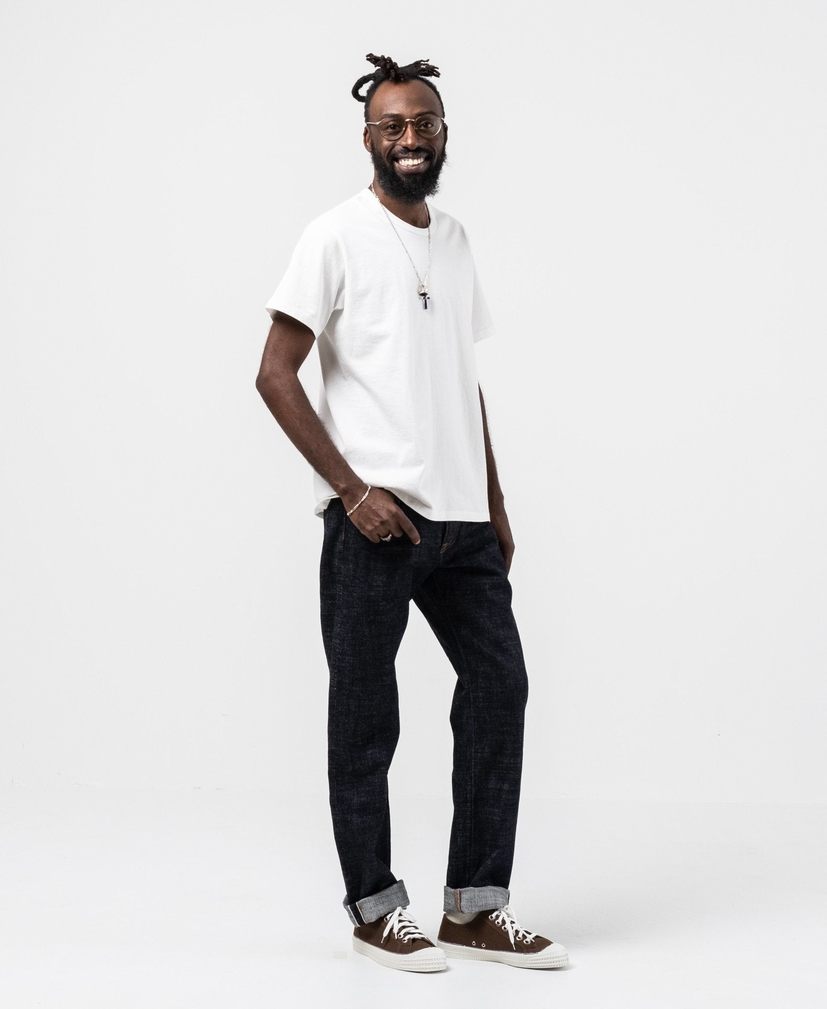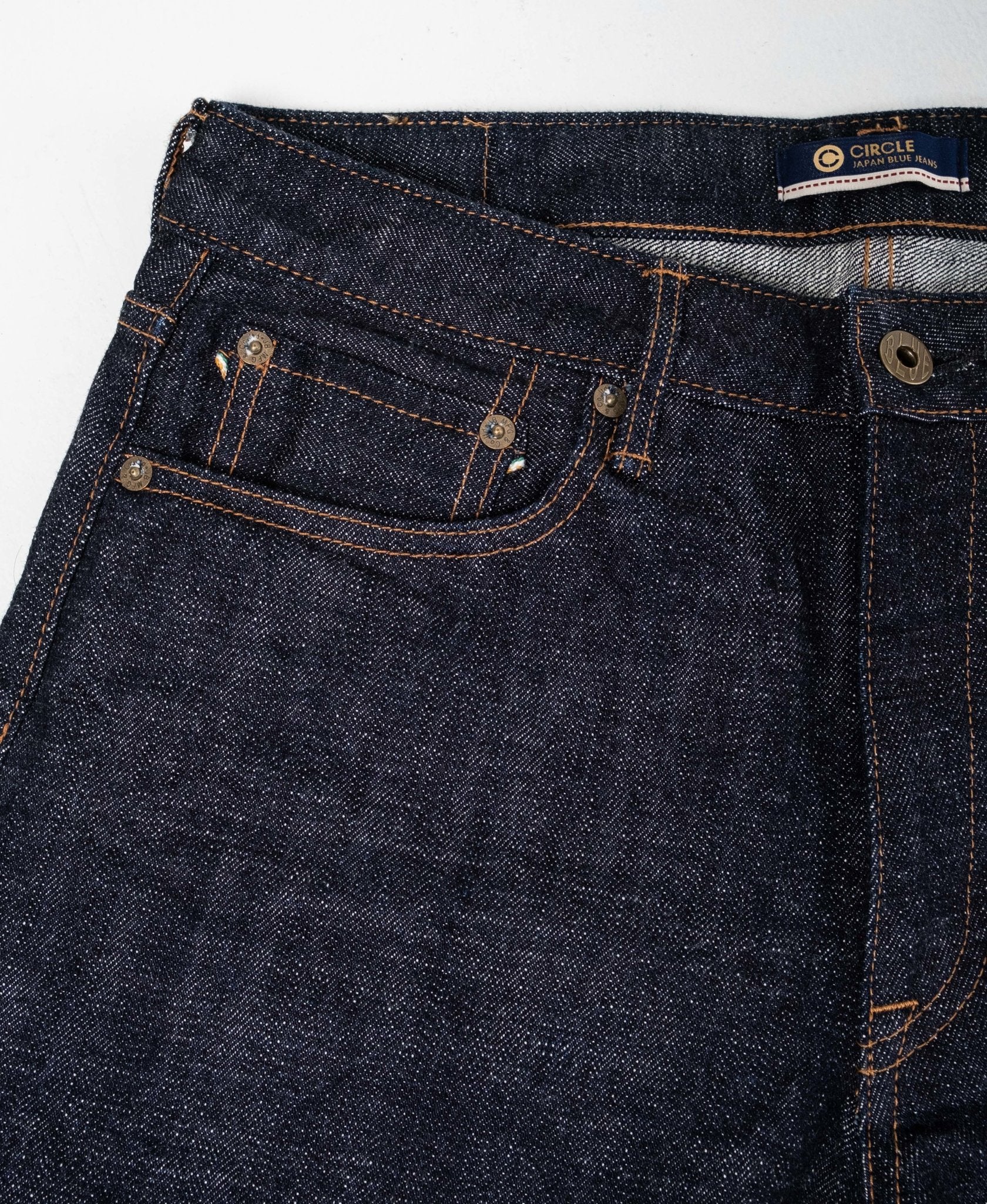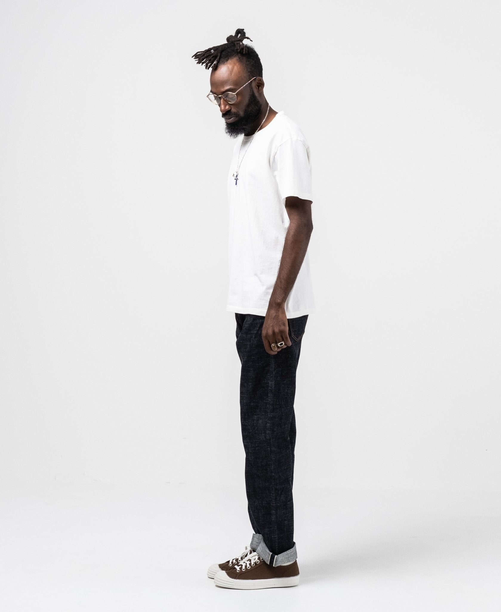 Il denim selvage vintage di pesante oncia è fatto di cotone naturale dalla Costa d'Avorio. Cucendolo con un tocco delicato in macchina, il prodotto finito risulta come un denim fatto a mano. Il materiale è un po' ruvido all'inizio, ma diventerà gradualmente più morbido indossandolo per un po'.