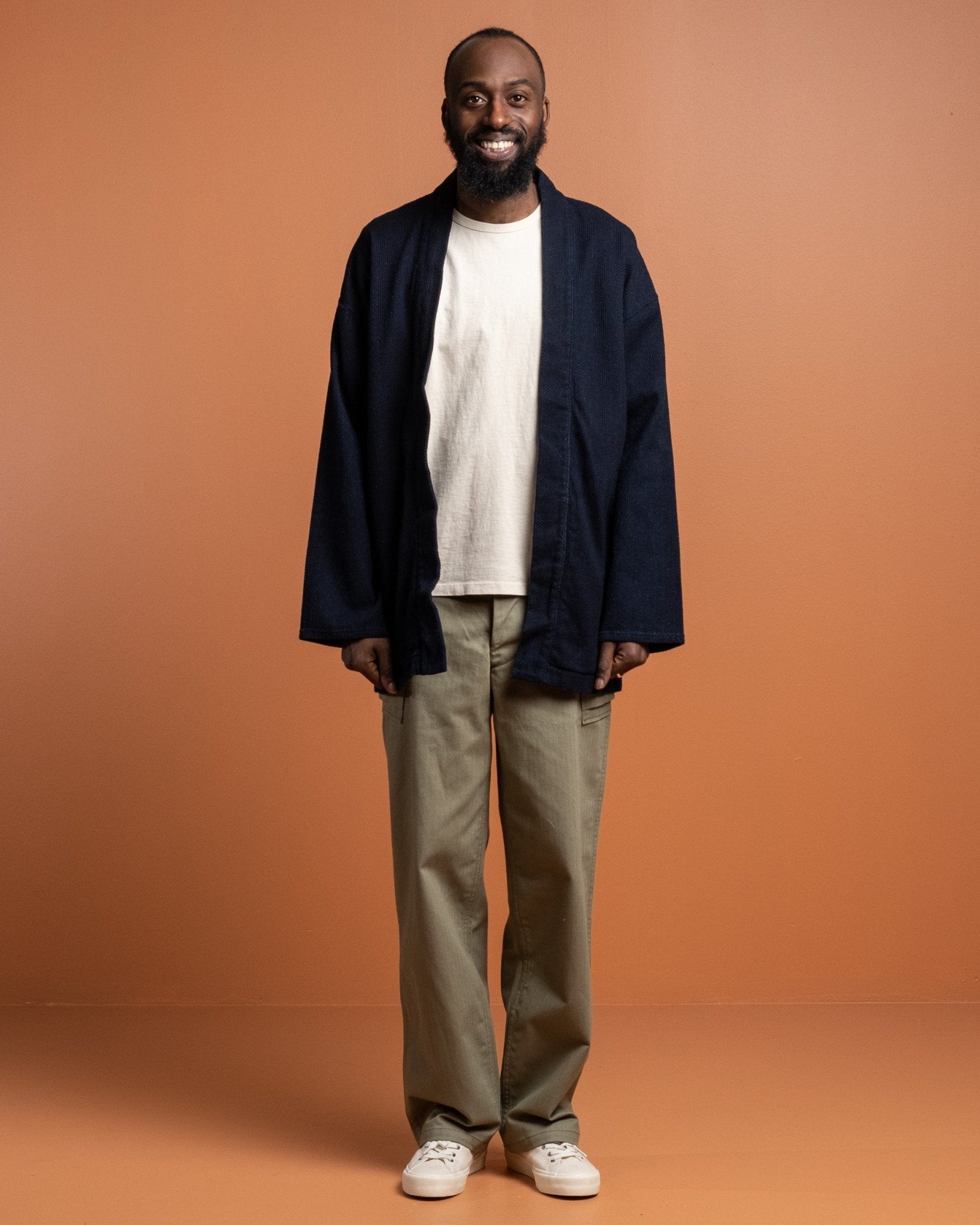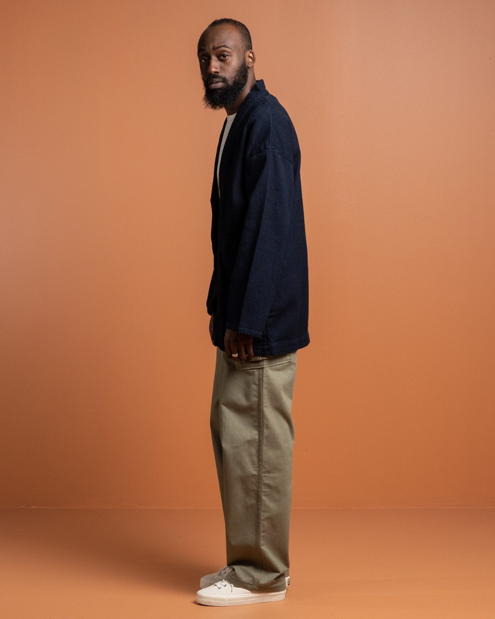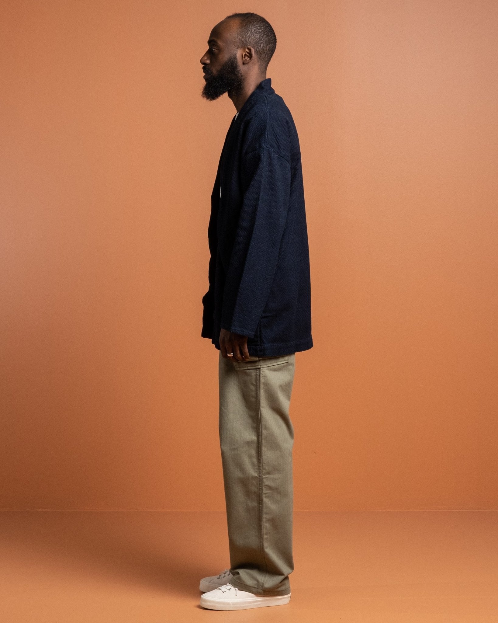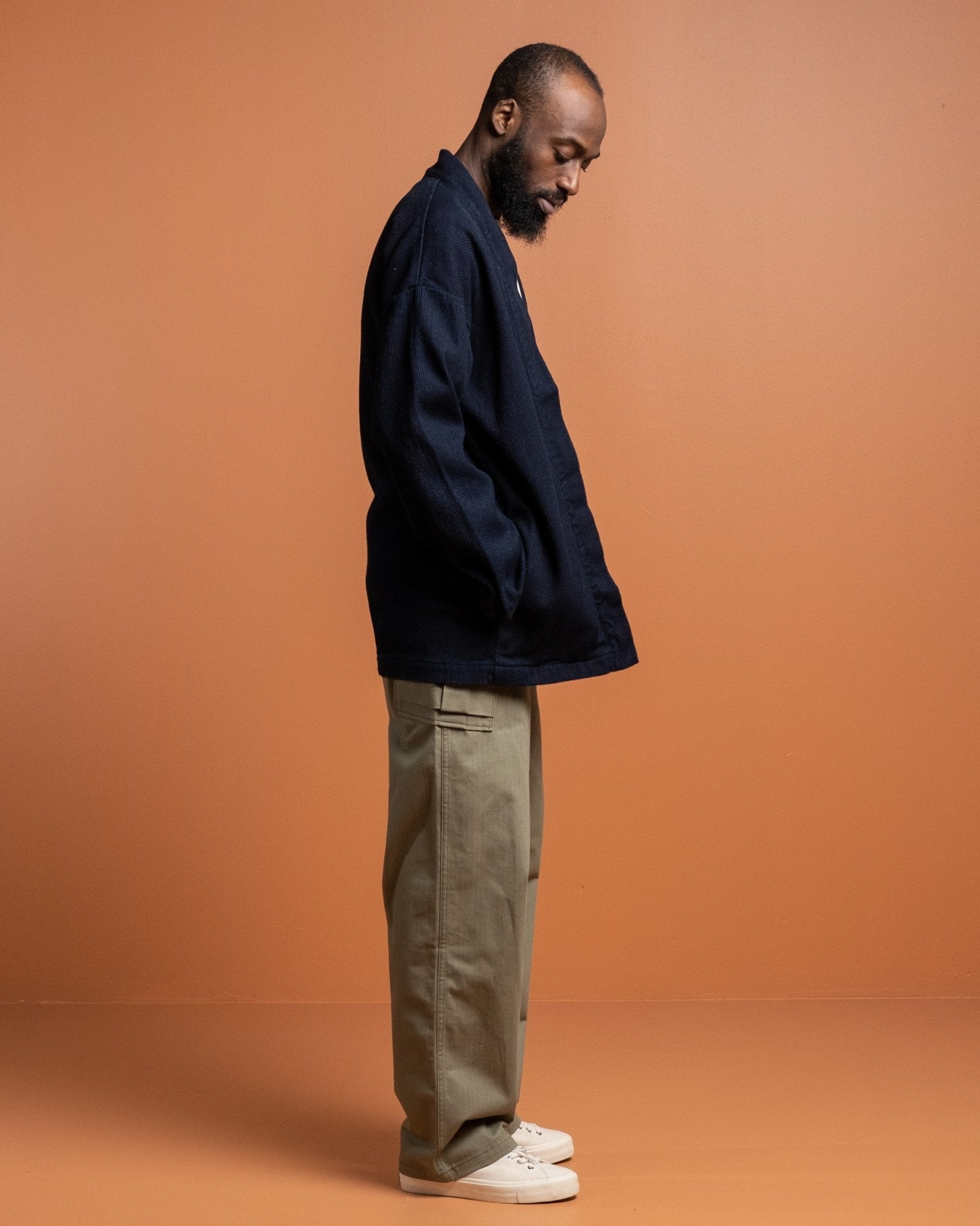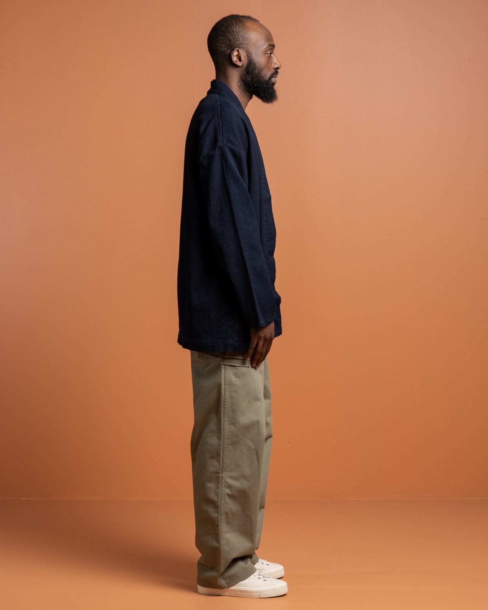 J692951 Sashiko Haori Indaco da Japan Blue Jeans. Giacca Haori dal taglio rilassato. Realizzata in tessuto giapponese Sashiko da 11 oz in 100% cotone. Due tasche laterali nascoste e due tasche interne. L'Haori è una giacca tradizionale giapponese indossata sopra un Kimono. Taglia unica (f). Prodotto in Giappone.