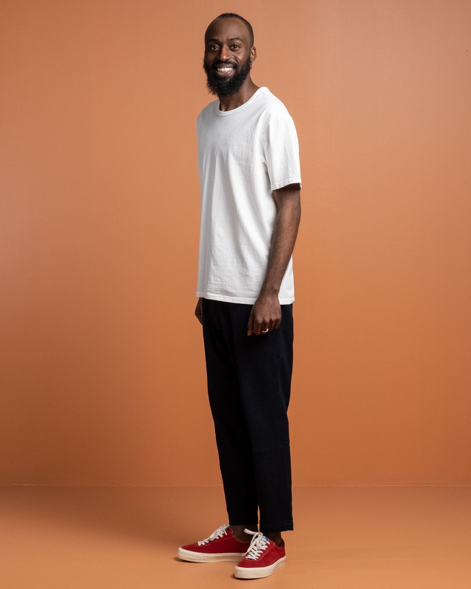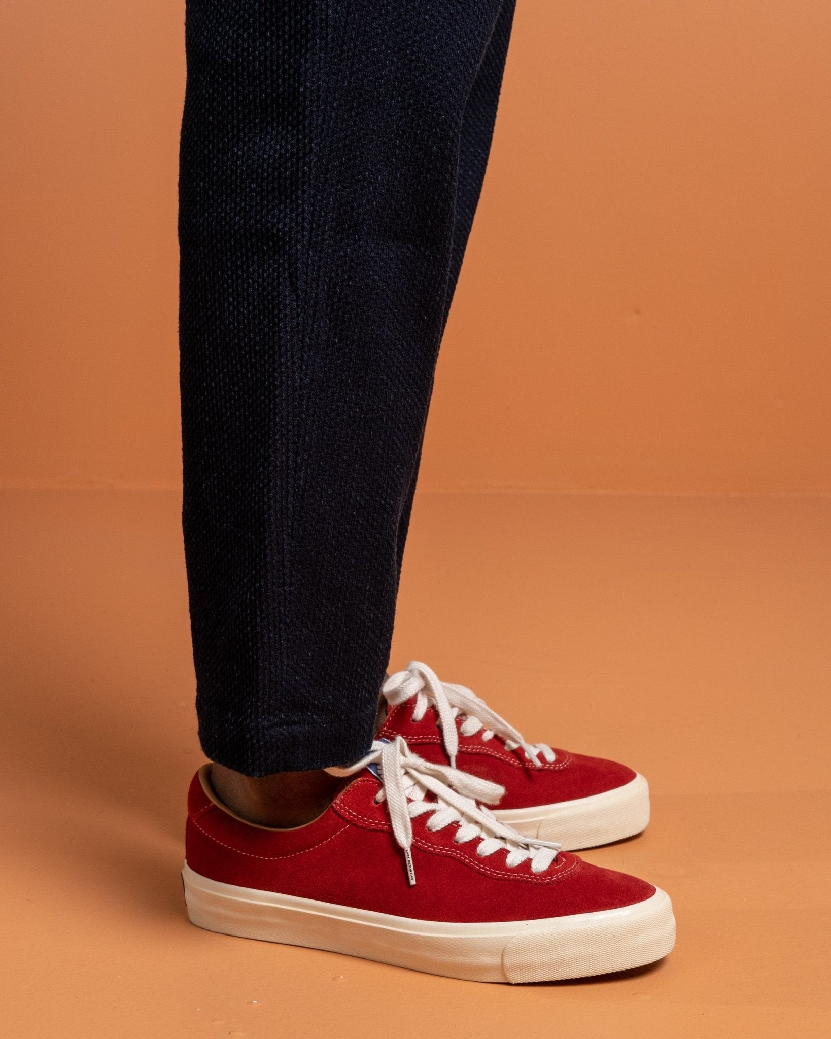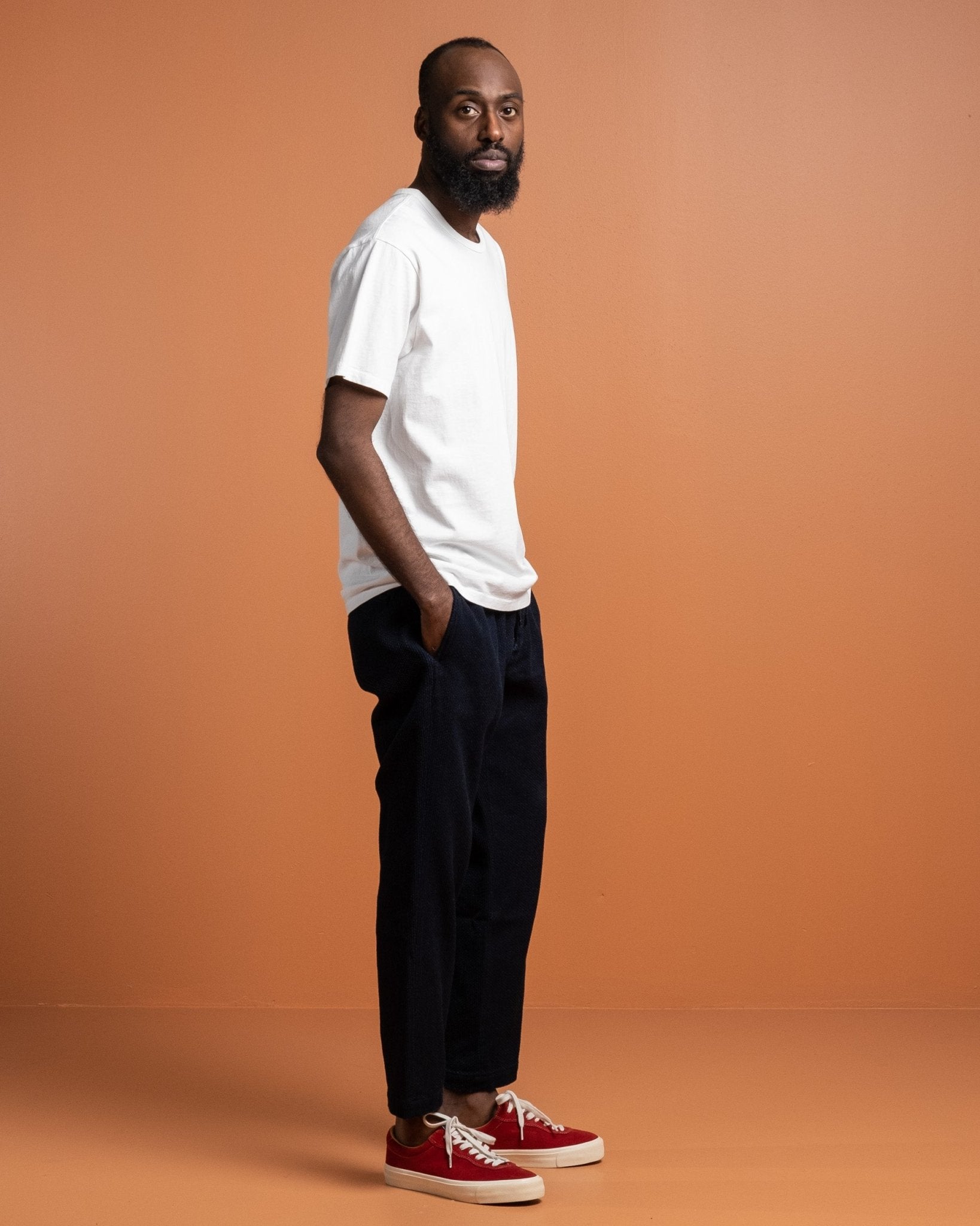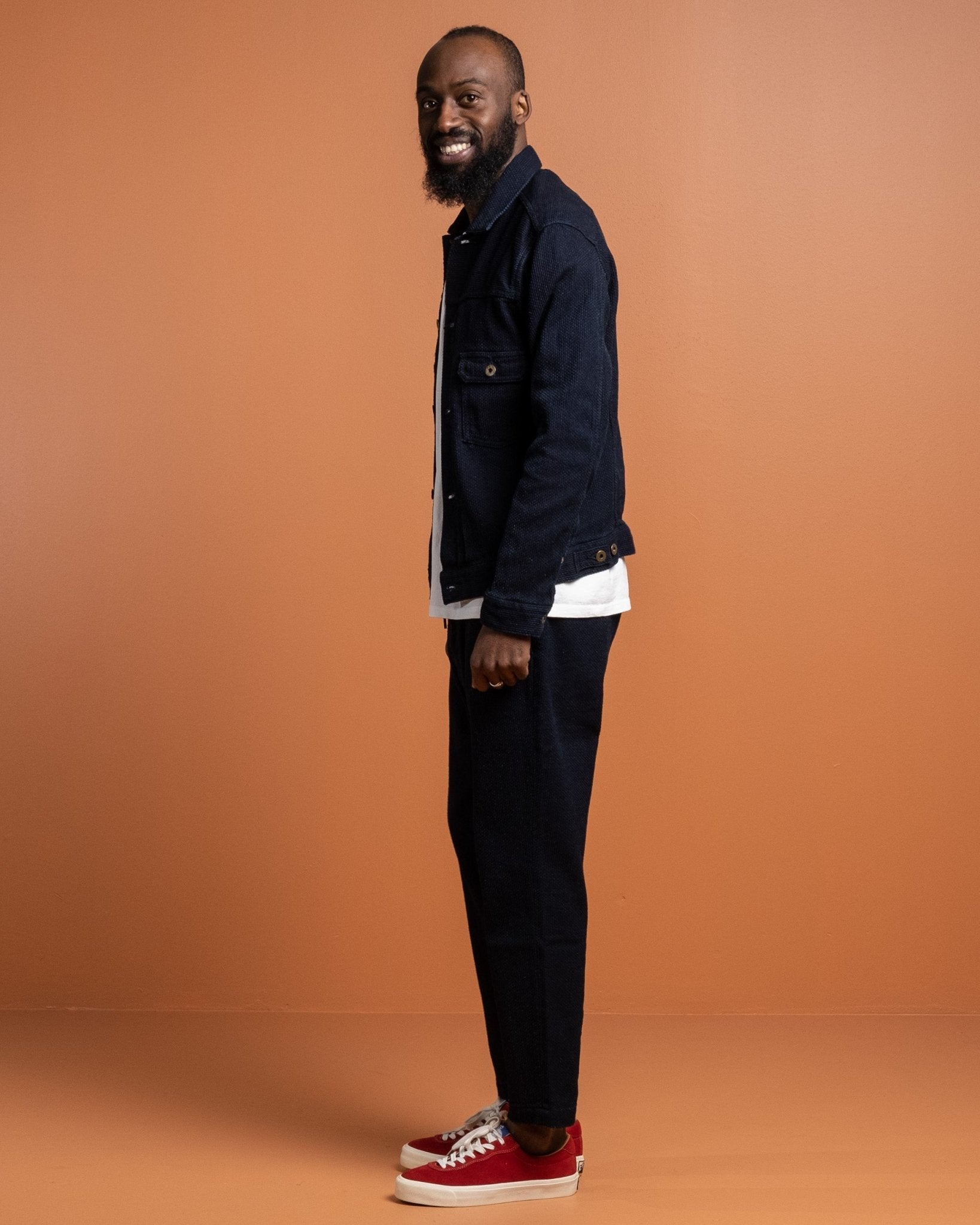 JBPT10043A Pantaloni Tapered Facili Sashiko di Japan Blue Jeans. Pantaloni dal taglio rilassato realizzati in tessuto di cotone sashiko con chiusura a zip. Due tasche laterali, due tasche posteriori e vita regolabile con cordoncino, oltre a passanti per cintura aggiunti. Tessuto fantastico che diventerà ancora migliore una volta che inizia a sbiadire con l'uso. Prodotto in Giappone.