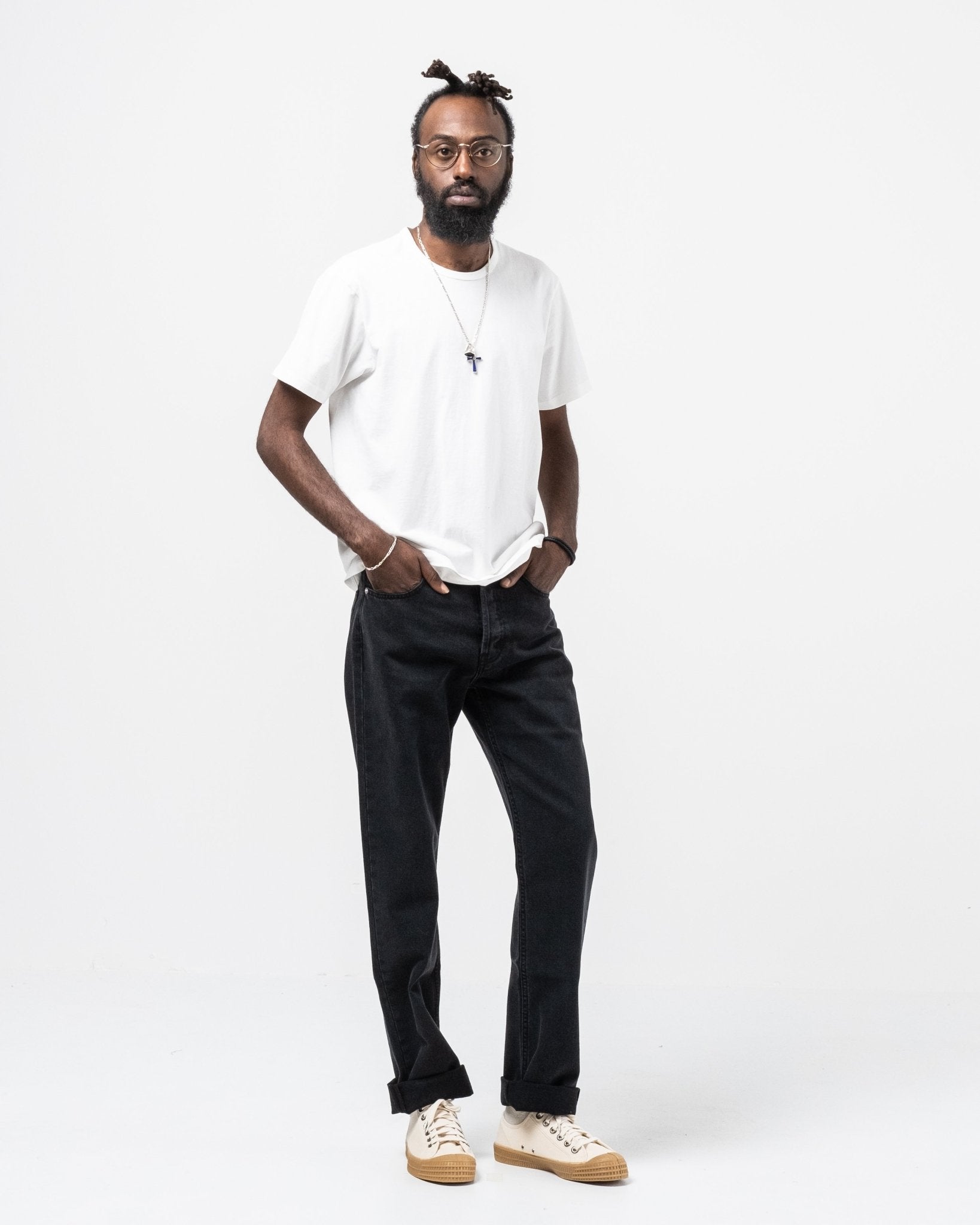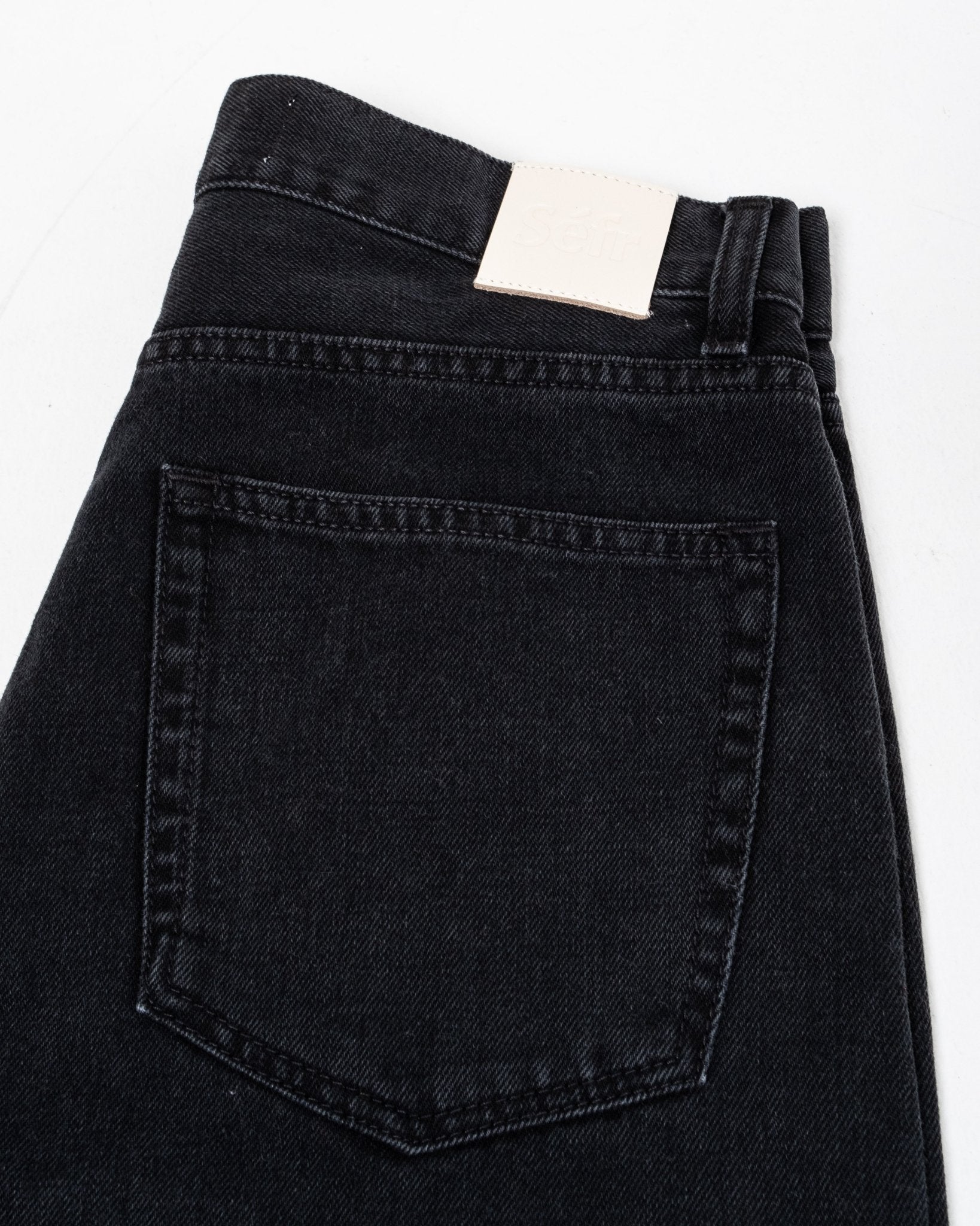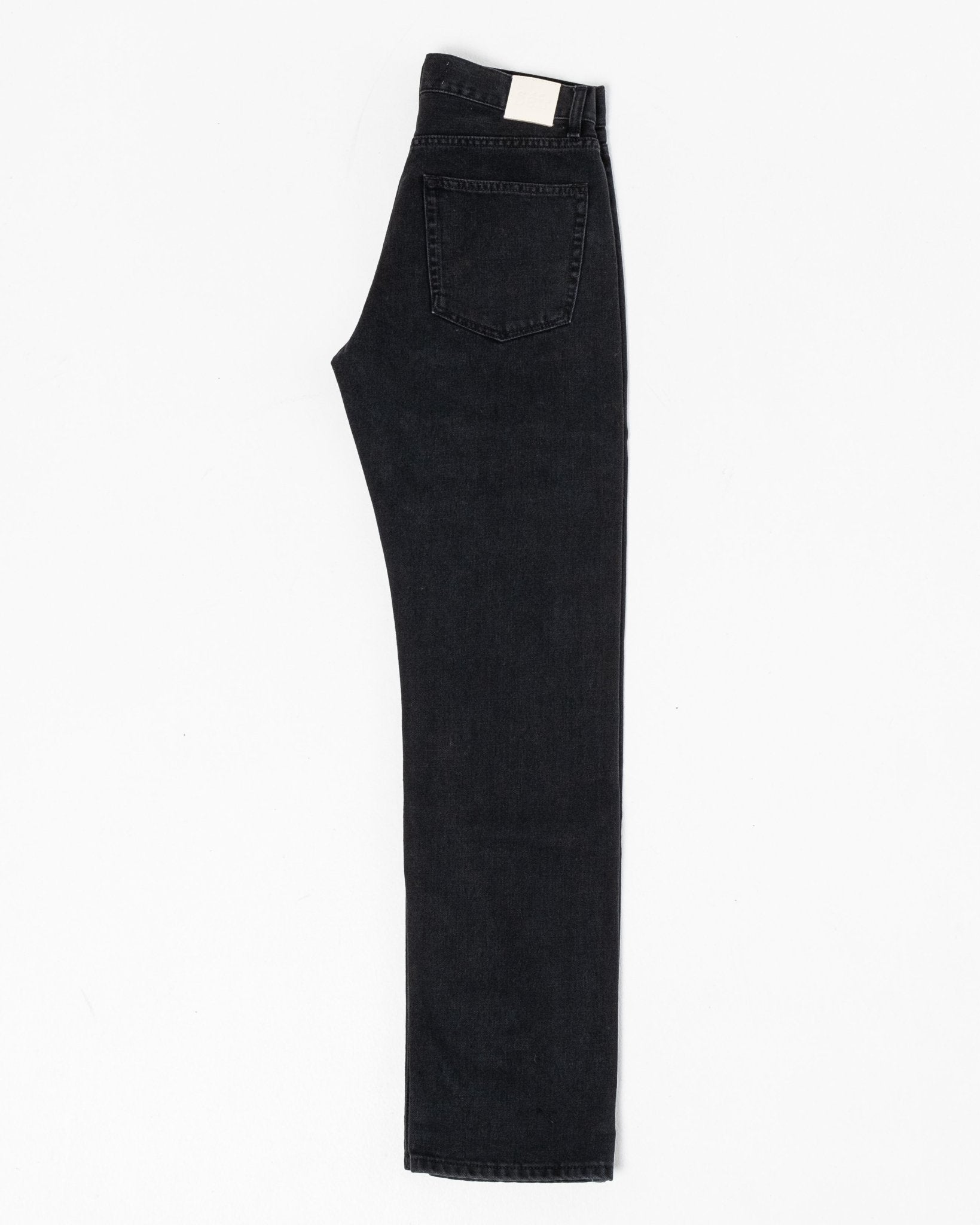 Jeans a taglio dritto in nero risciacquato di Séfr. Classico jeans a cinque tasche prodotto in cotone italiano da 13 oz. Chiusura con bottone frontale, taglio dritto e risciacquato una volta per una vestibilità morbida e confortevole fin dall'inizio. Prodotto in Lettonia.