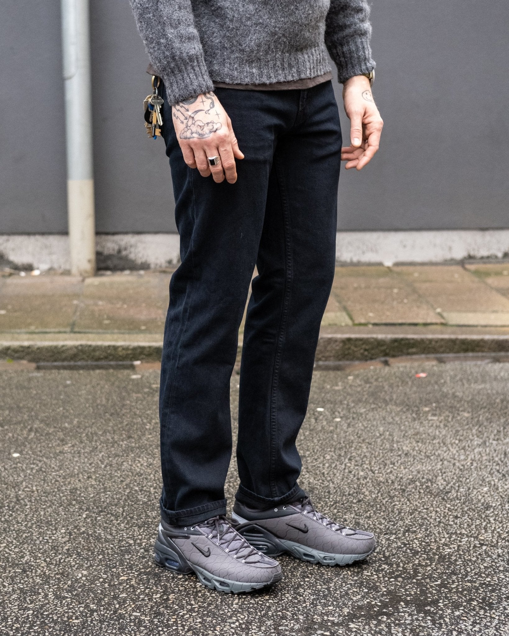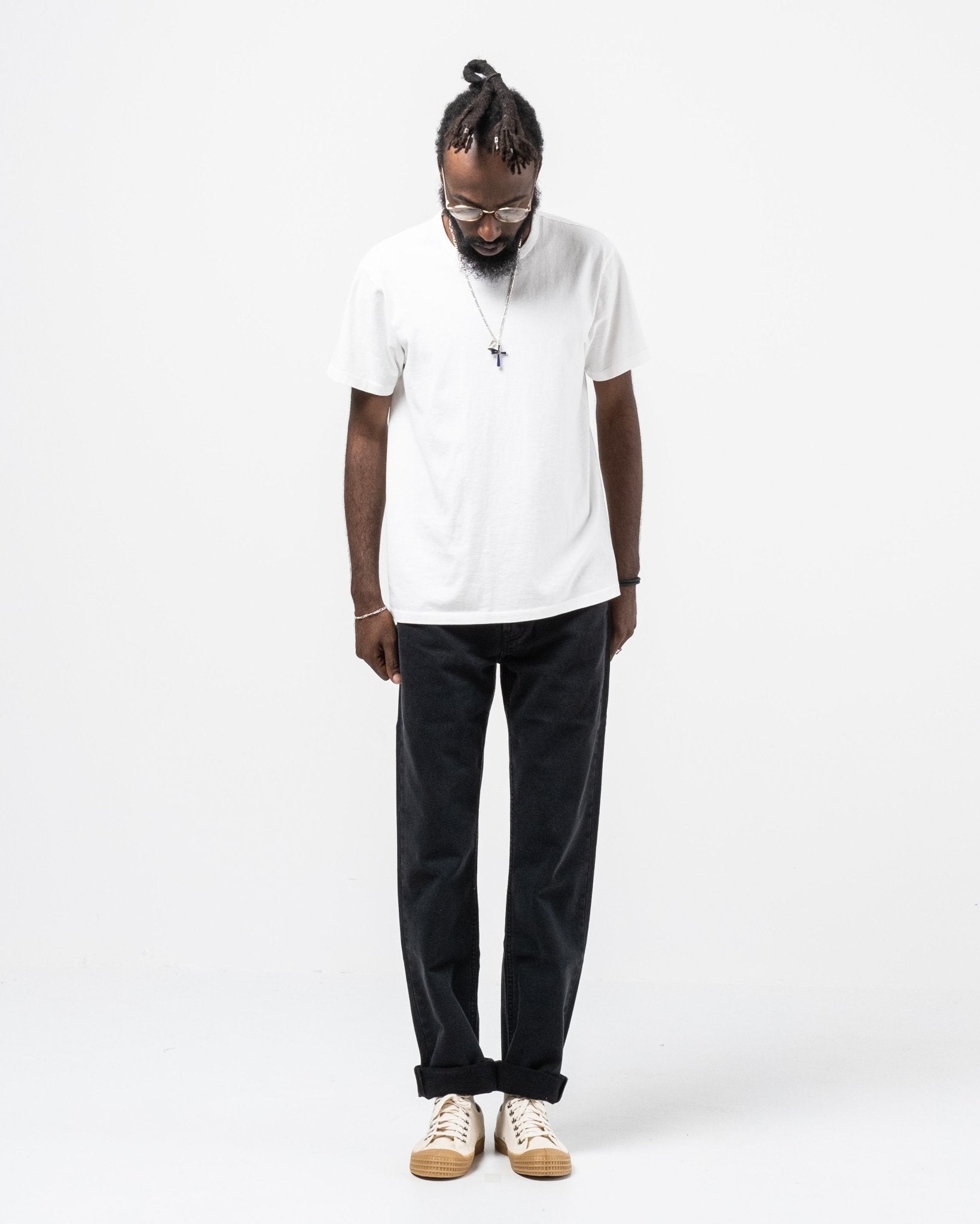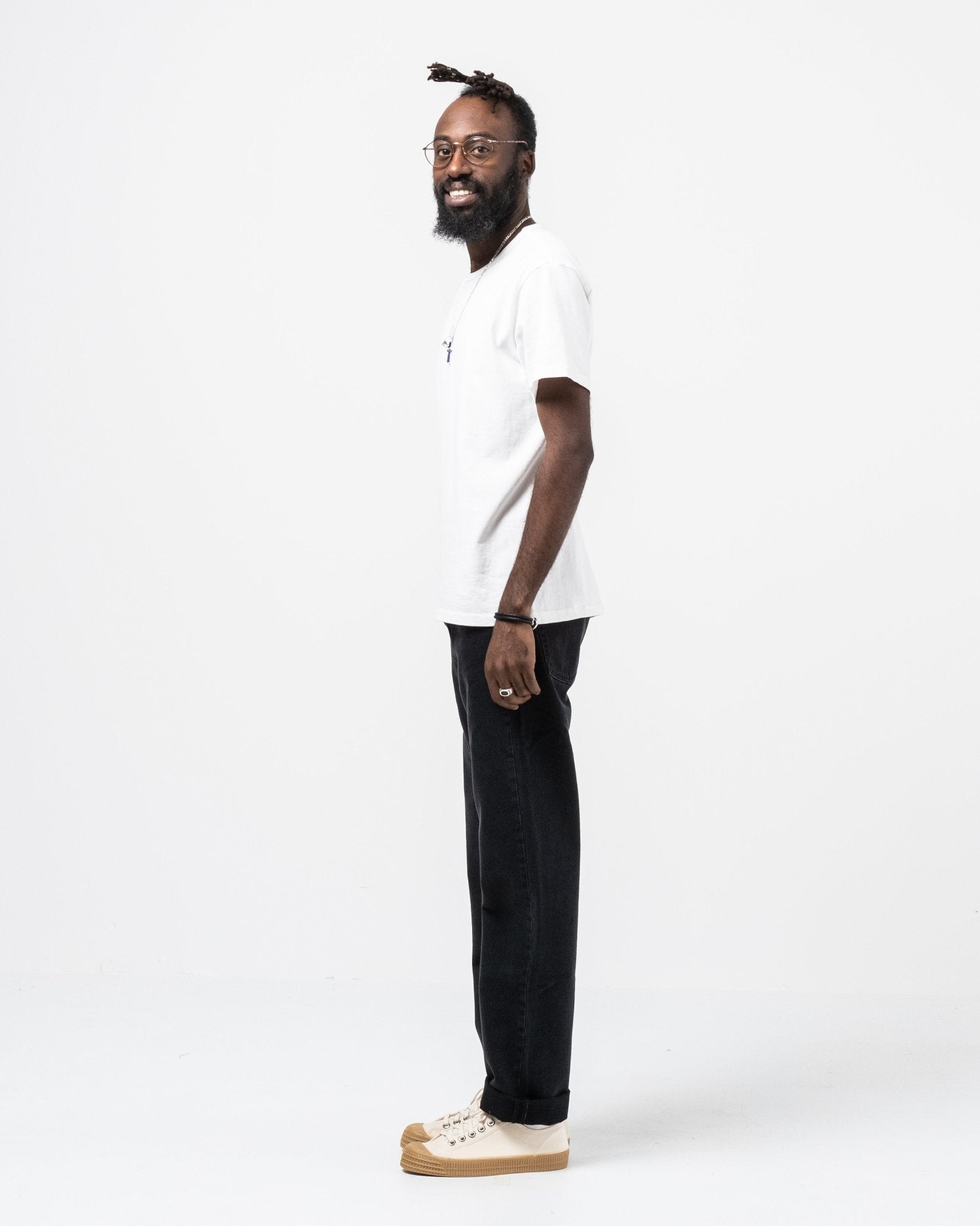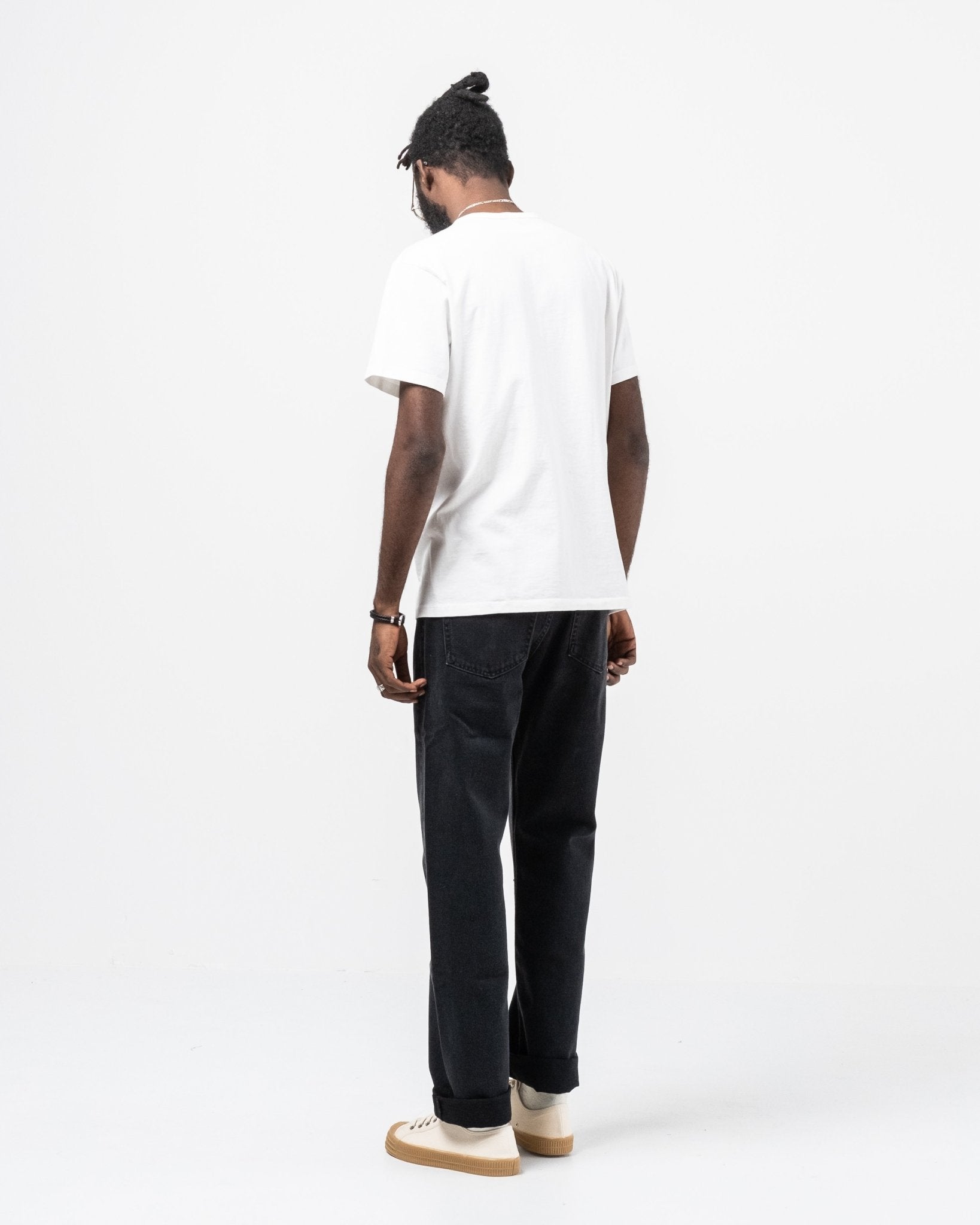 Jeans a taglio dritto in nero risciacquato di Séfr. Classico jeans a cinque tasche prodotto in cotone italiano da 13 oz. Chiusura con bottone frontale, taglio dritto e risciacquato una volta per una vestibilità morbida e confortevole fin dall'inizio. Prodotto in Lettonia.