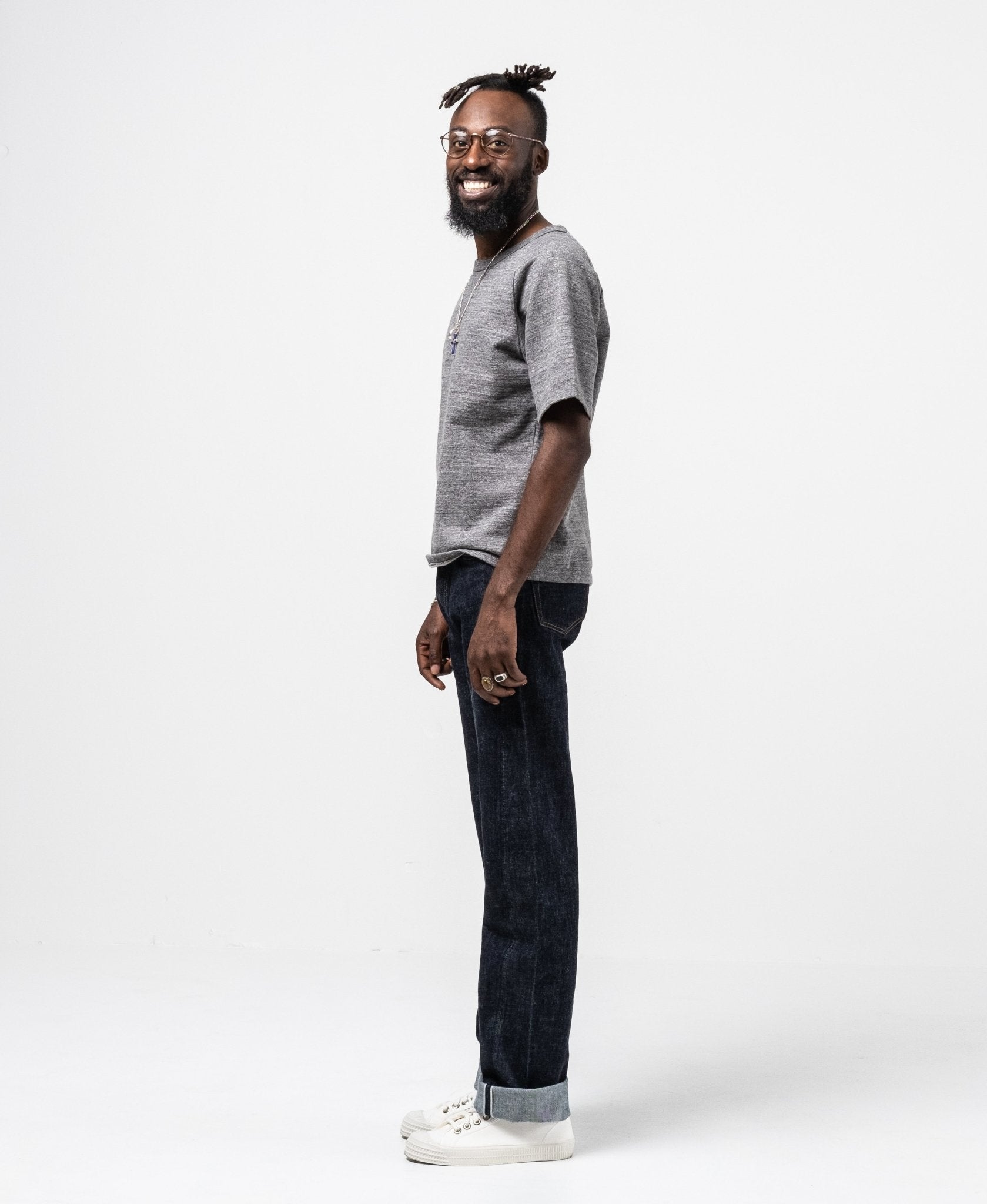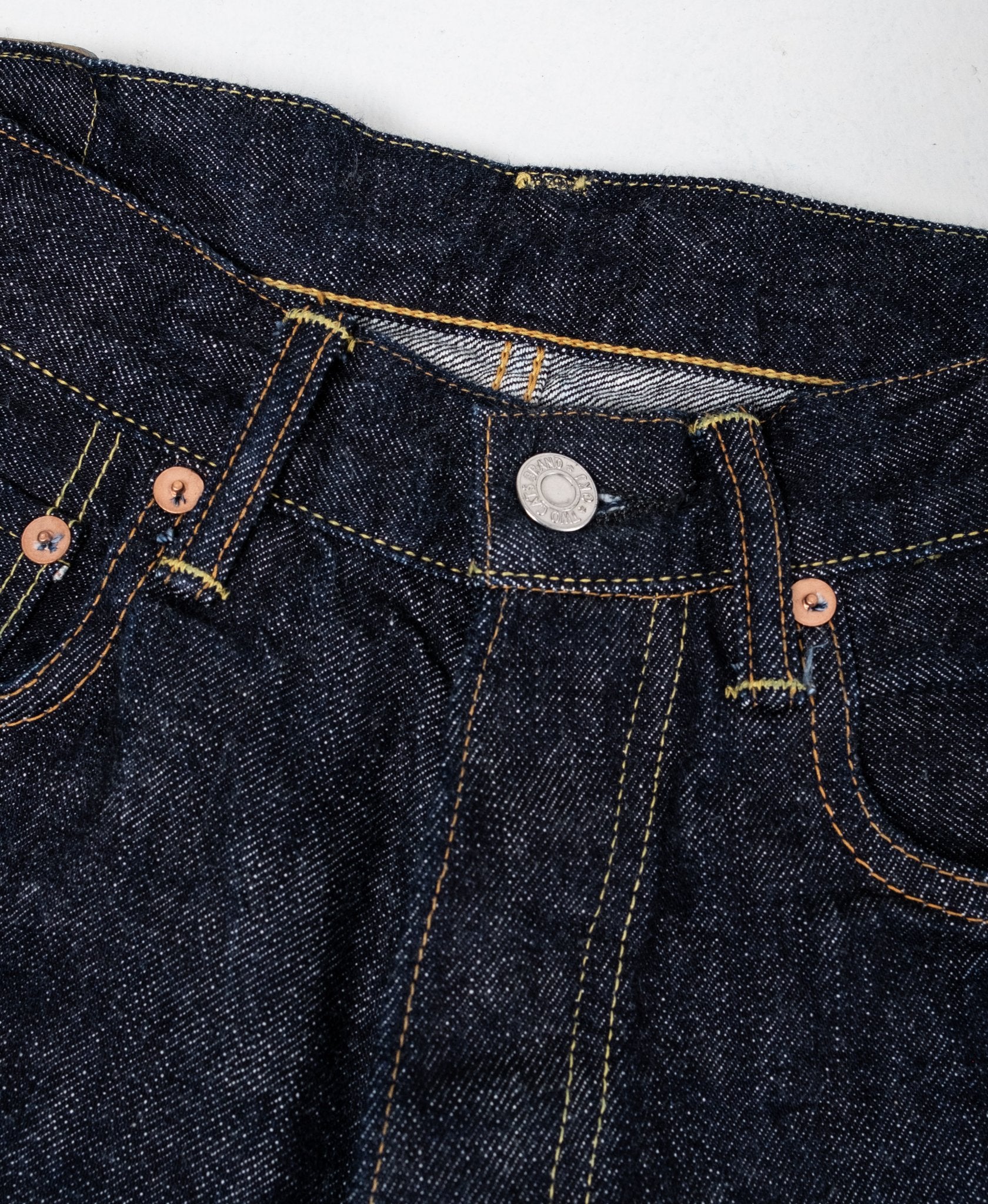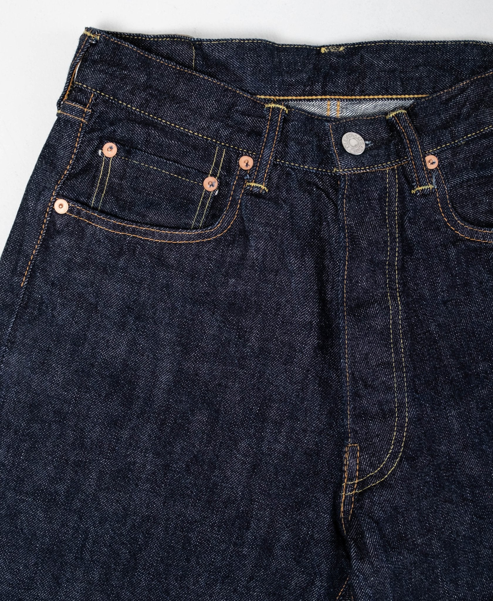 Jeans anni '50 Risciacquati da TCB. Questo modello si basa su un paio di Levi's 501 degli anni '50 dalla collezione vintage personale del proprietario. TCB ha replicato il colore e tutto il resto, filo per filo. Tagliati da un denim selvaggio risciacquato da 13,5 oz fatto di cotone dello Zimbabwe. Il denim è tessuto su macchine d'epoca che conferiscono al denim una struttura molto irregolare e tonnellate di carattere. La vestibilità è rilassata, dritta e con un cavallo più alto. Una vestibilità rilassata fantastica. Prodotto in Giappone.