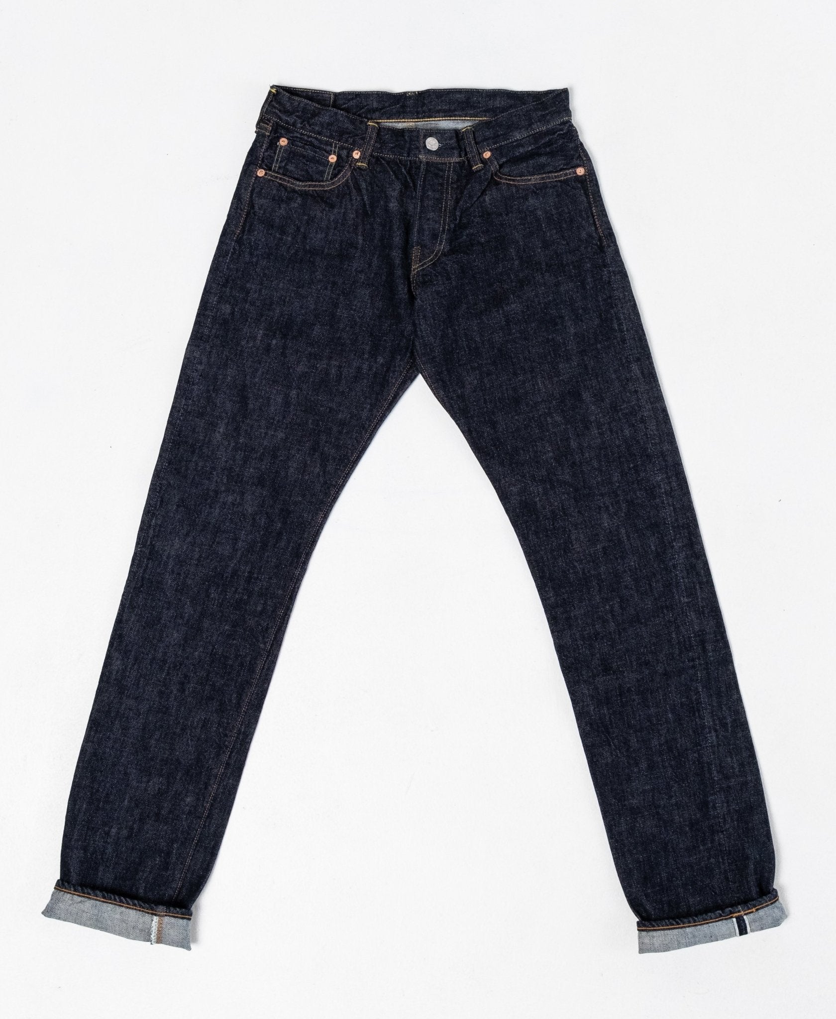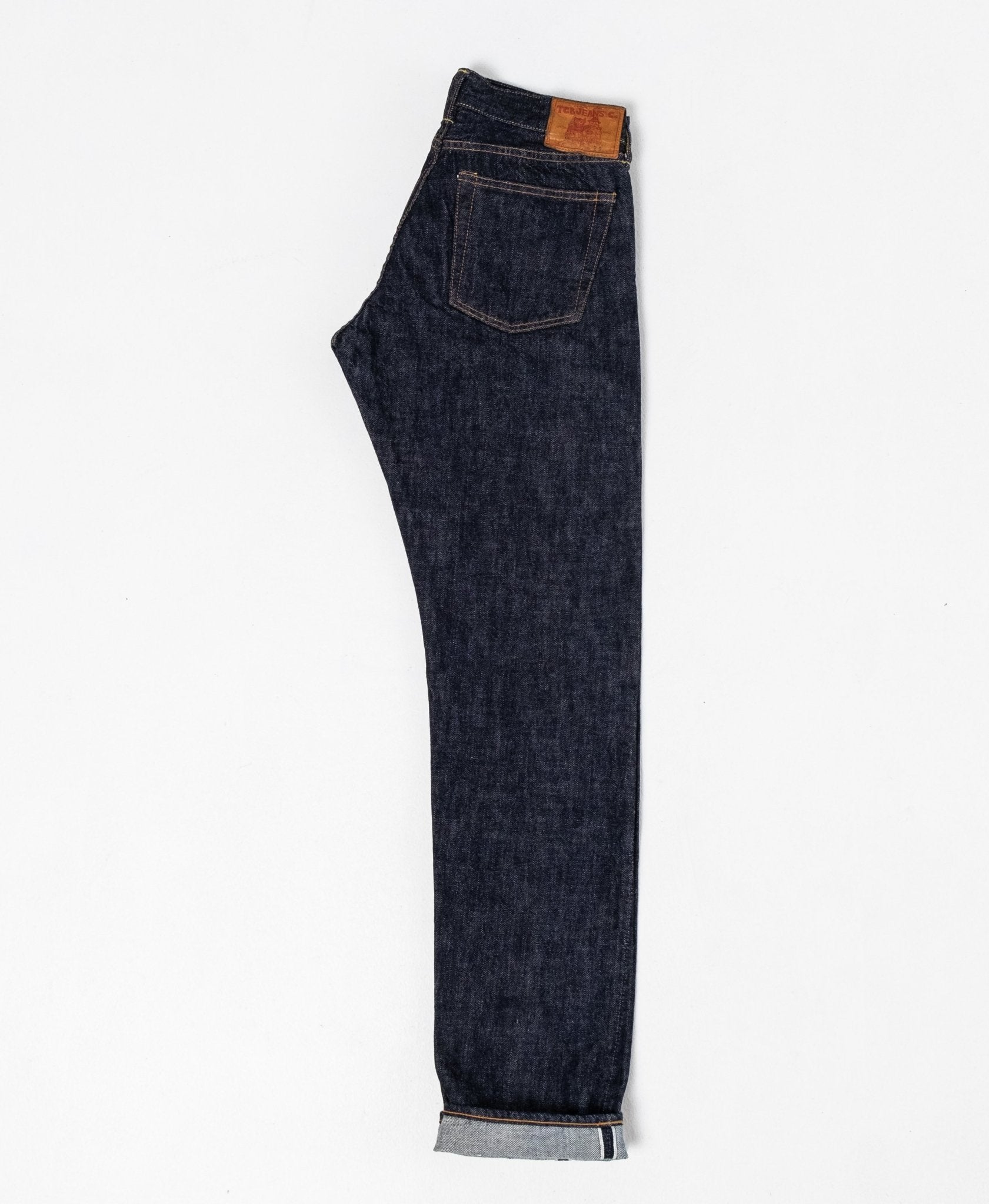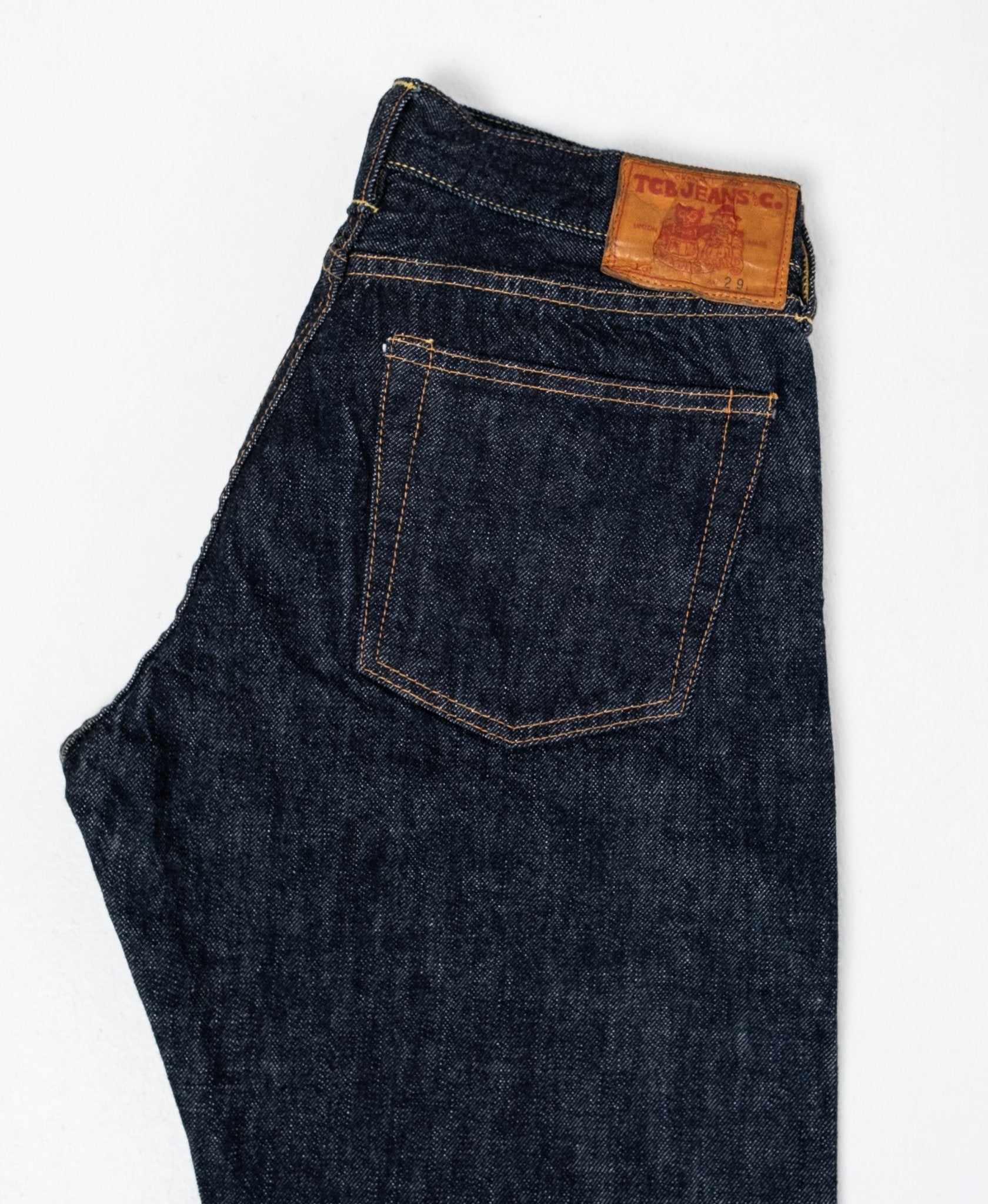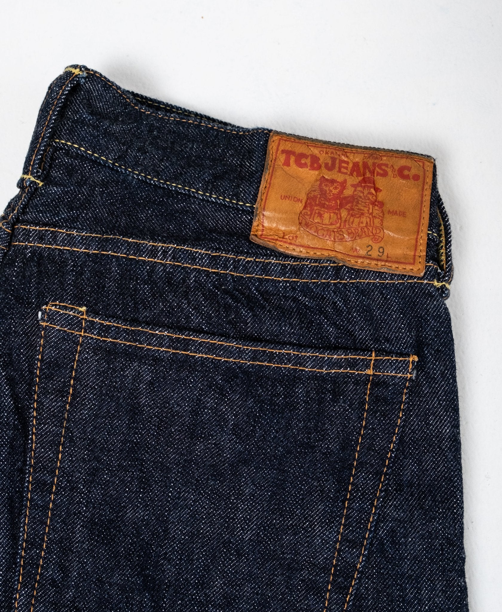 Jeans Slim anni '50 Indigo Rinsed di TCB. Realizzati in fantastico denim selvaggio da 13,5 oz con cotone dello Zimbabwe. Il denim è stato risciacquato e presenta una bellissima texture irregolare grazie allo stile vecchia scuola delle macchine da tessitura. La vestibilità è stretta con un leggero restringimento dal ginocchio in giù e vita bassa. Prodotto in Giappone.