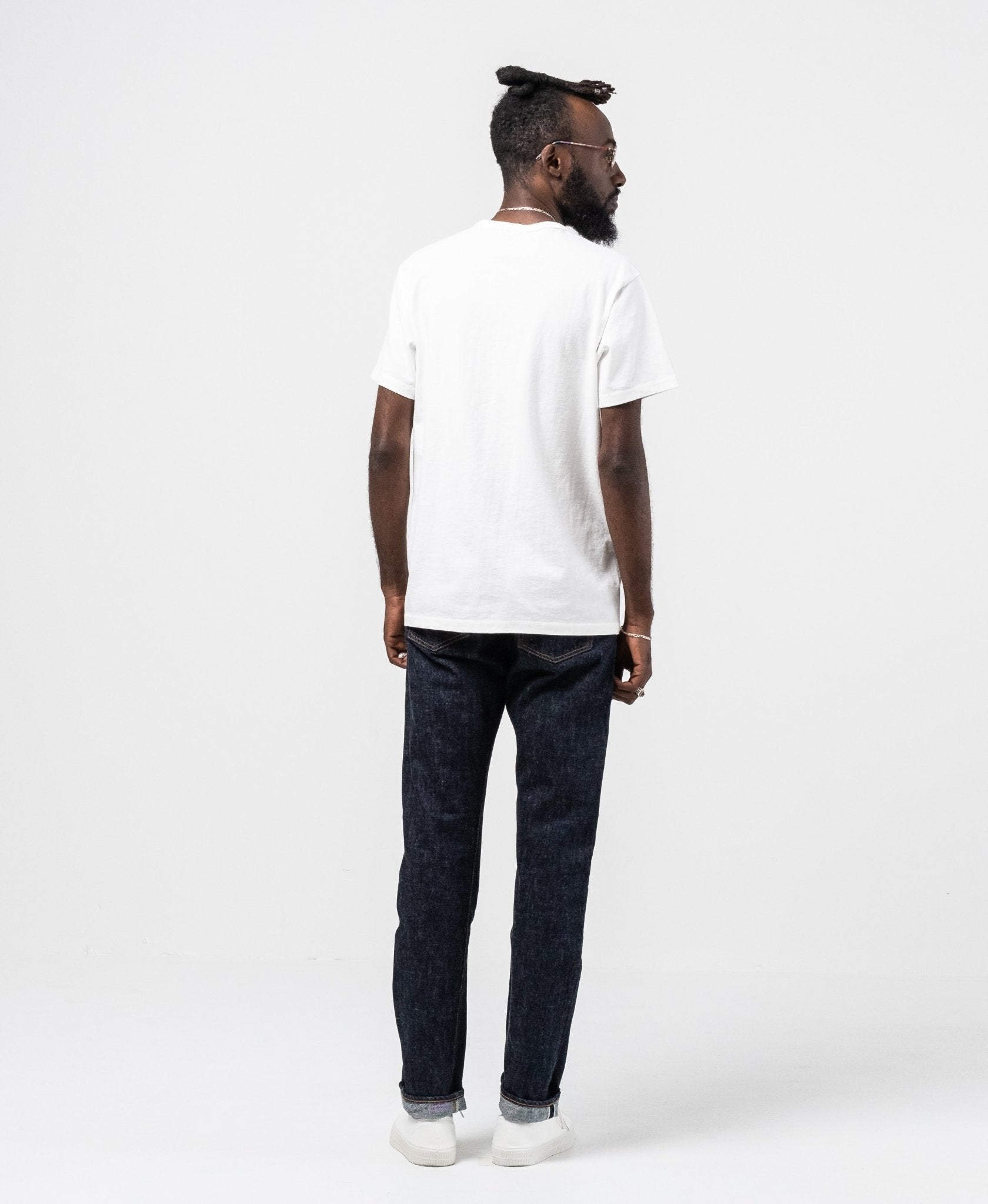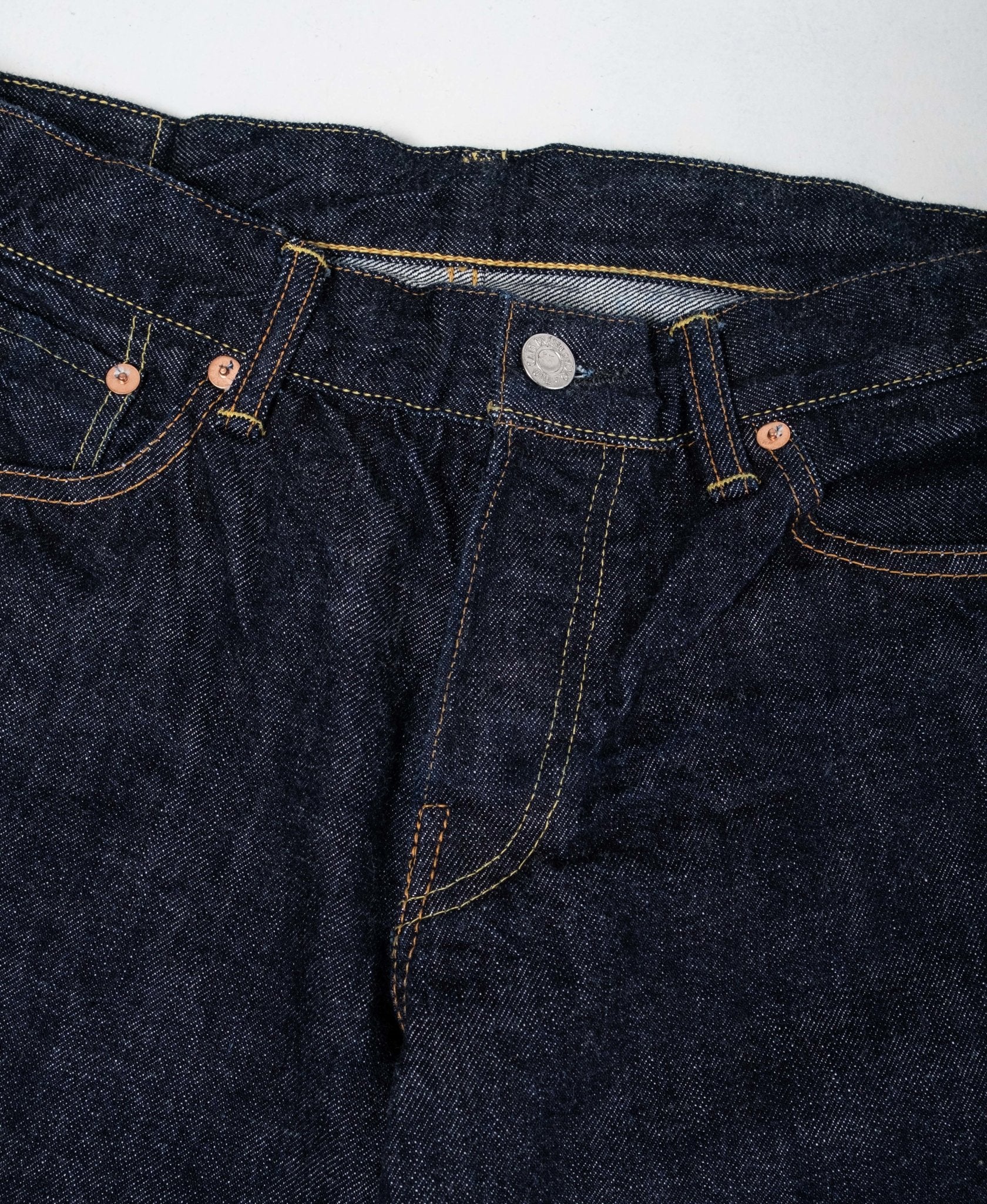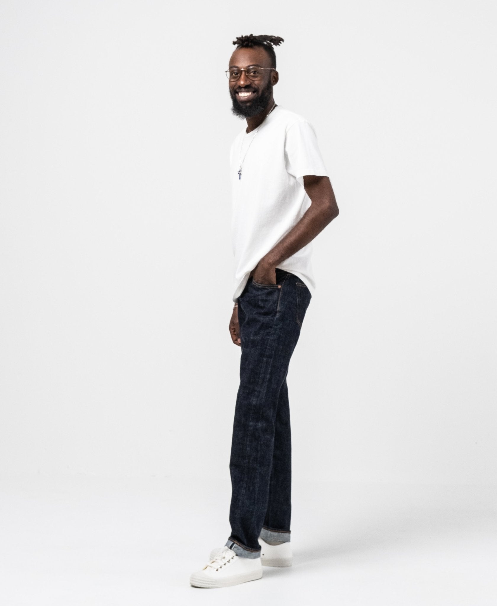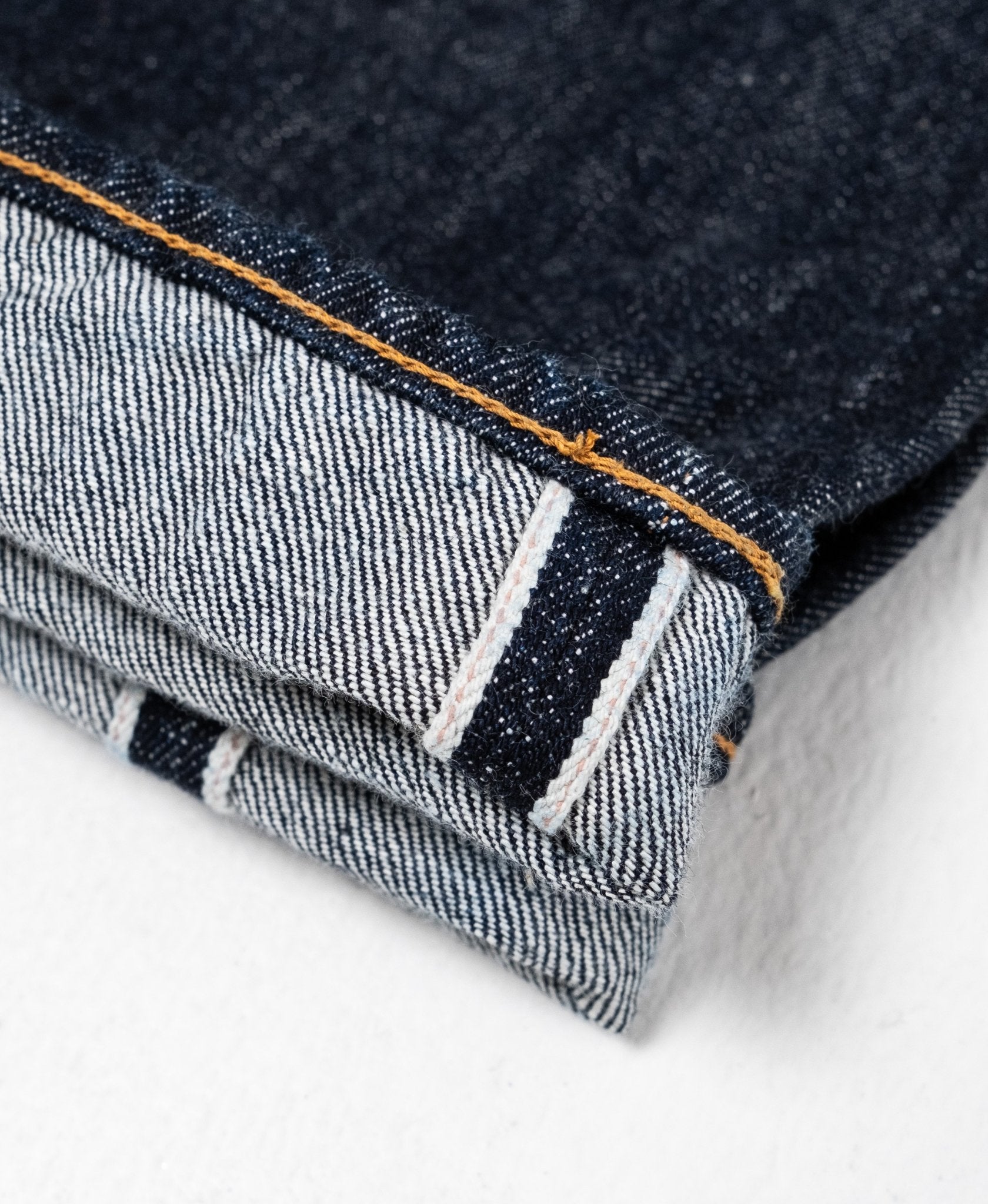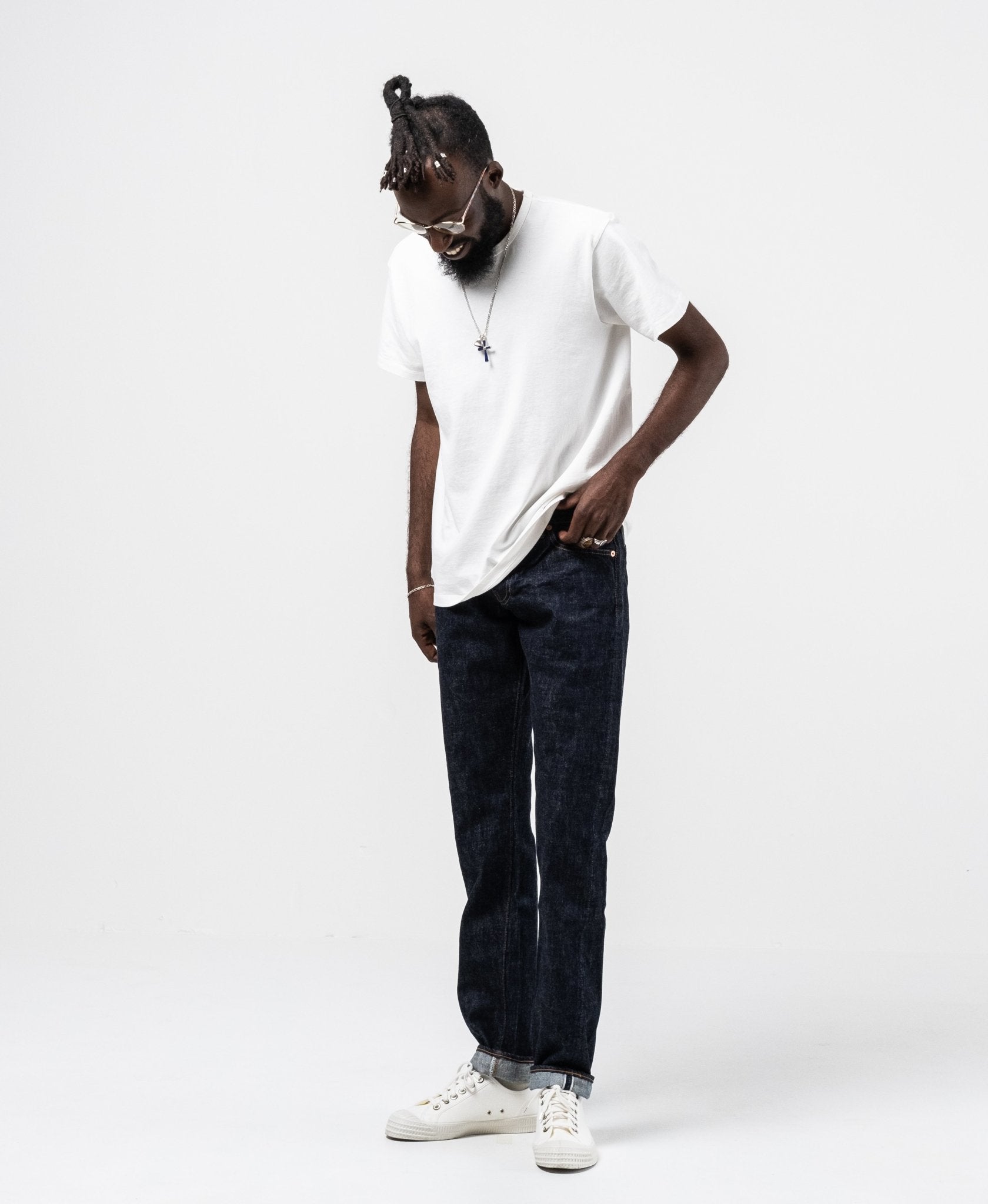 Jeans Slim anni '50 Indigo Rinsed di TCB. Realizzati in fantastico denim selvaggio da 13,5 oz con cotone dello Zimbabwe. Il denim è stato risciacquato e presenta una bellissima texture irregolare grazie allo stile vecchia scuola delle macchine da tessitura. La vestibilità è stretta con un leggero restringimento dal ginocchio in giù e vita bassa. Prodotto in Giappone.