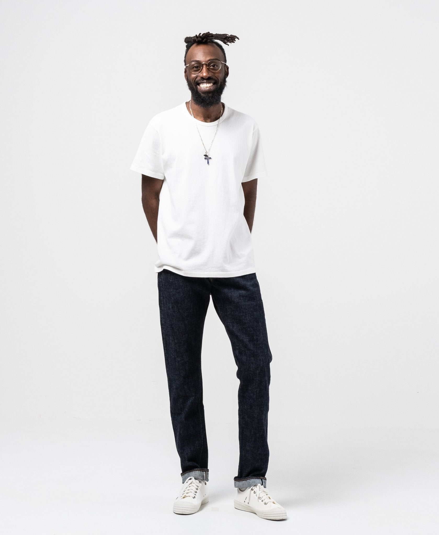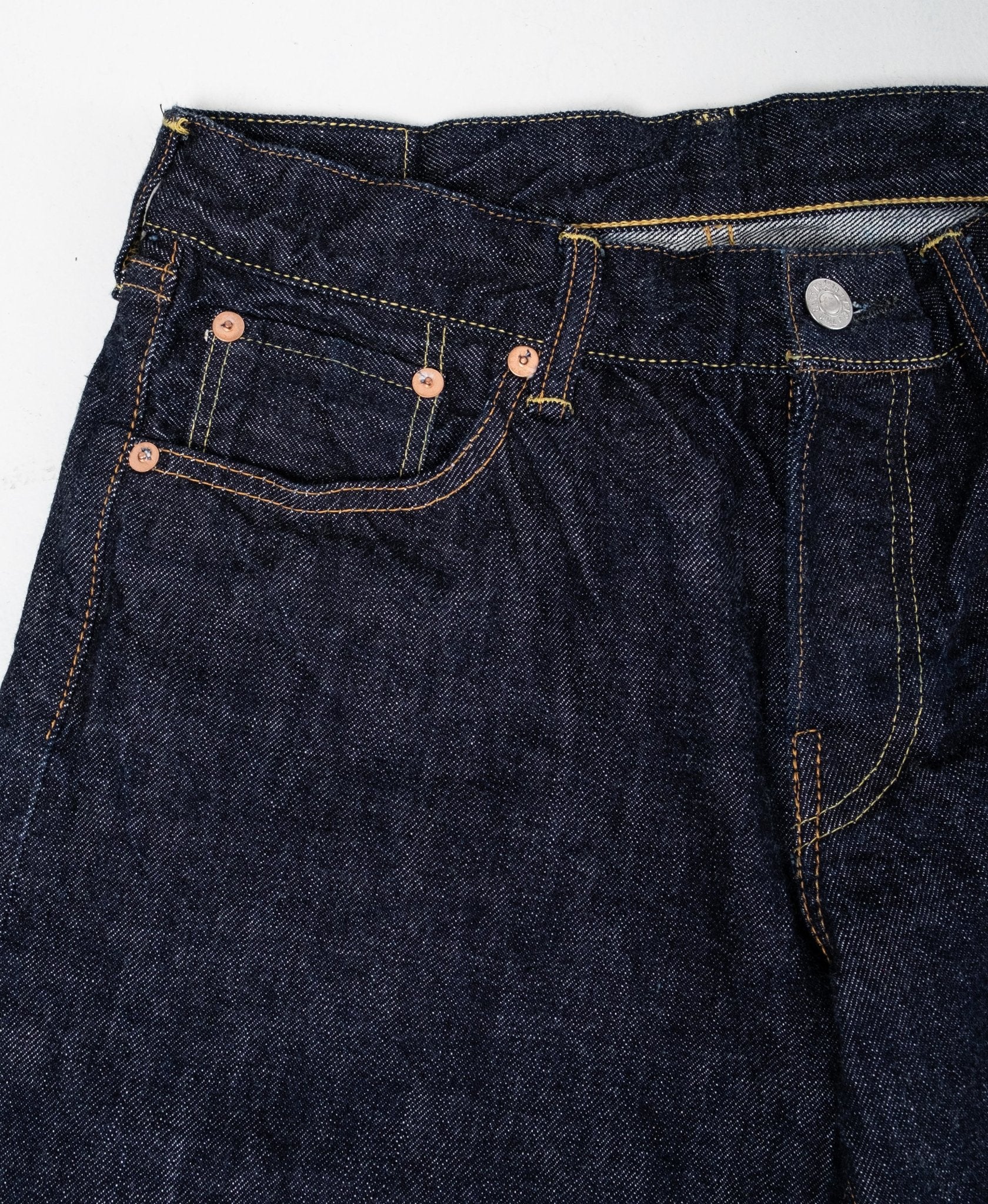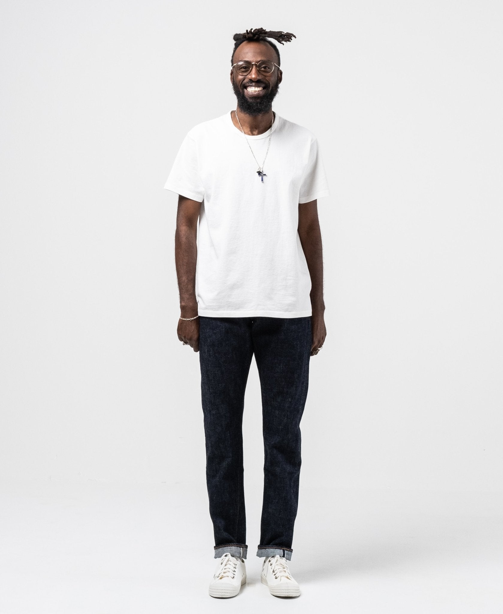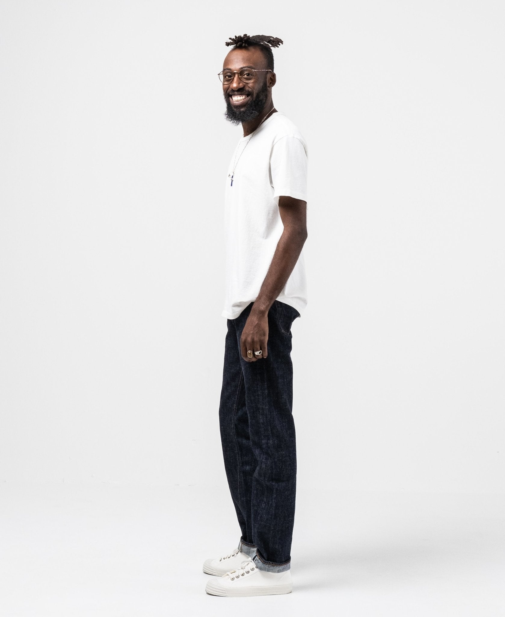 Jeans Slim anni '50 Indigo Rinsed di TCB. Realizzati in fantastico denim selvaggio da 13,5 oz con cotone dello Zimbabwe. Il denim è stato risciacquato e presenta una bellissima texture irregolare grazie allo stile vecchia scuola delle macchine da tessitura. La vestibilità è stretta con un leggero restringimento dal ginocchio in giù e vita bassa. Prodotto in Giappone.