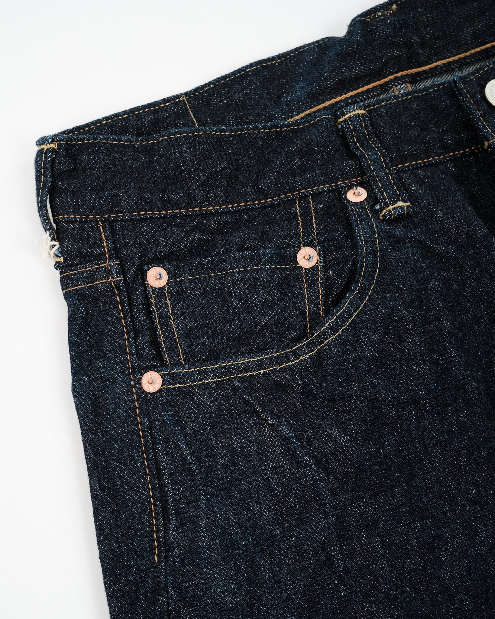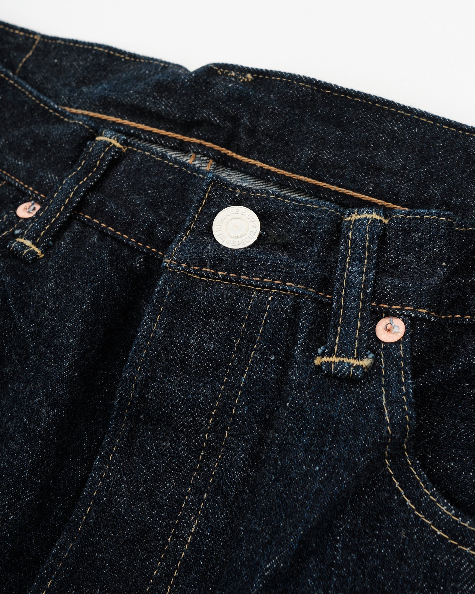 Estetica Autentica: La linea di orlo giallo è un timbro dell'autenticità di Warehouse, mentre il colore indaco profondo promette sbiaditure sorprendenti nel tempo.