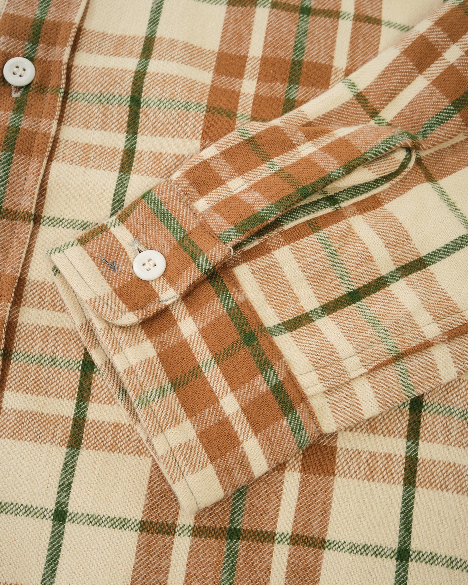 Il Modern Flannel è l'interpretazione stagionale della camicia a quadri di Warehouse & Co. Questa stagione arriva in quattro nuovi modelli. Realizzato in un quadro beige saturato di notevole profondità, il tessuto è progettato per invecchiare con grazia e sviluppare carattere attraverso l'uso e il lavaggio. Fedele alla reputazione di Warehouse, il tatto è eccezionale: un flanella morbida ma robusta che combina comfort e durabilità. Con la sua vestibilità equilibrata e dettagli tradizionali, questo capo mescola utilità quotidiana con fascino vintage. È il tipo di camicia che migliora ad ogni stagione.