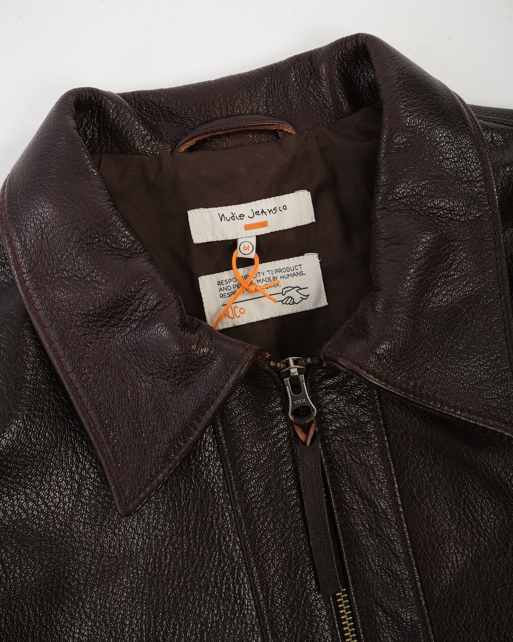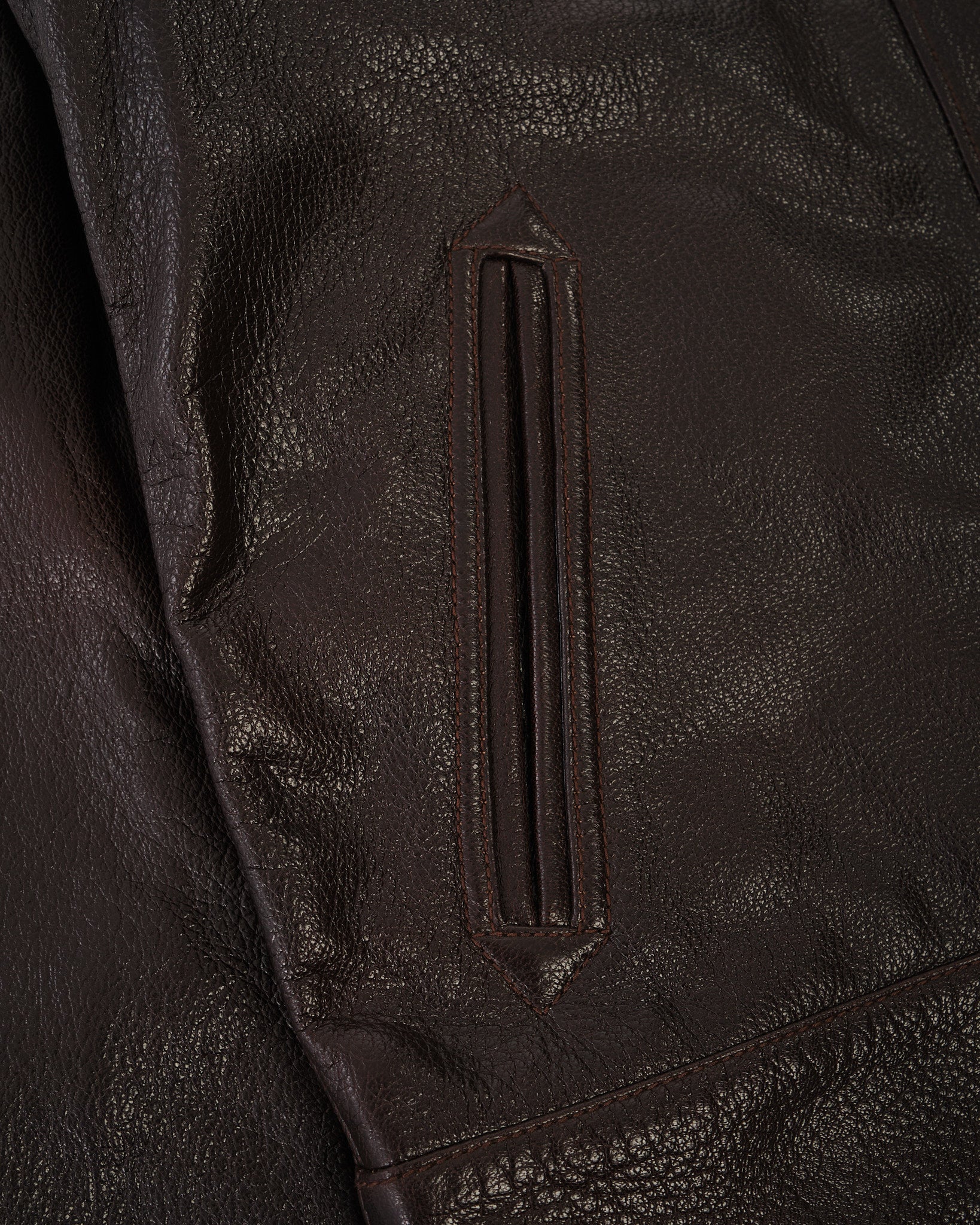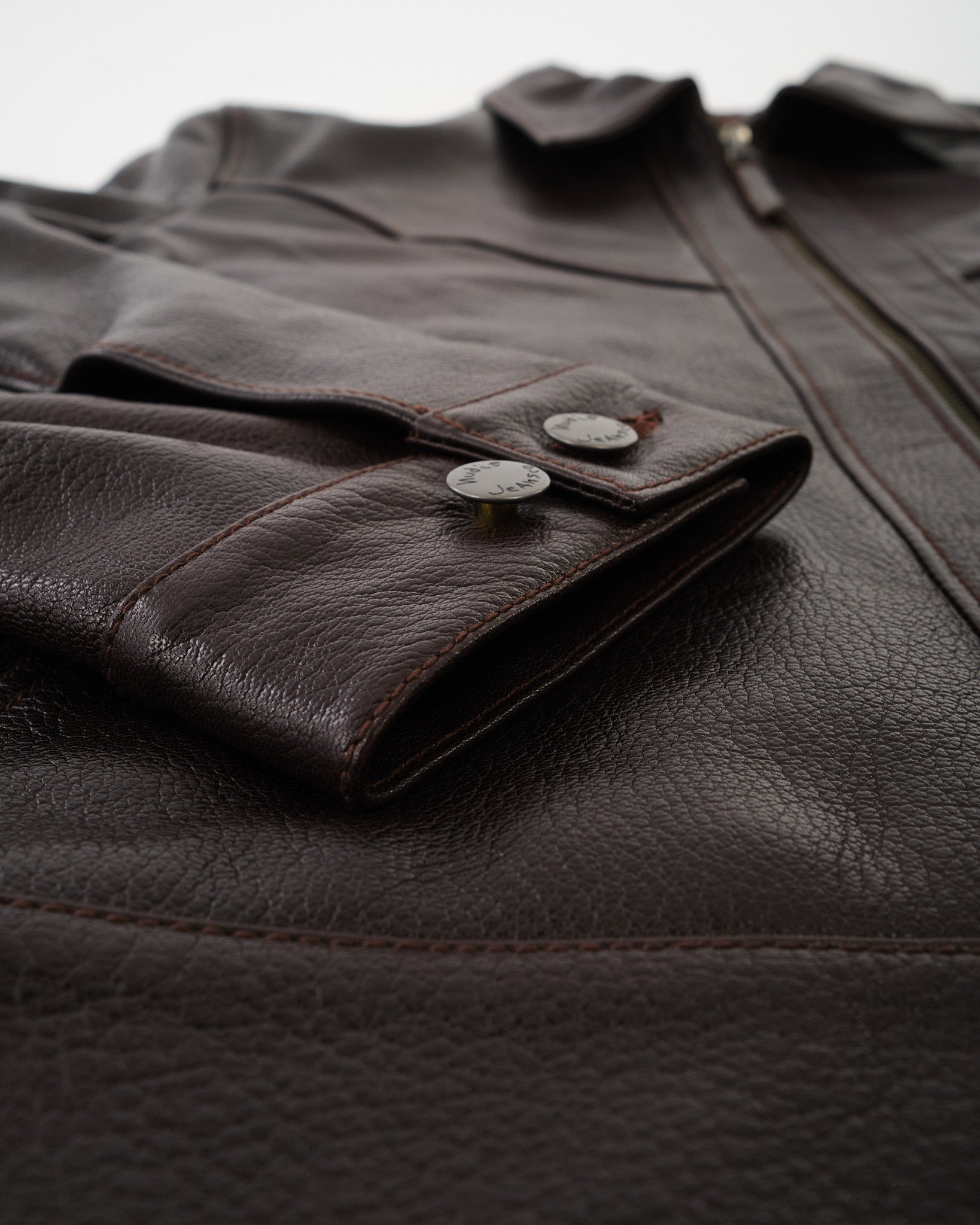 Il NUDIE JEANS CO. JOPPE WESTERN LEATHER JACKET BROWN è una giacca di pelle dritta e senza tempo, realizzata in pelle di capra semi-conciata vegetale morbida come il burro. La tonalità marrone cioccolato profondo è arricchita da un fine lustro, che esalta il ricco carattere della pelle.