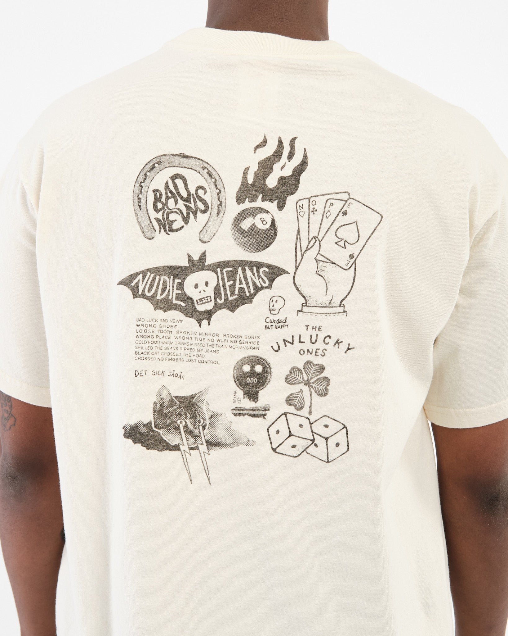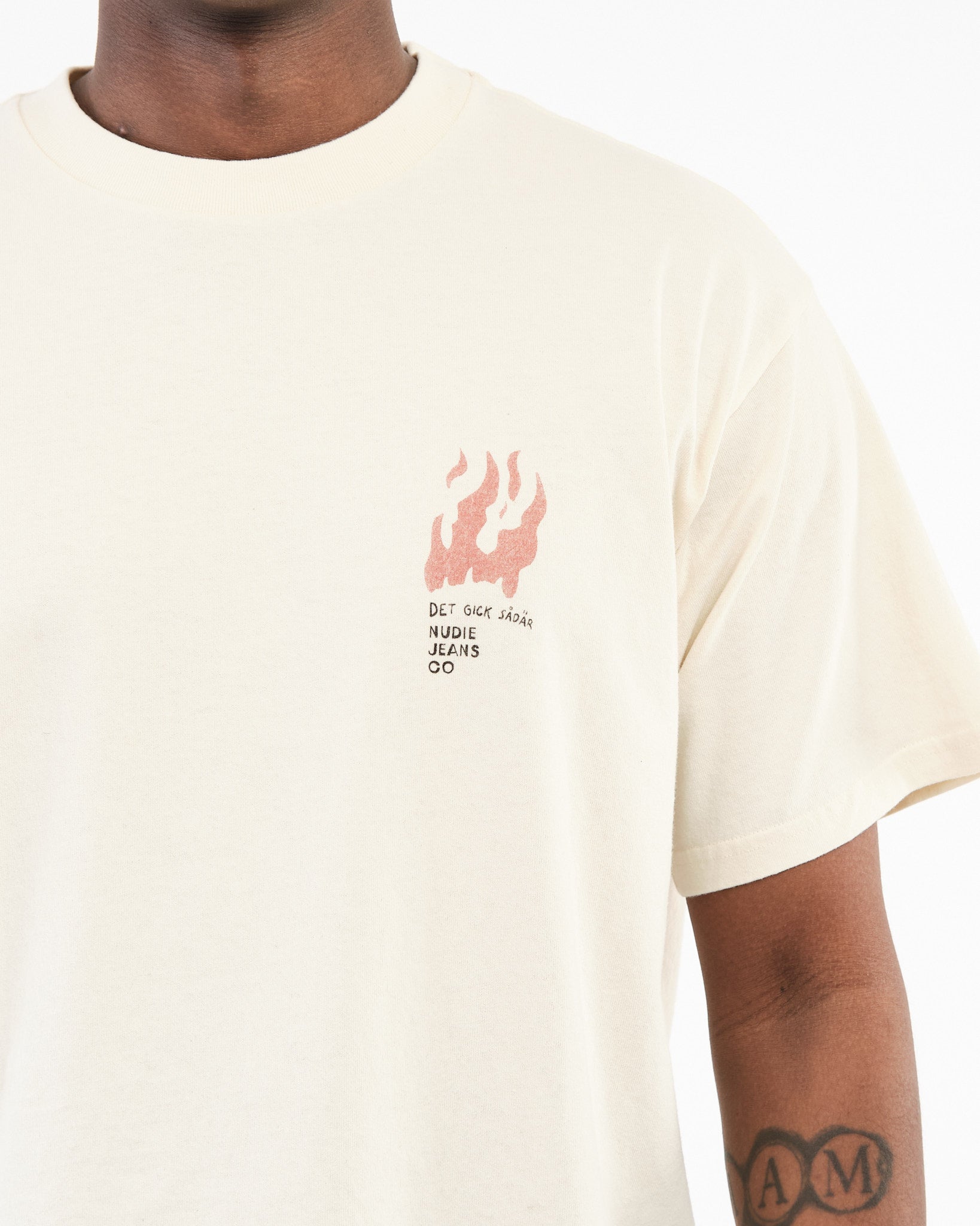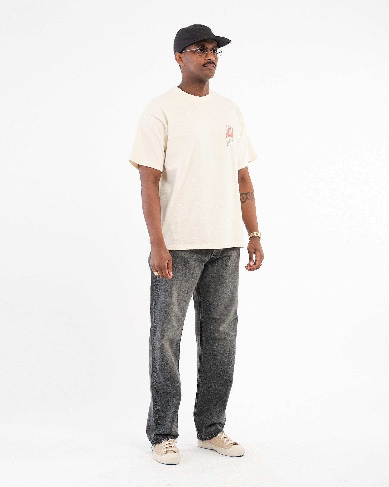 La maglietta Koffe Fails porta una personalità sottile all'abbigliamento di tutti i giorni. Realizzata in cotone biologico con filato a capo libero, il tessuto ha una maglia irregolare e una texture morbida con solo un tocco di peluria — piena di carattere vintage. Una vestibilità rilassata rende tutto più semplice, mentre le stampe sul petto e sulla schiena aggiungono un atteggiamento discreto. La naturale tonalità ecru evidenzia il fascino grezzo del tessuto e si abbina splendidamente con il denim vissuto. Una maglietta di riferimento che migliora ogni volta che la indossi.
