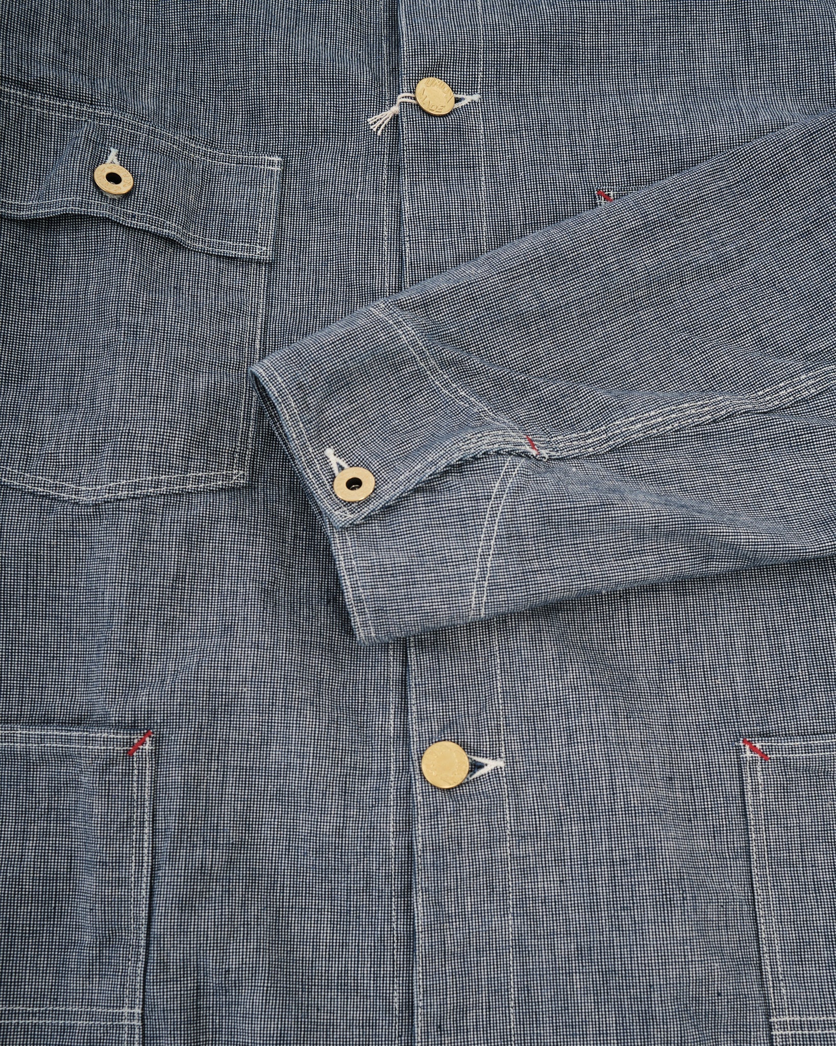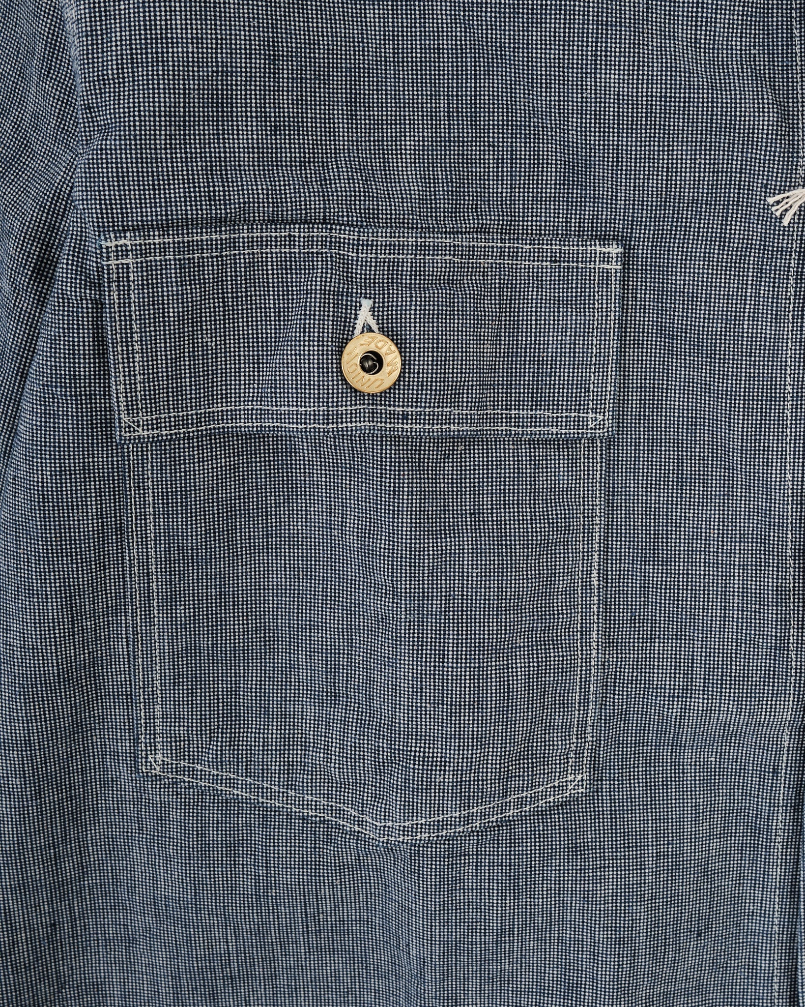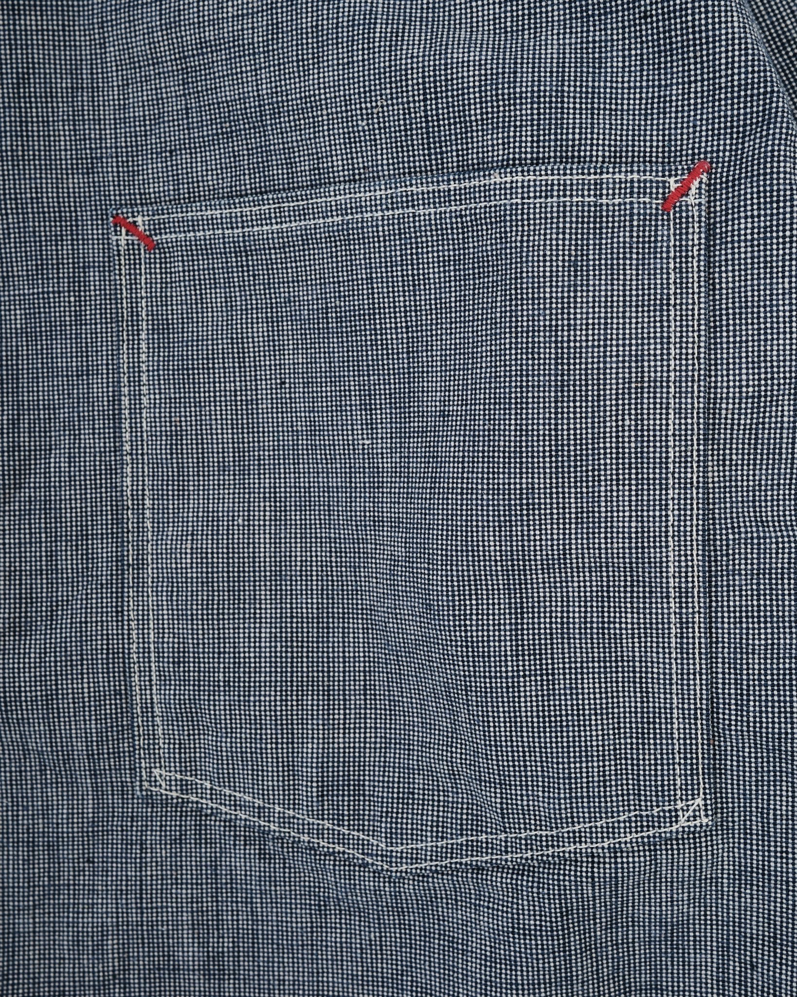 La tuta Lot 2195 Indigo Pincheck di Warehouse è una riproduzione meticolosa di indumenti da lavoro pre-bellici realizzati per lavori leggeri. Tessuta da indaco pincheck selvedge 10×10 — un raro motivo che mescola fili di indaco e bianco sporco — questo tessuto era storicamente preferito per uniformi estive utilizzate in ambienti più puliti come negozi e magazzini. Fedele all'epoca, questa tuta presenta bottoni vintage da cambio, filo rosso Bardock nei punti di maggiore stress, e dettagli classici sui bottoni di petto e polsini. Costruita con la firma dedizione di Warehouse alla texture del tessuto e all'autenticità, questo pezzo offre una costruzione senza tempo con un sottile tocco da lavoro.
