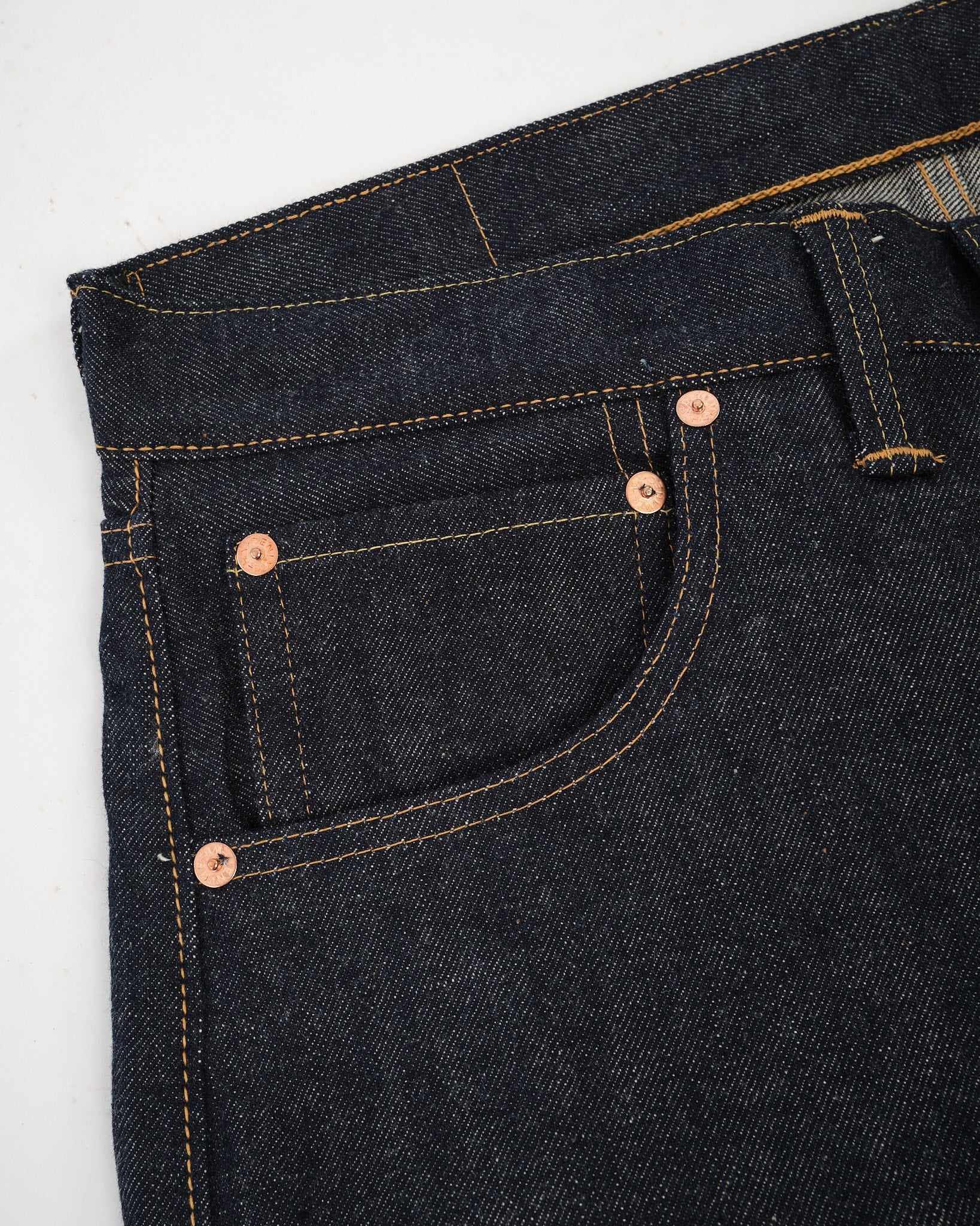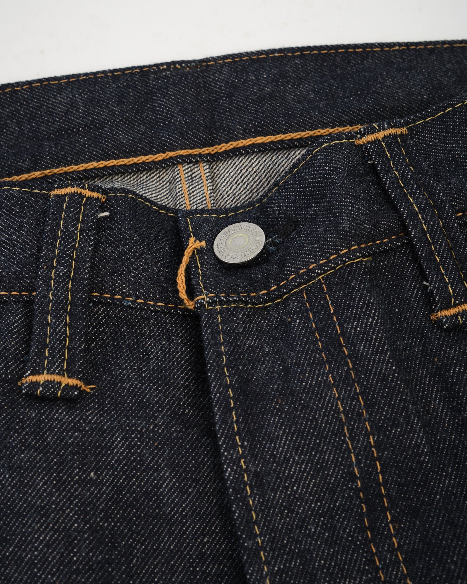 100% Cotone Selvedge Denim: Realizzato con tessuto di alta qualità dei Kurabo Denim Mills, e viene persino fornito con una selvedge bianco-dorato marrone.