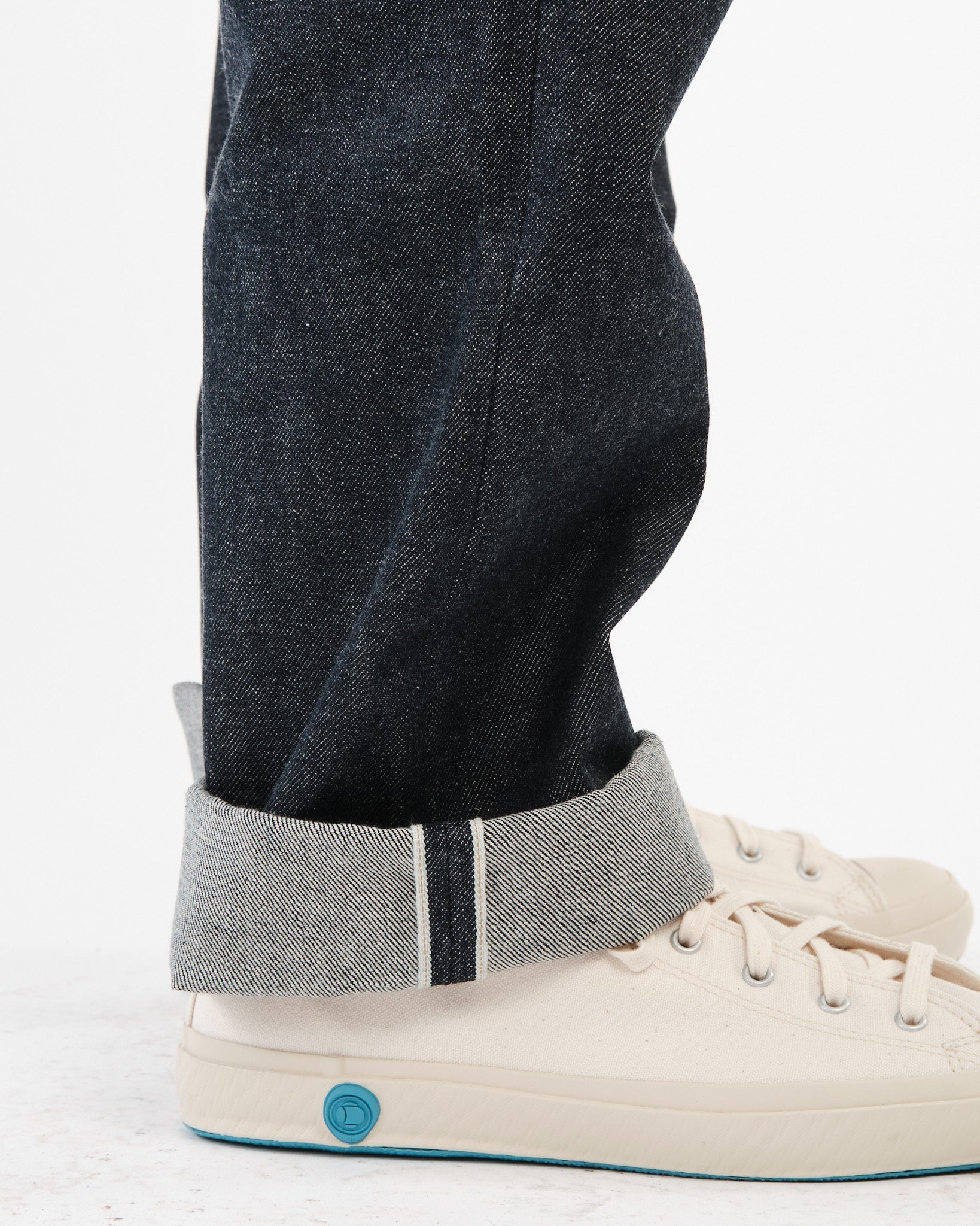 Denim di cotone grezzo di media pesantezza al 100% per un'atmosfera vintage.