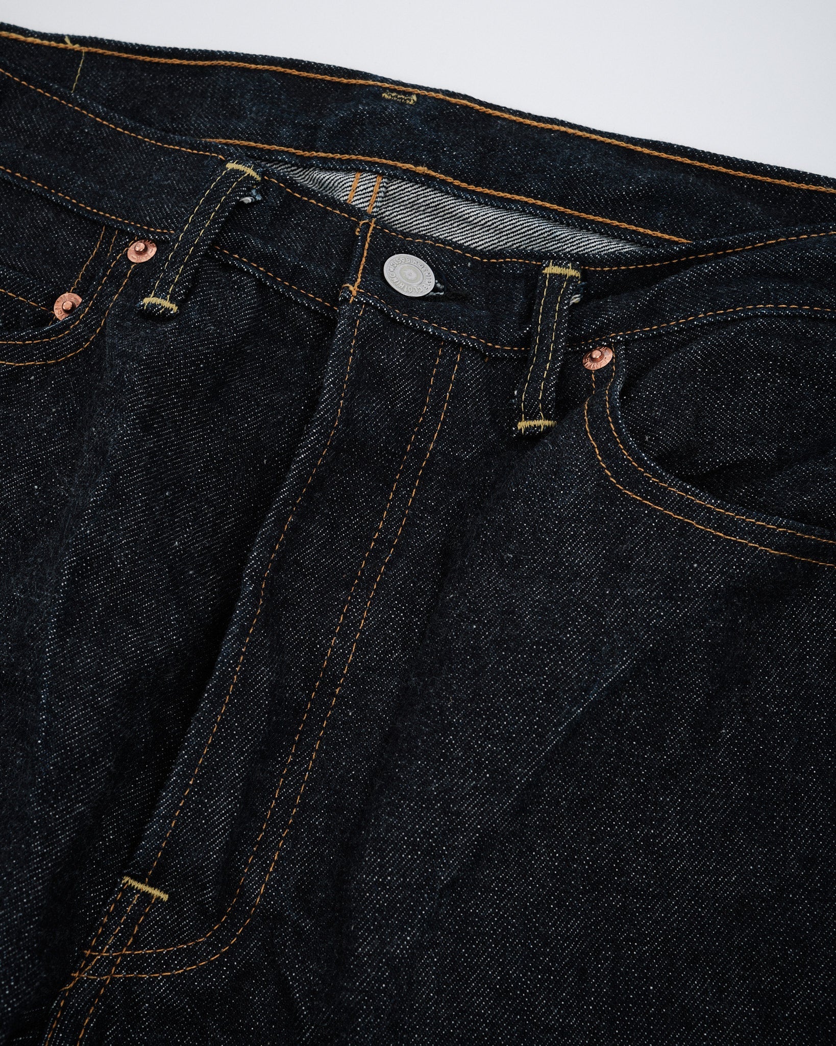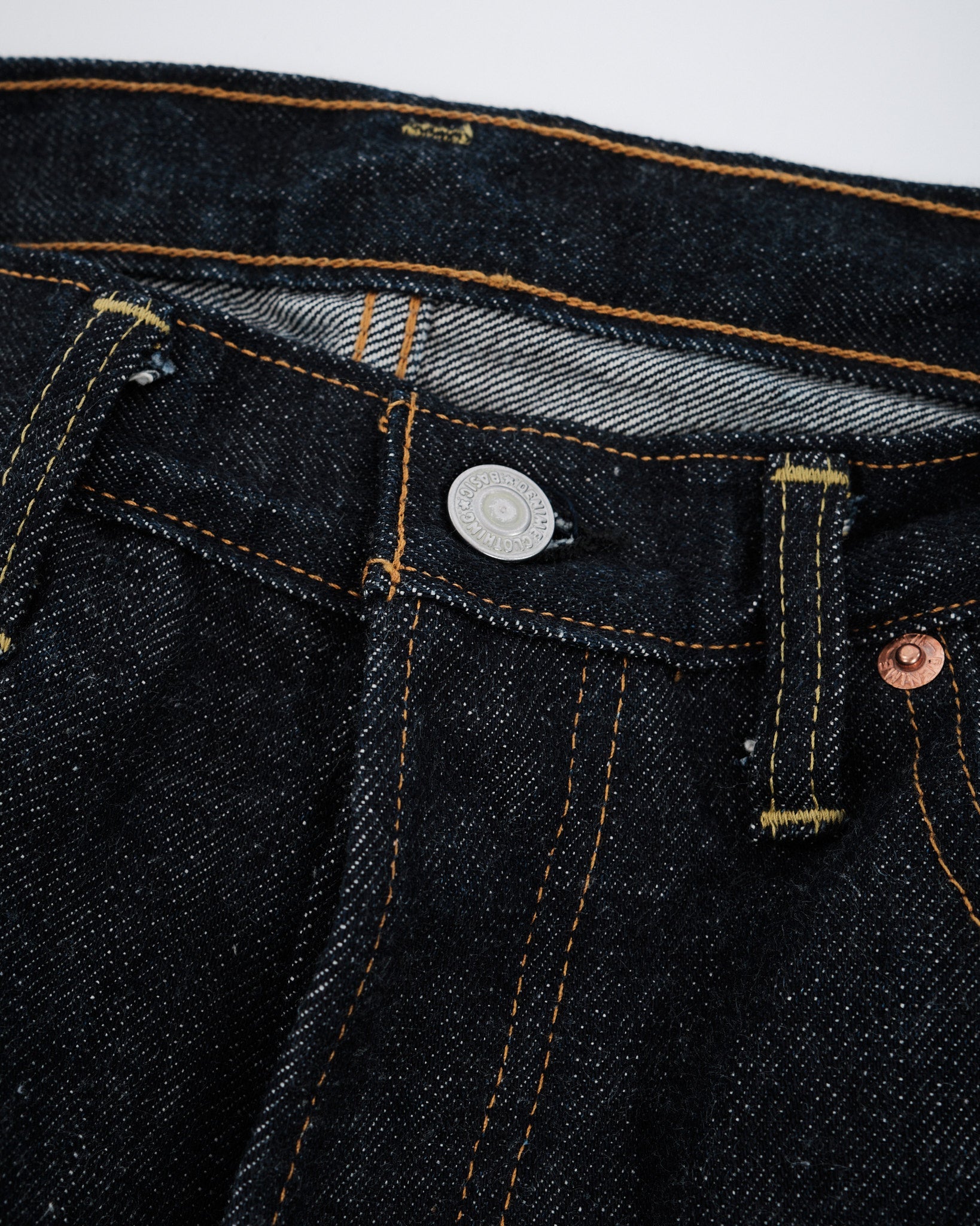 I jeans Denime by Warehouse Co 224-66 Model sono un sogno per coloro che adorano il denim vintage. Ispirandosi ai Levis 501 del 1966, questi jeans vantano un taglio dritto affusolato e delle impunture tradizionali. Creati in collaborazione con la Kurabo Industries, il denim subisce un processo di tintura a corda per ottenere una tonalità di indaco profonda. L'esterno scuro del tessuto contrasta elegantemente con il suo nucleo bianco, garantendo una sbiaditura distintiva nel tempo. Caratterizzati da una vita alta e un taglio dritto, questi jeans onorano la classica silhouette del 1966, optando per impunture, invece di rivetti, per mantenere un aspetto autentico. Ogni aspetto del Denime 66 Model è abilmente progettato da Warehouse per offrire una sensazione vintage.