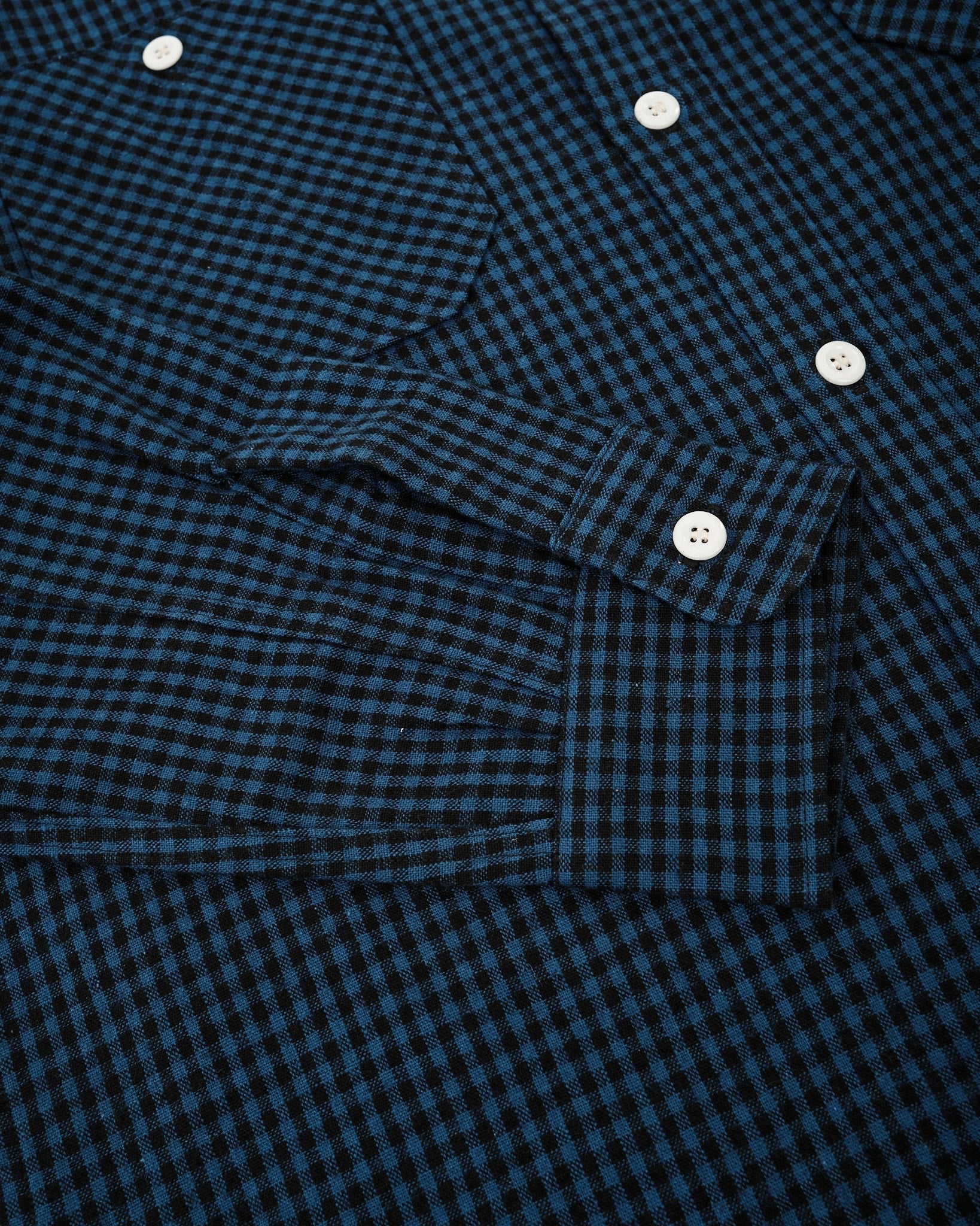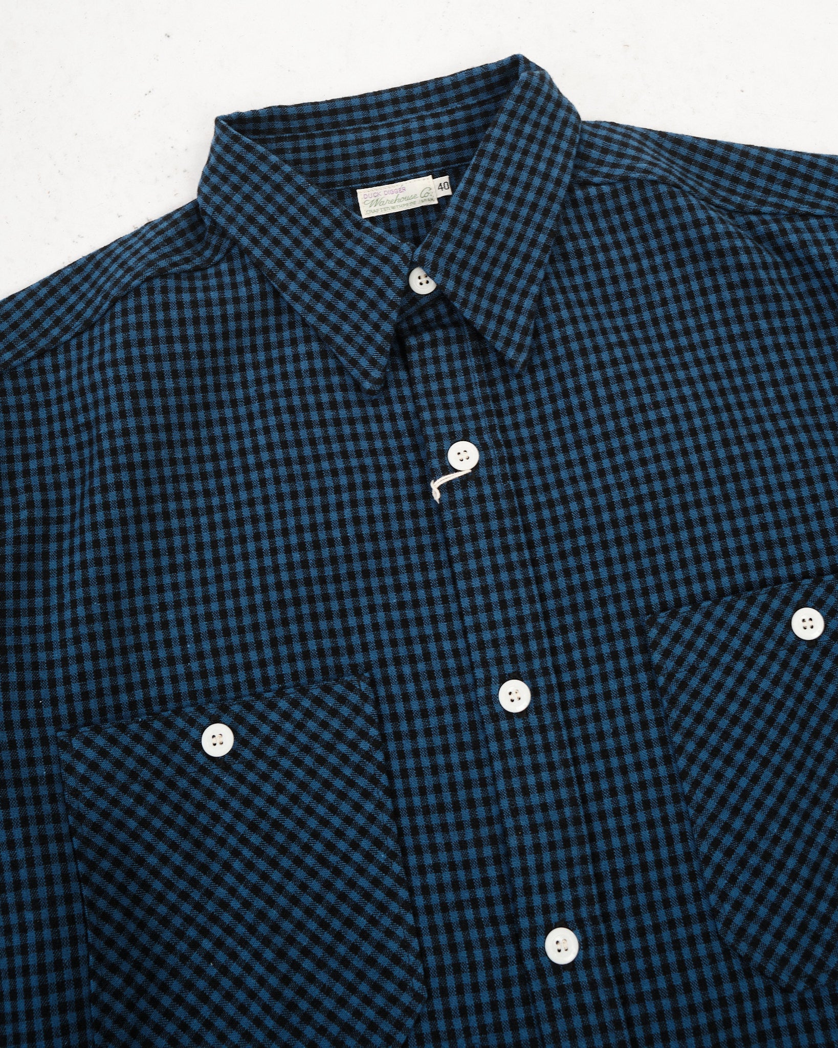 La camicia da lavoro a maniche lunghe Lot 3055 di WAREHOUSE in Gingham Blu è un'armoniosa fusione di estetica tradizionale da lavoro e comfort moderno. Realizzata con un tessuto a quadri selvedge unico 50% cotone, 50% lino, questa camicia offre la morbidezza del cotone combinata con la traspirabilità e la texture del lino. Il classico motivo gingham in blu e bianco aggiunge un fascino senza tempo, rendendola adatta sia per contesti casual che semi-formali. Gli elementi di design includono una vestibilità regolare, chiusura frontale con bottoni e doppie tasche sul petto con chiusure a bottone, offrendo sia funzionalità che stile. L'uso del tessuto selvedge garantisce durabilità e una finitura pulita, mentre la costruzione meticolosa riflette l'impegno di WAREHOUSE nella qualità artigianale.