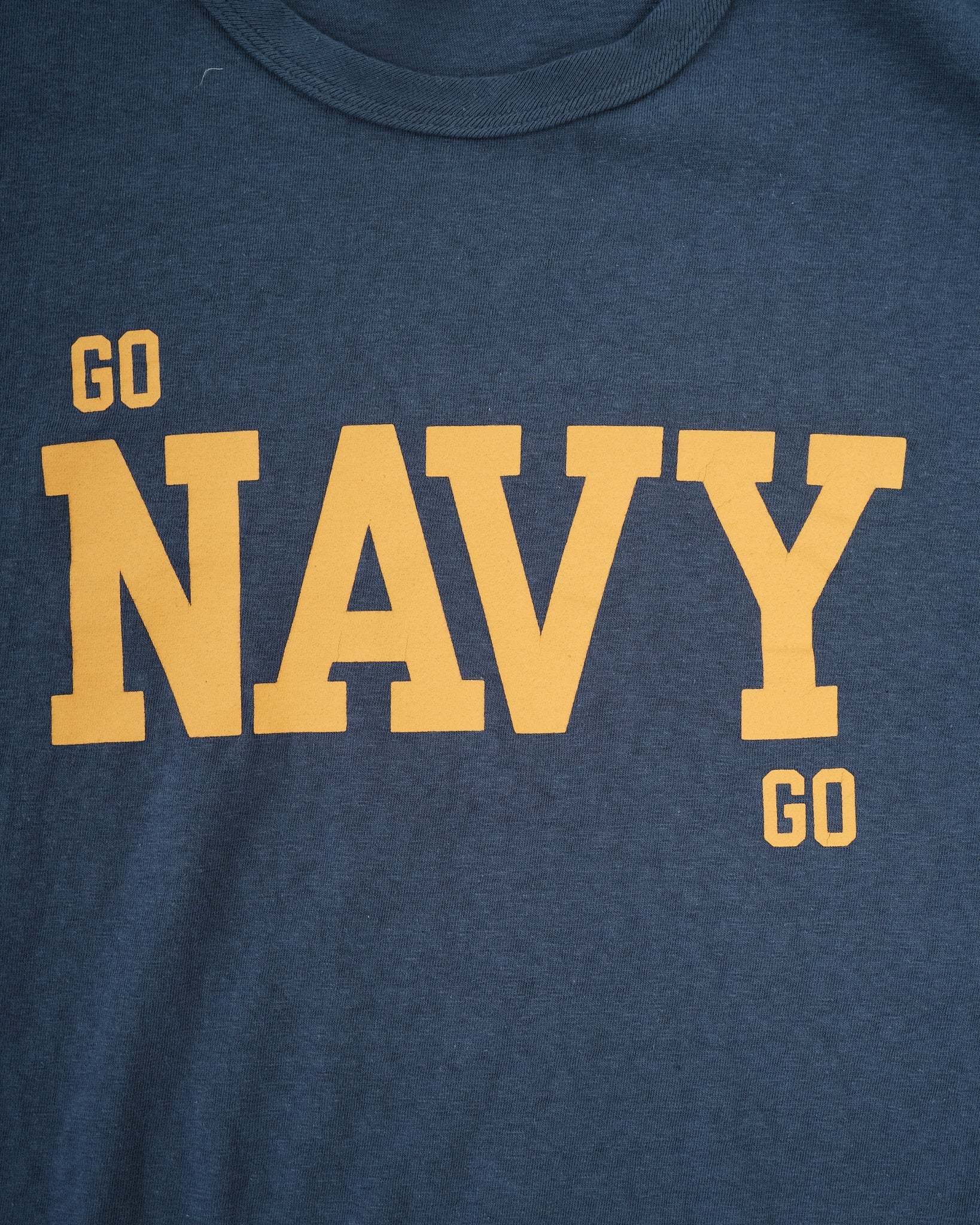 • Presenta una stampa audace "GO NAVY" per un look collegiale classico