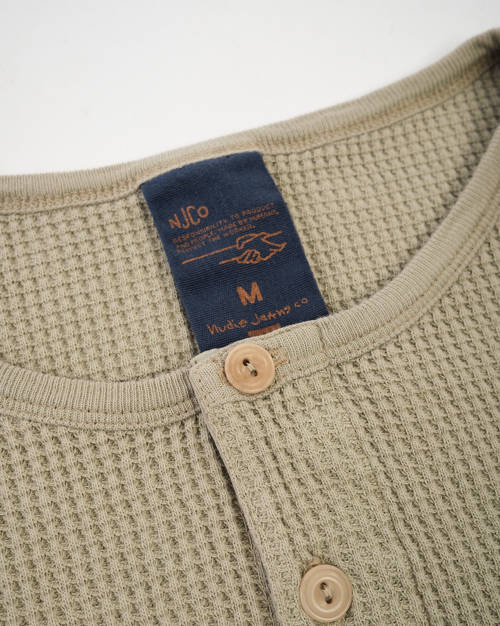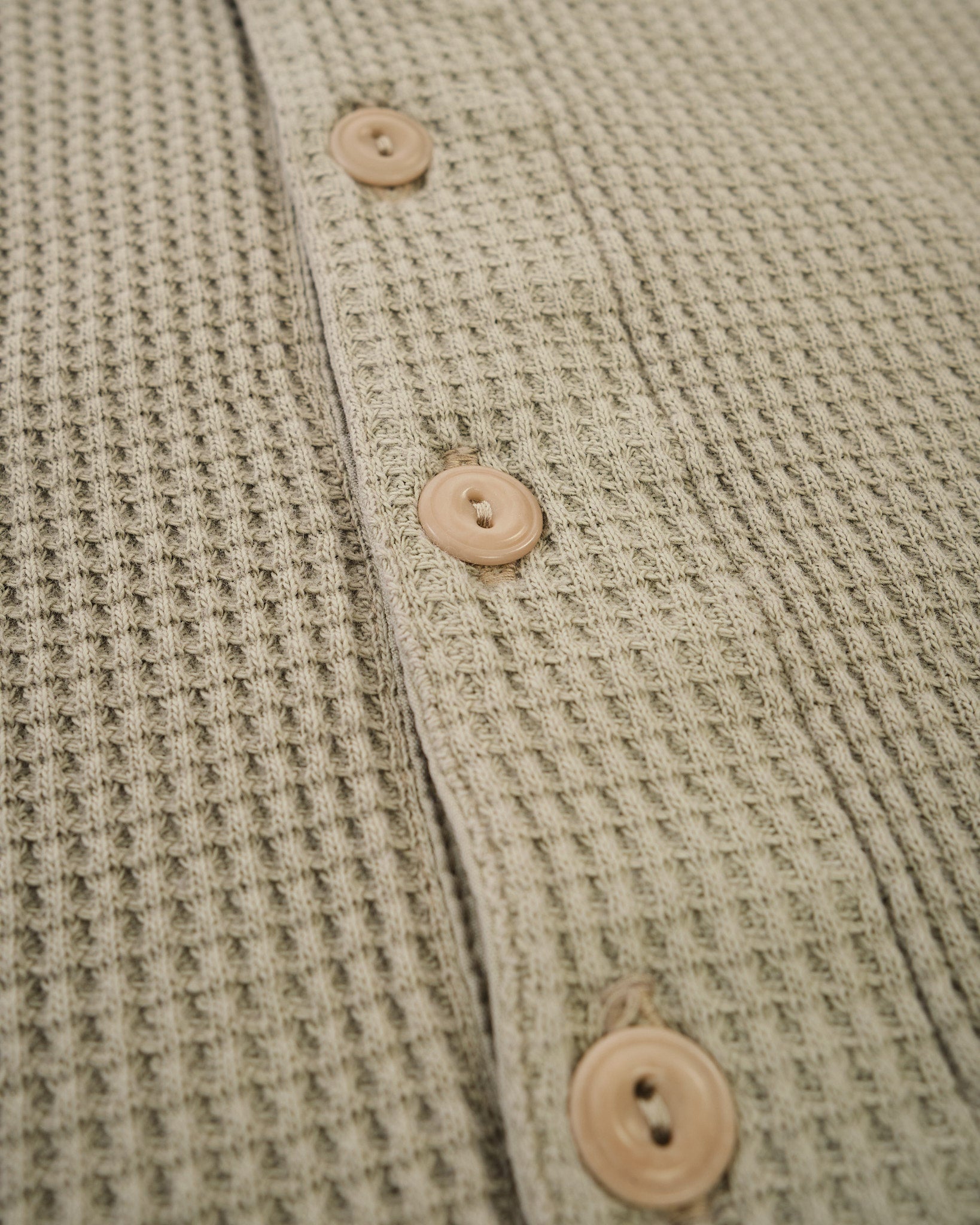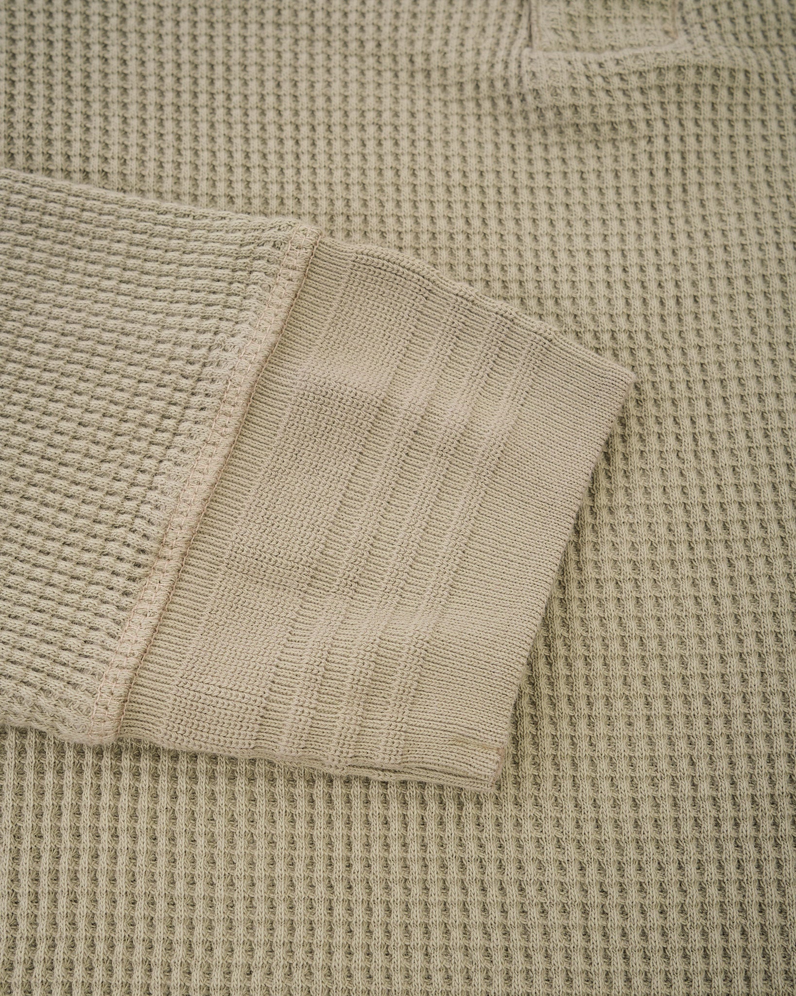 La maglietta Henley LS Waffle in colore Deserto è il tipo di capo base che fa più che semplicemente stratificarsi bene - aggiunge texture, struttura e comfort quotidiano. Realizzata in morbido cotone biologico con una classica maglia waffle, presenta una patta con quattro bottoni per quell'aspetto Henley senza tempo. I polsini e il colletto sono rifiniti con costine 1x1 per mantenere la forma definita. Con la sua vestibilità regolare e sensazione di comfort, questa maglietta a maniche lunghe funziona altrettanto bene sotto una camicia di flanella quanto indossata da sola.