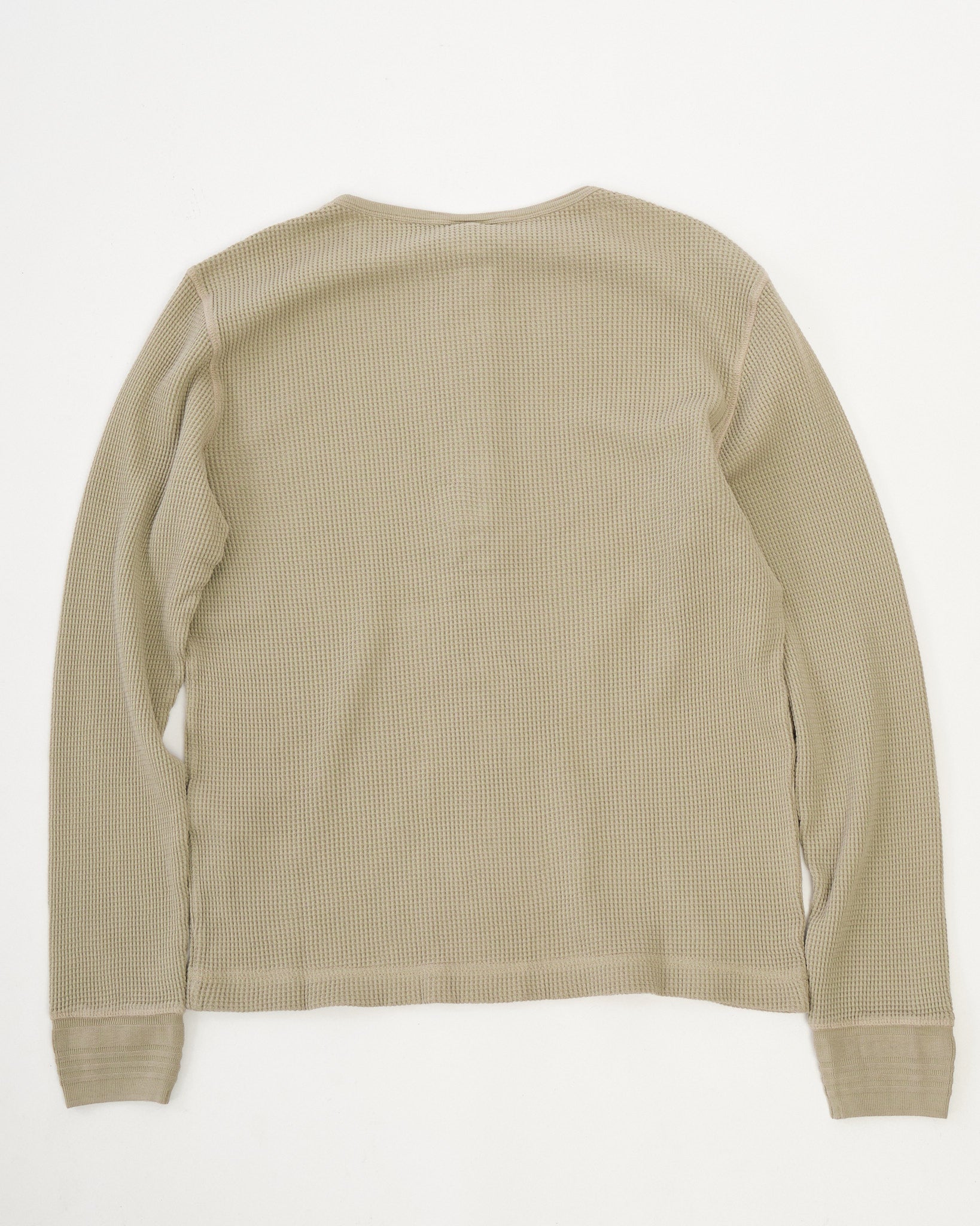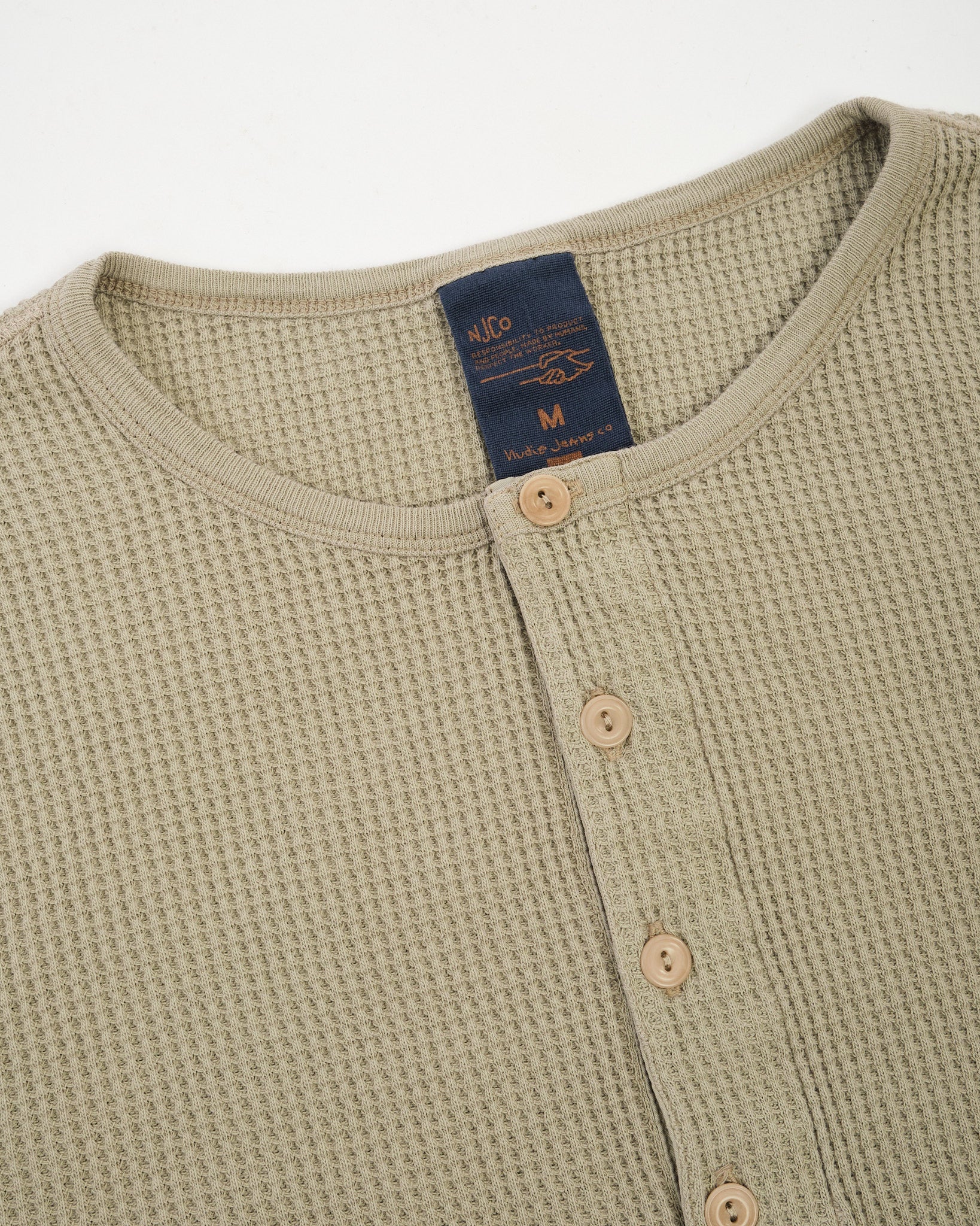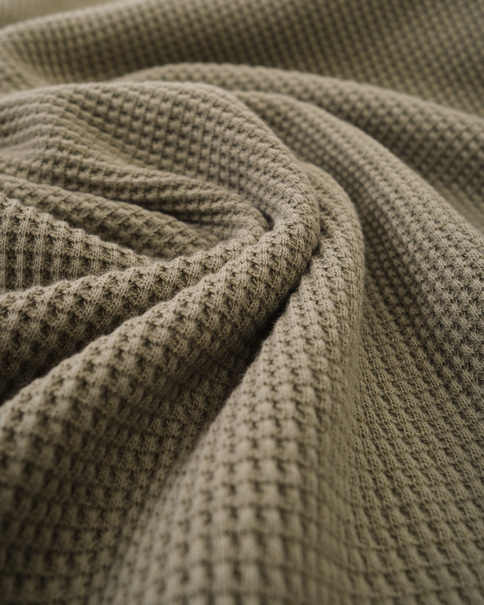 La maglietta Henley LS Waffle in colore Deserto è il tipo di capo base che fa più che semplicemente stratificarsi bene - aggiunge texture, struttura e comfort quotidiano. Realizzata in morbido cotone biologico con una classica maglia waffle, presenta una patta con quattro bottoni per quell'aspetto Henley senza tempo. I polsini e il colletto sono rifiniti con costine 1x1 per mantenere la forma definita. Con la sua vestibilità regolare e sensazione di comfort, questa maglietta a maniche lunghe funziona altrettanto bene sotto una camicia di flanella quanto indossata da sola.