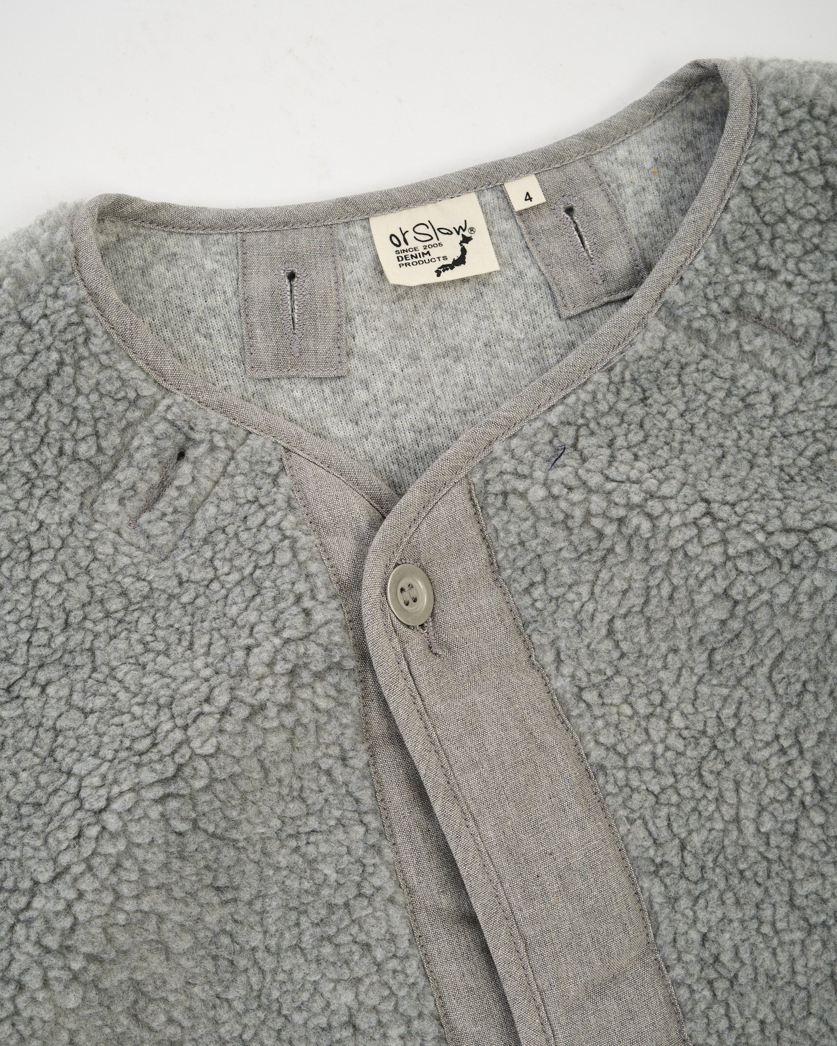 Il classico parka M-65 dell'Esercito degli Stati Uniti ottiene un compagno più morbido in questo rivestimento di orSlow. Realizzato in Giappone con tessuto trapuntato in grigio chiaro, è progettato per essere indossato all'interno del M-65 Fish Tail Coat - ma funziona altrettanto bene da solo come una giacca leggera. La vestibilità rilassata, la semplice chiusura a pressione e i bordi rifiniti mantengono le cose pratiche, mentre il finissaggio trapuntato aggiunge calore senza ingombro. Un pezzo versatile per strati che bilancia utilità e facilità, fedele alla filosofia di orSlow.