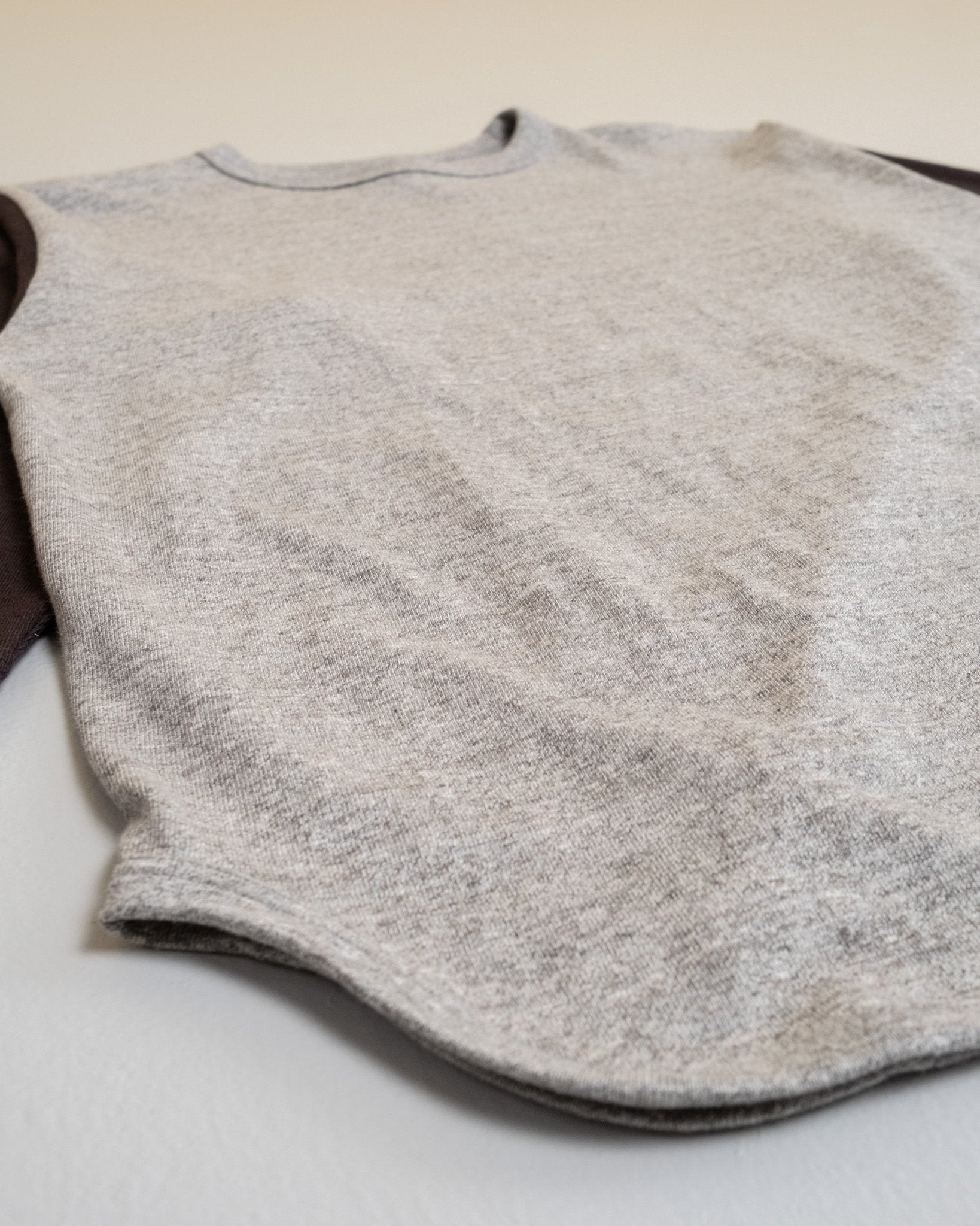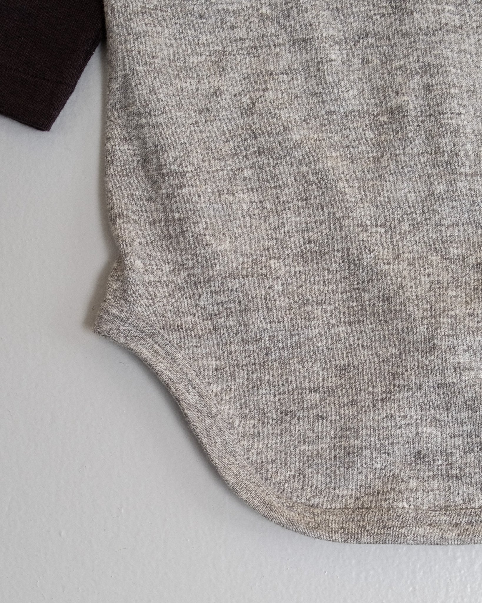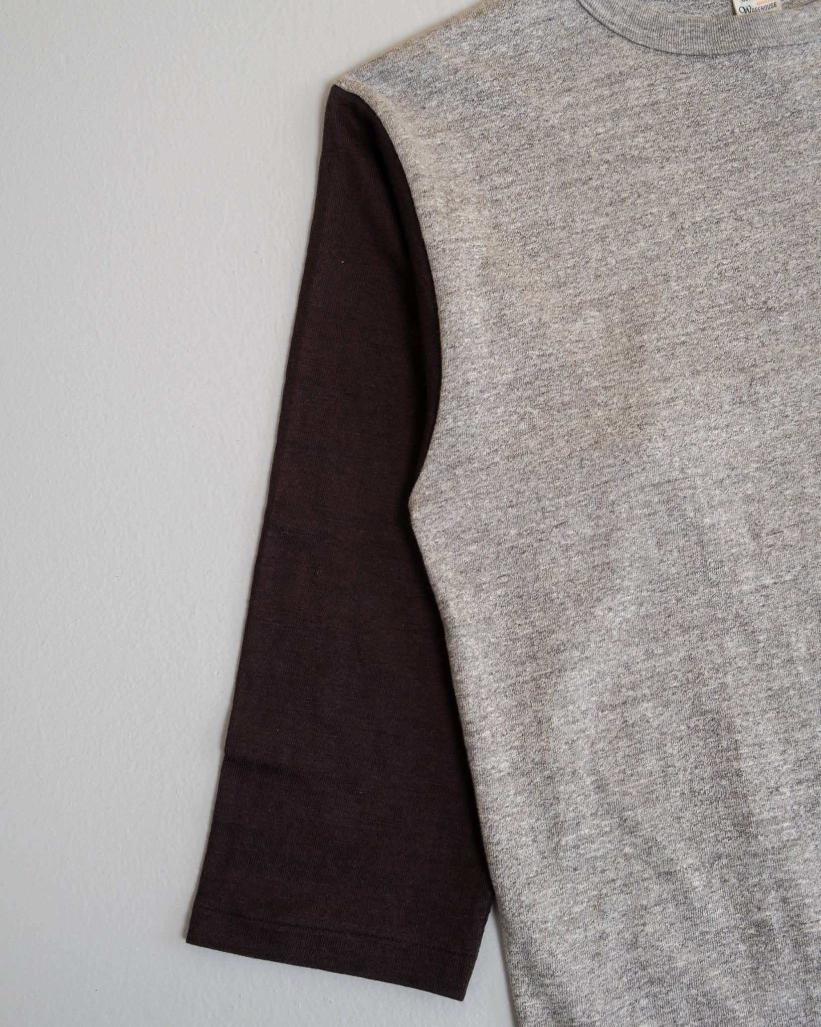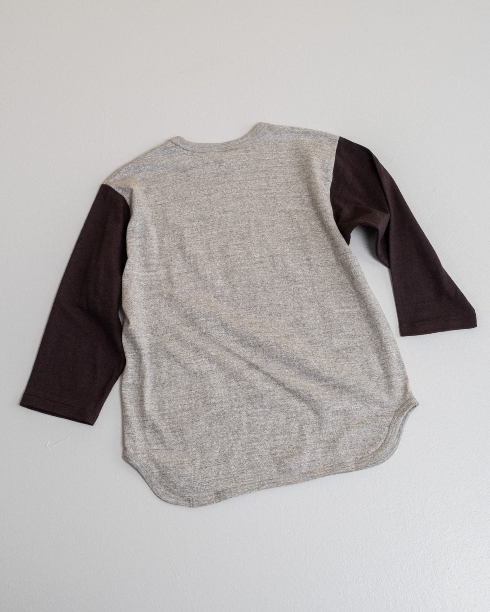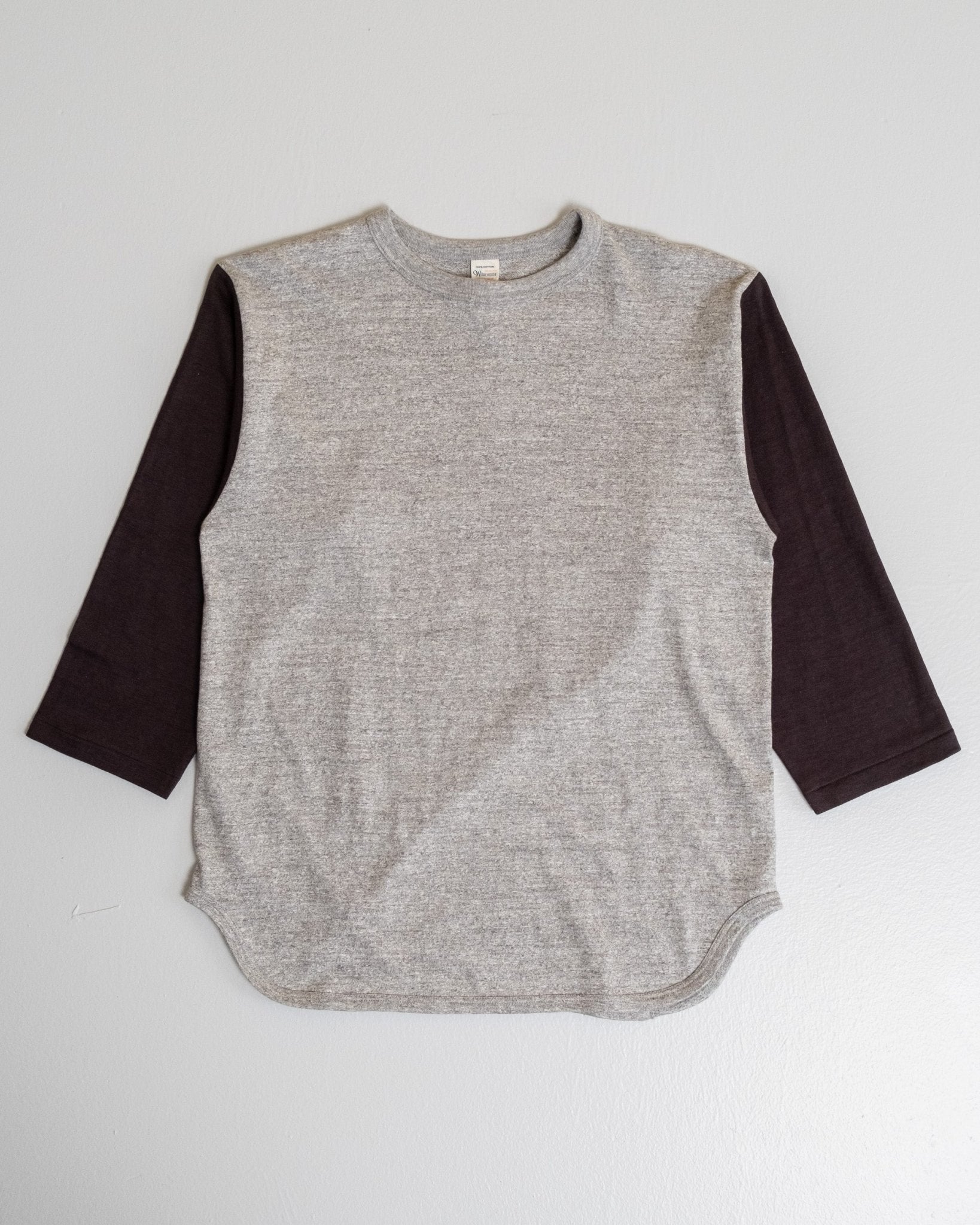 4800 Maglietta da baseball a tre quarti Heather Grey/ Sumikuro di Warehouse & CO. Maglietta di cotone super morbida e confortevole con maniche a 3/4 di lunghezza. Maglia tubolare che significa che non ci sono cuciture laterali per un maggiore comfort. Orlo curvo e maniche tinte in capo che sbiadiranno nel tempo.Prodotto in Giappone.
