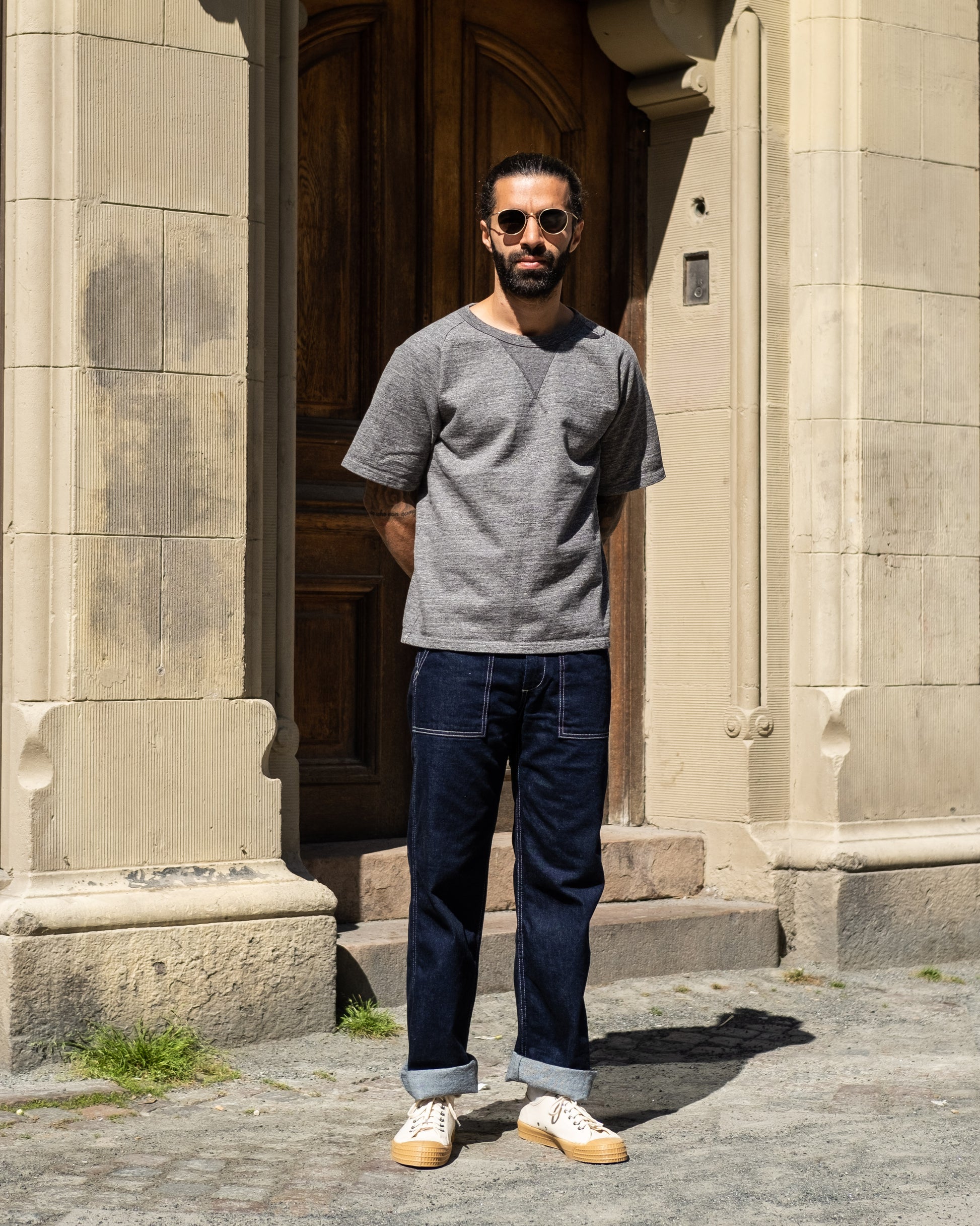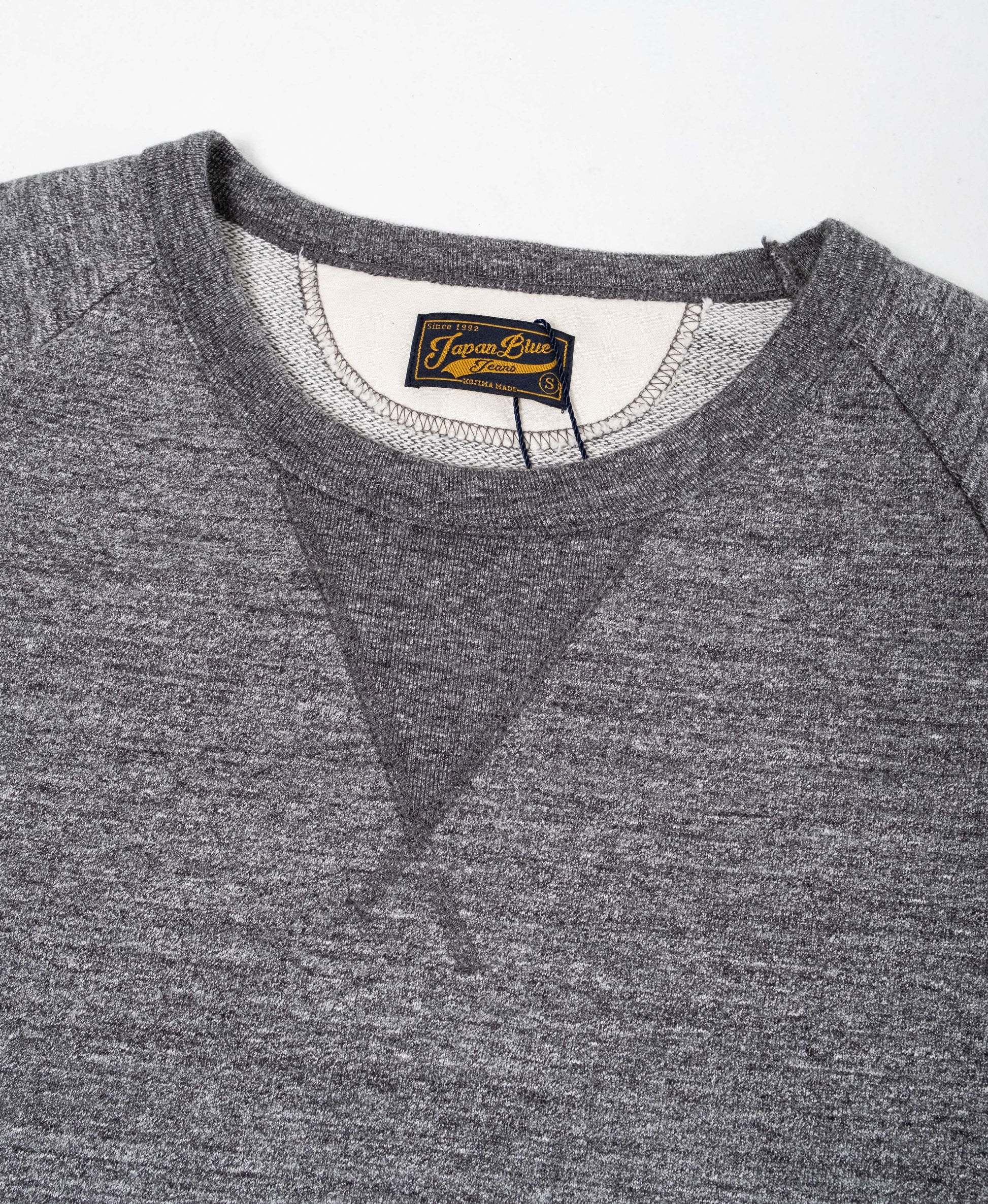 Maglietta sudatoria Raglan da 16.5 Oz in Carbone da Japan Blue Jeans. Creata utilizzando tecniche di maglieria vintage e complesse. Made in Japan.