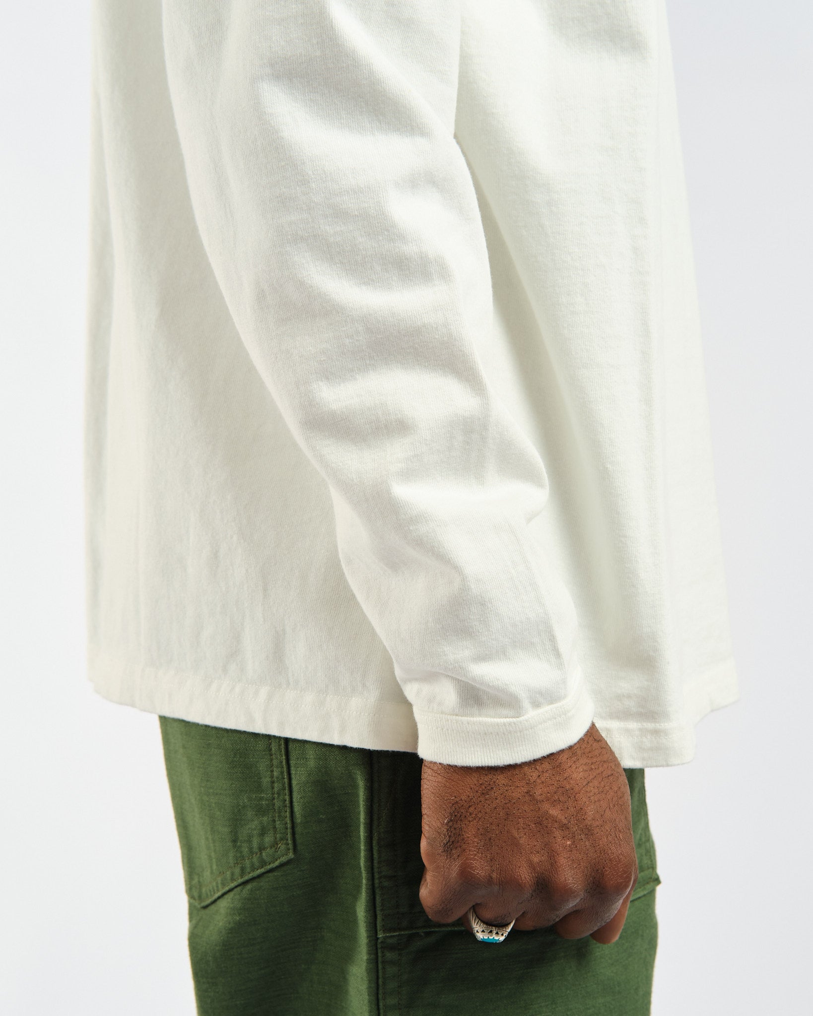 Makaha LS T-Shirt Off White di Sunray Sportswear. Le magliette Sunray hanno una vestibilità tradizionale ispirata alla sensazione degli anni '50. Rilassate, più ampie e leggermente più corte di una vestibilità moderna. Anche il colletto, il design a costine e i tessuti sono tradizionali. Sunray ha la protezione del design sul dettaglio del collo delle magliette Makaha. 300 g. Prodotto in Giappone.