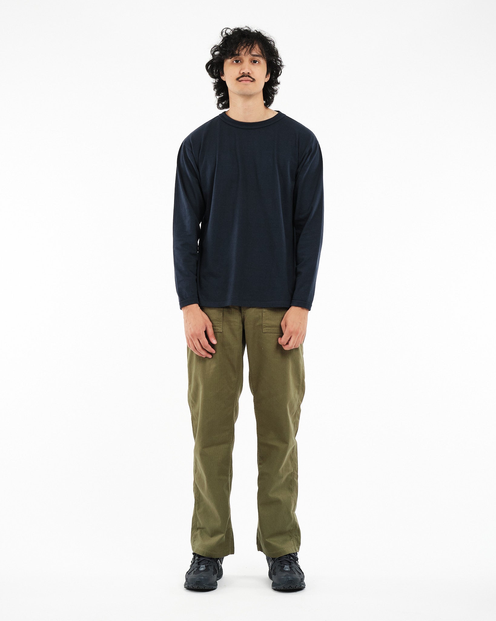Makaha LS T-Shirt Dark Navy di Sunray Sportswear. Le magliette Sunray hanno una vestibilità tradizionale ispirata alla sensazione degli anni '50. Rilassate, più ampie e leggermente più corte di una vestibilità moderna. Anche il colletto, il design a costine e i tessuti sono tradizionali. Sunray ha la protezione del design sul dettaglio del collo delle magliette Makaha. 300 g. Prodotto in Giappone.