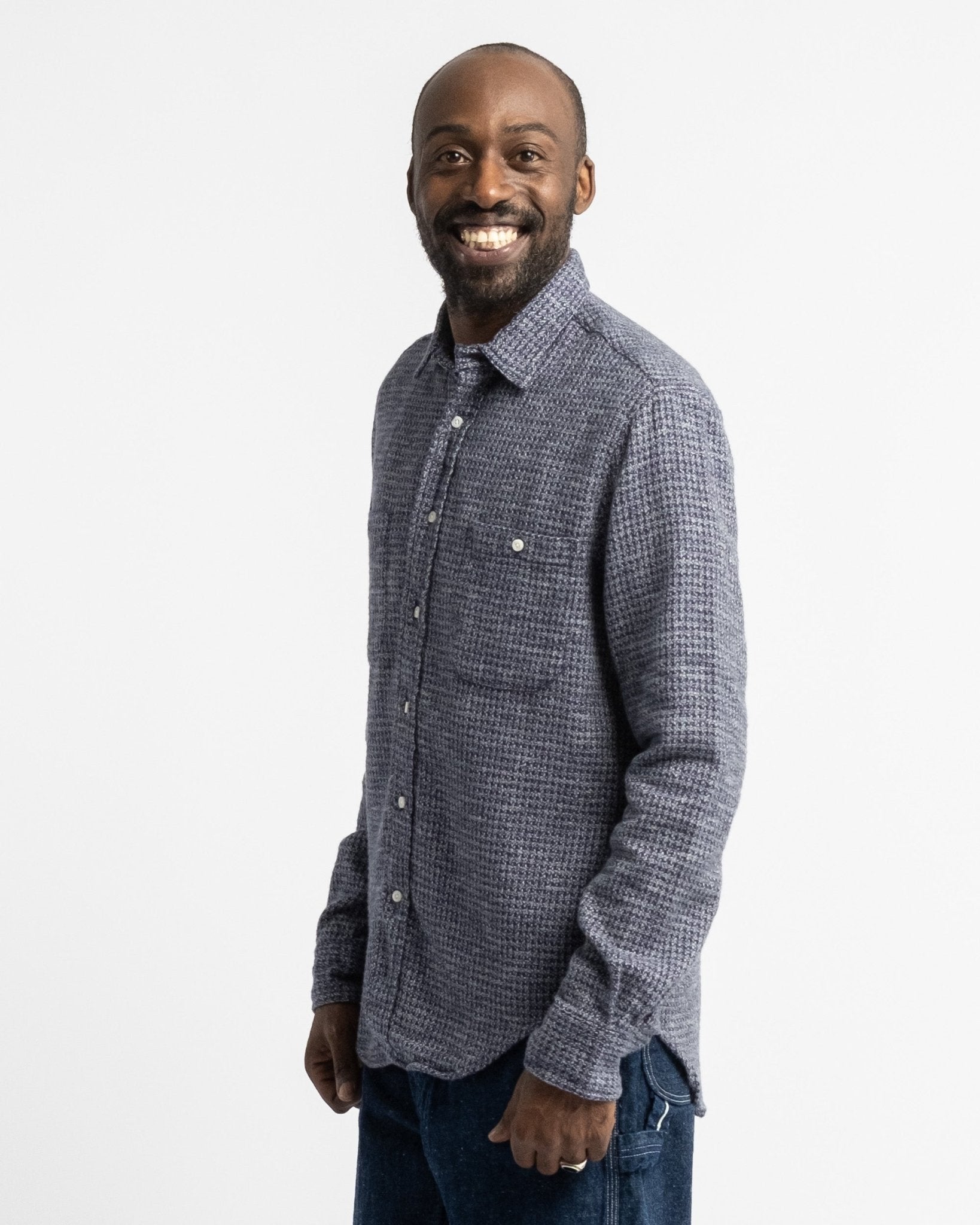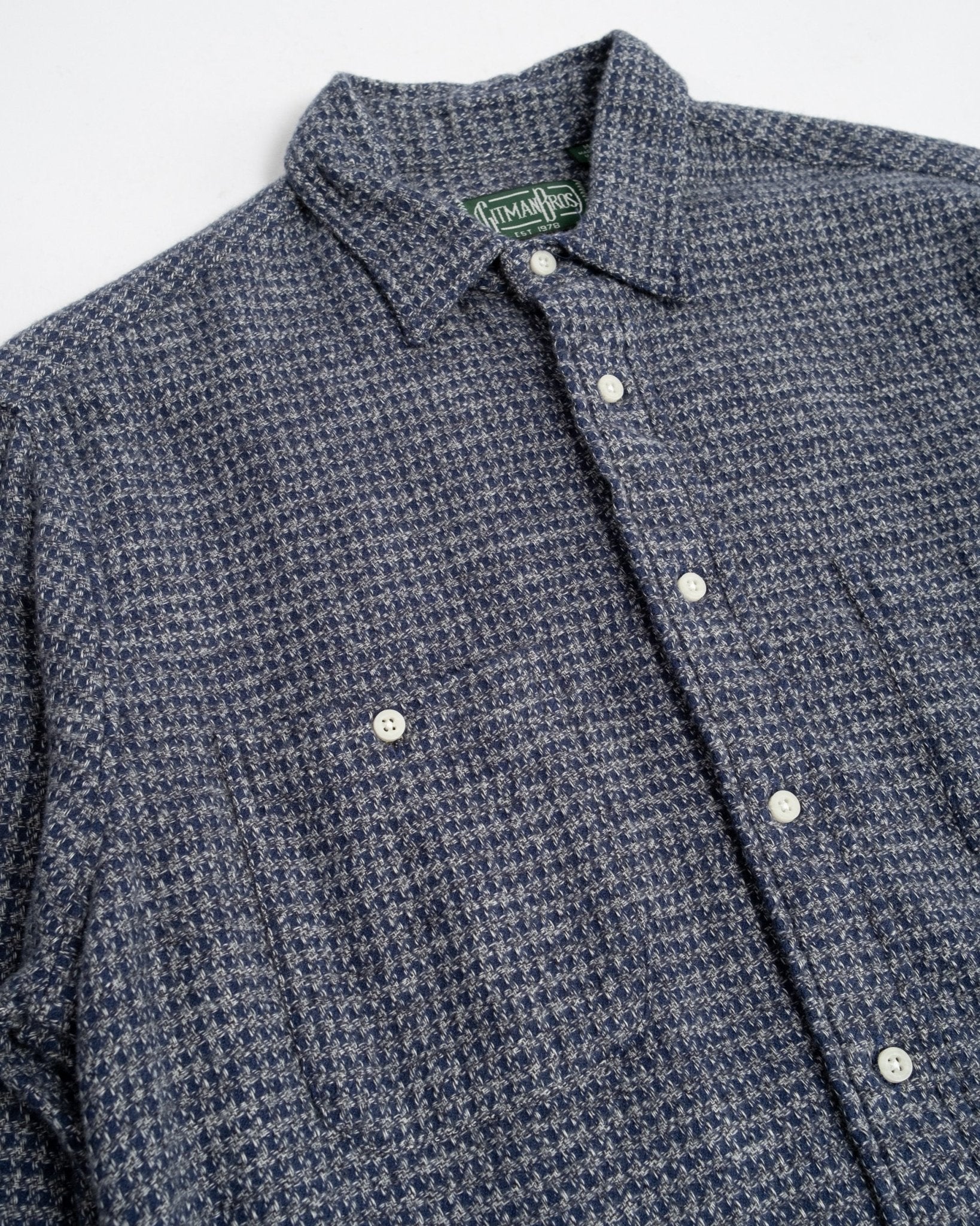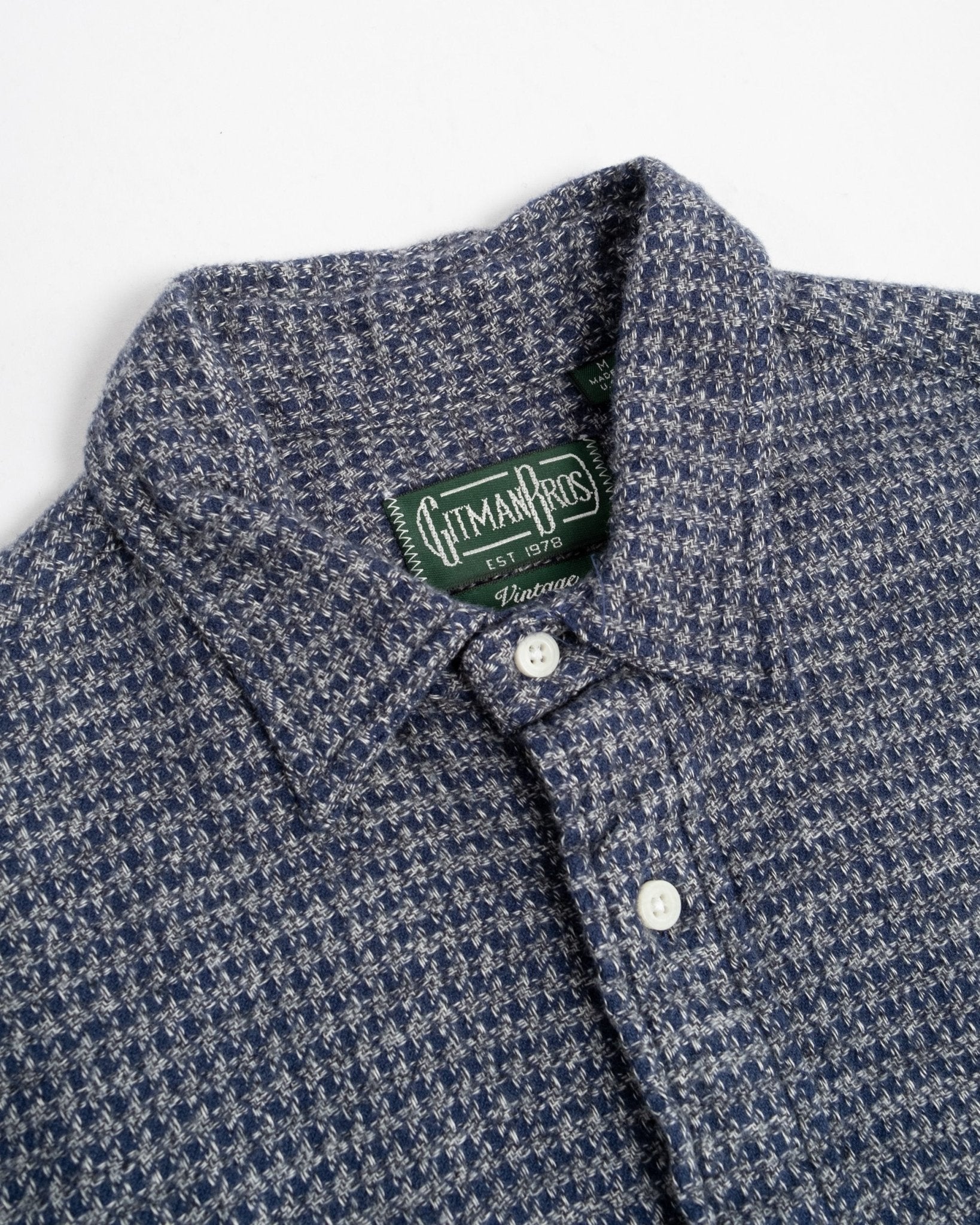 Camicia ultra morbida e mediamente pesante di Gitman Vintage, il Navy Triple Brushed Yarn. Dotata di tasche ispirate all'abbigliamento da lavoro, vestibilità casual rilassata e superficie spazzolata per quella sensazione perfetta durante i mesi più freddi. Realizzata in 100% cotone, prodotta negli USA.